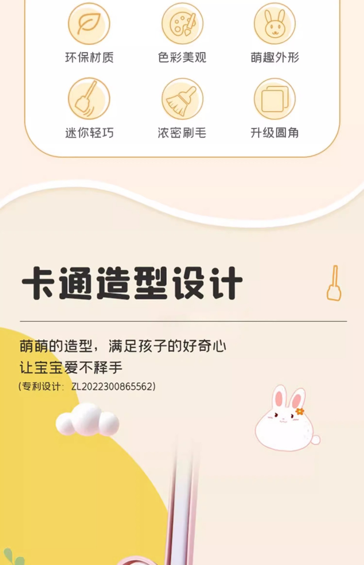 [옐로우 2종세트] 귀여운 토끼 쓰레받기 + 빗자루 (걸이 이빨 포함)