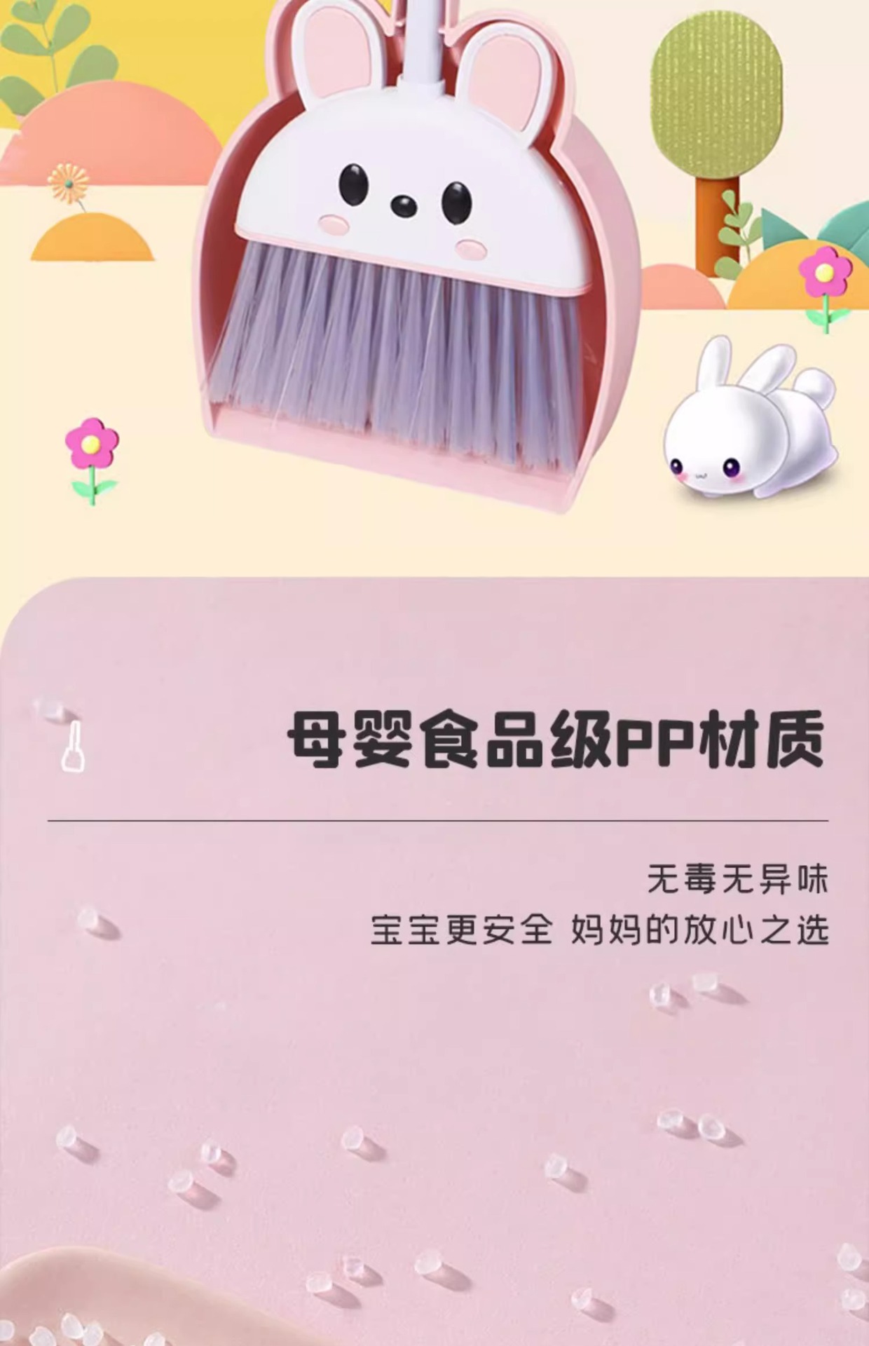 [핑크 2종세트] 귀여운 토끼 쓰레받기 + 빗자루 (걸이 이빨 포함)