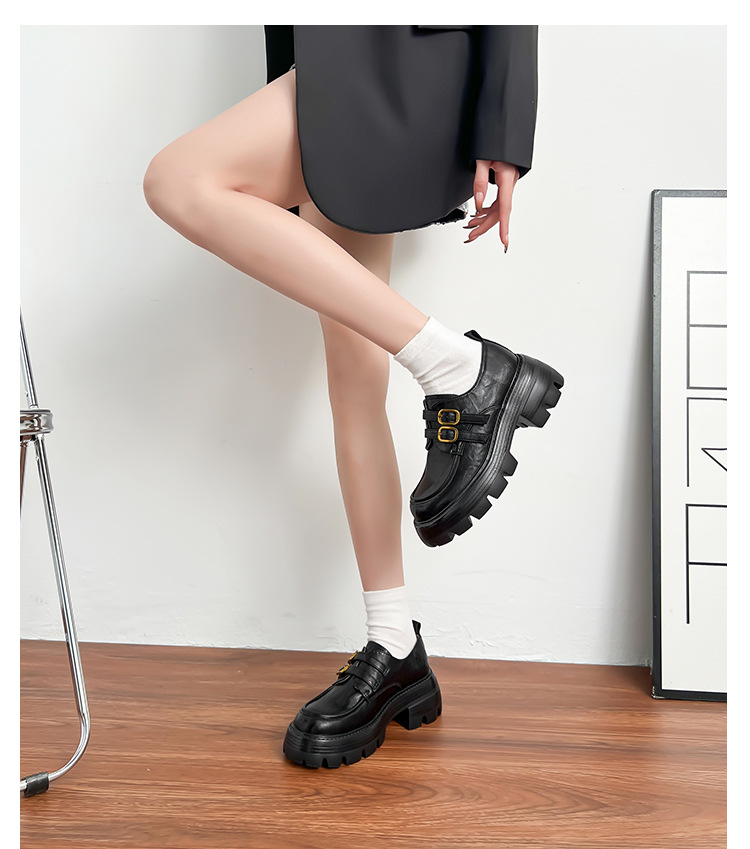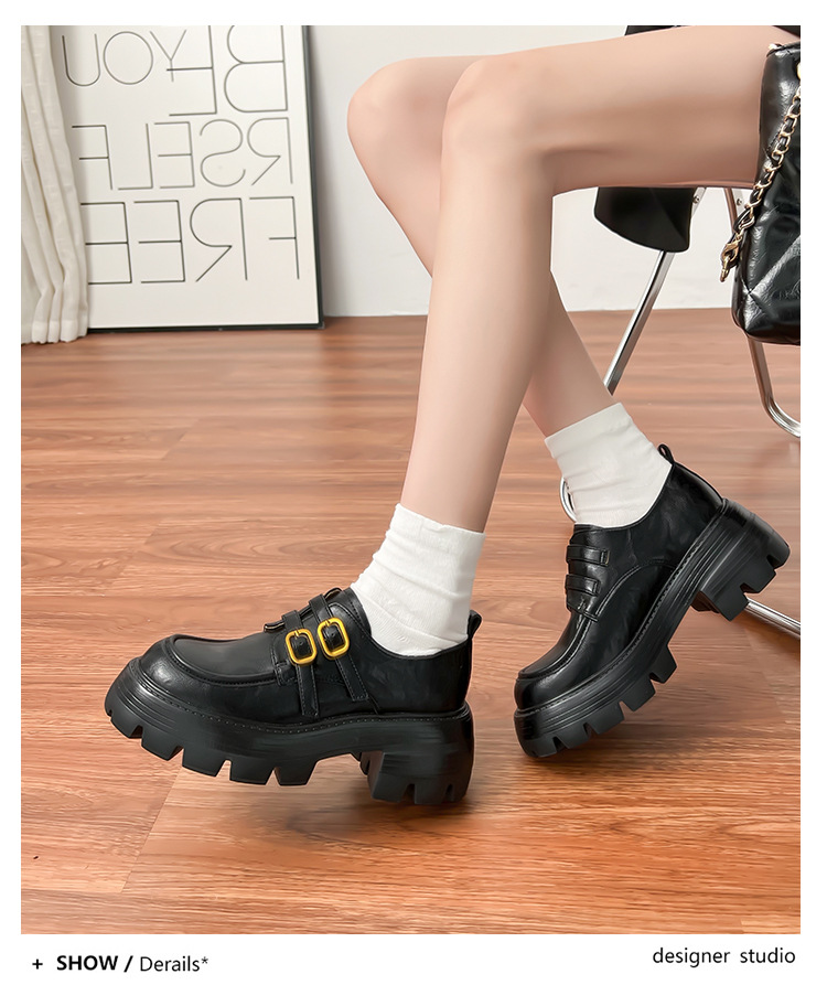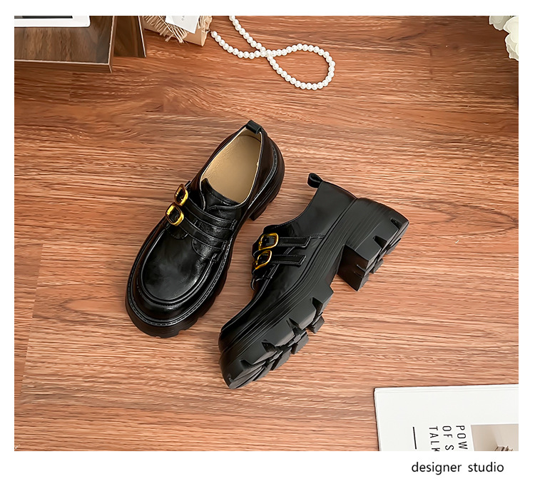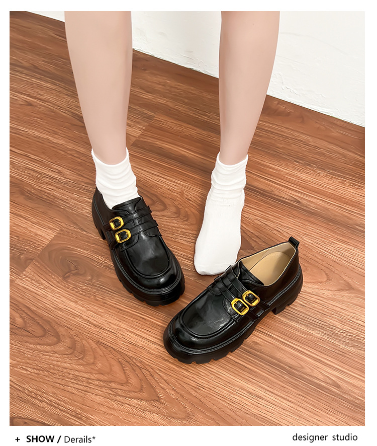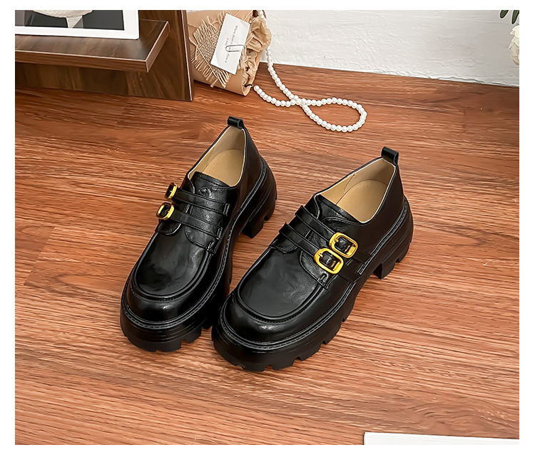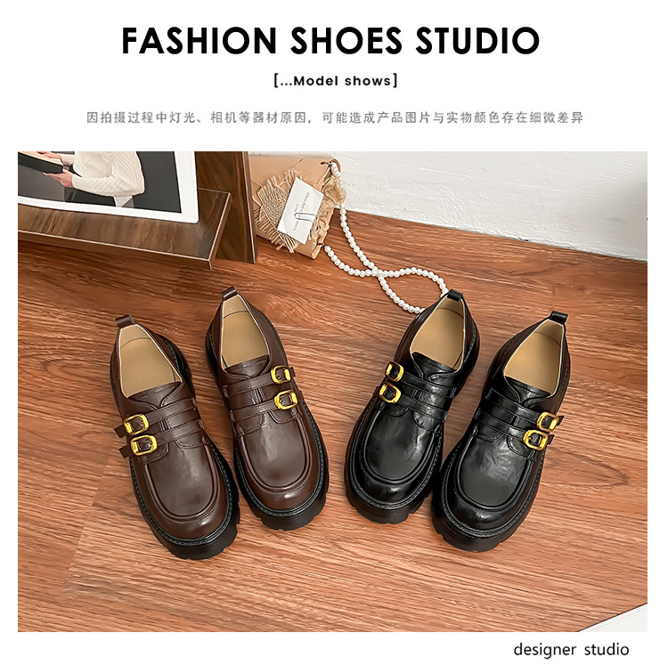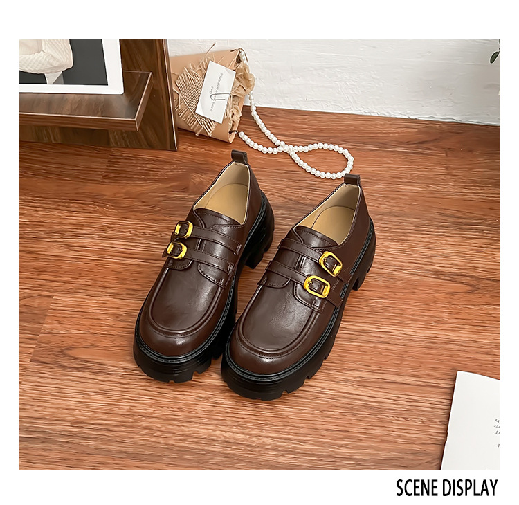 Su Yinyin 봄 새로운 두꺼운 밑창 높이 증가 작은 가죽 신발 여성 올 매치 유니폼 여성 말 가죽 패턴 작은 금 버튼 로퍼