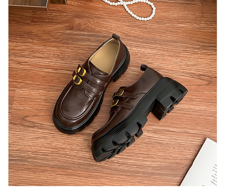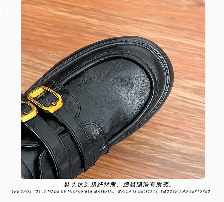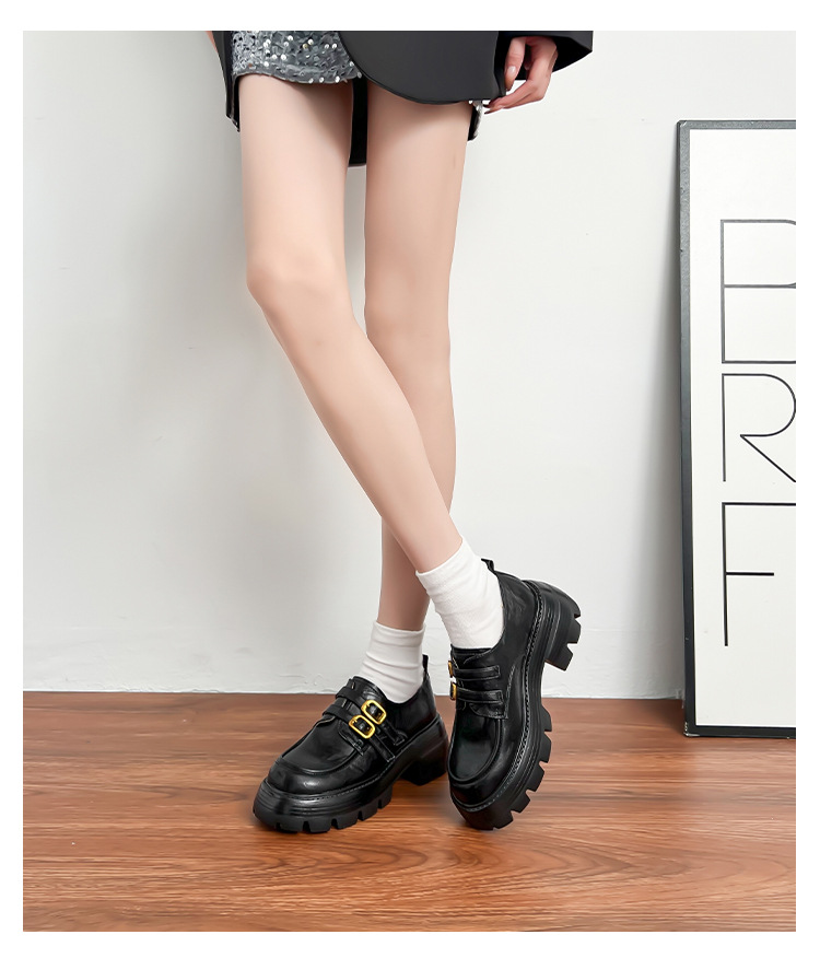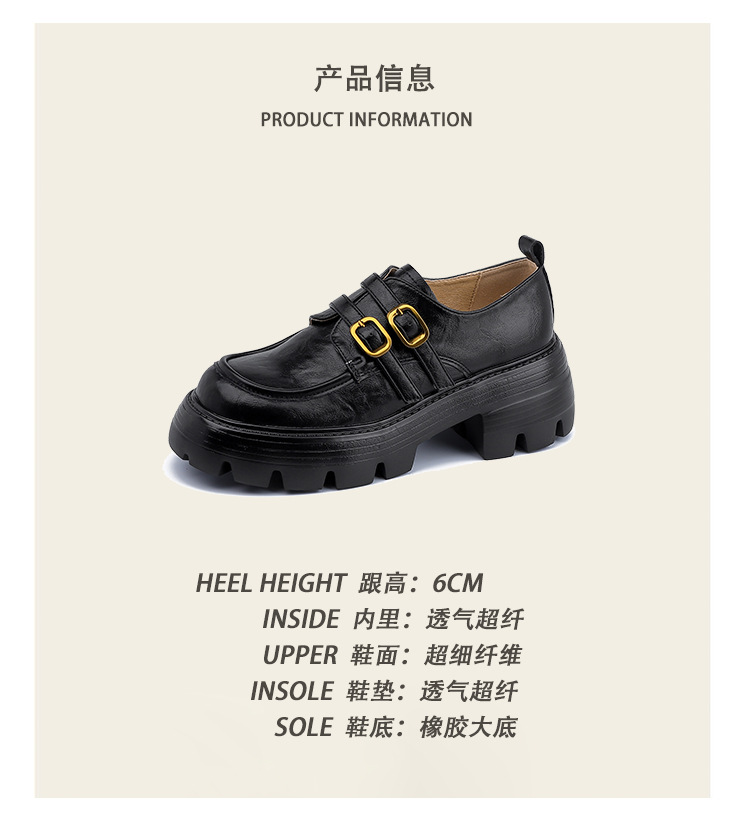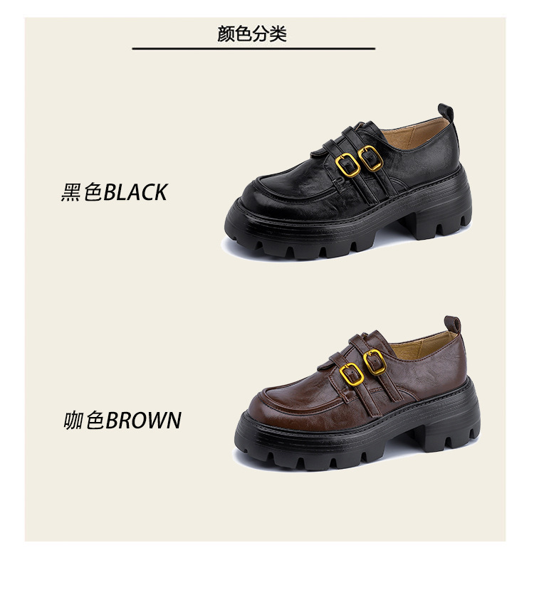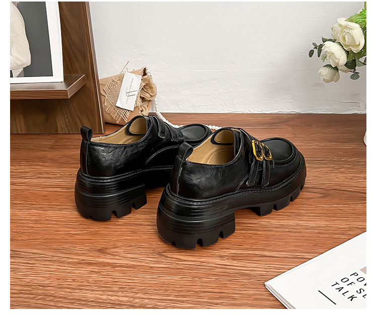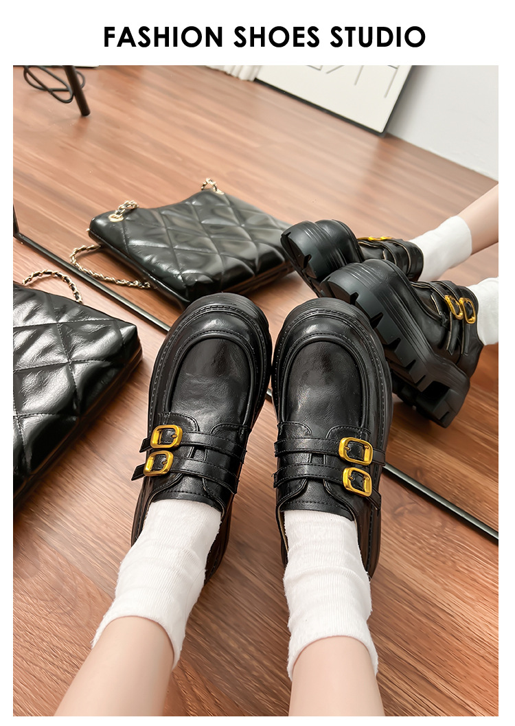 Su Yinyin 봄 새로운 두꺼운 밑창 높이 증가 작은 가죽 신발 여성 올 매치 유니폼 여성 말 가죽 패턴 작은 금 버튼 로퍼