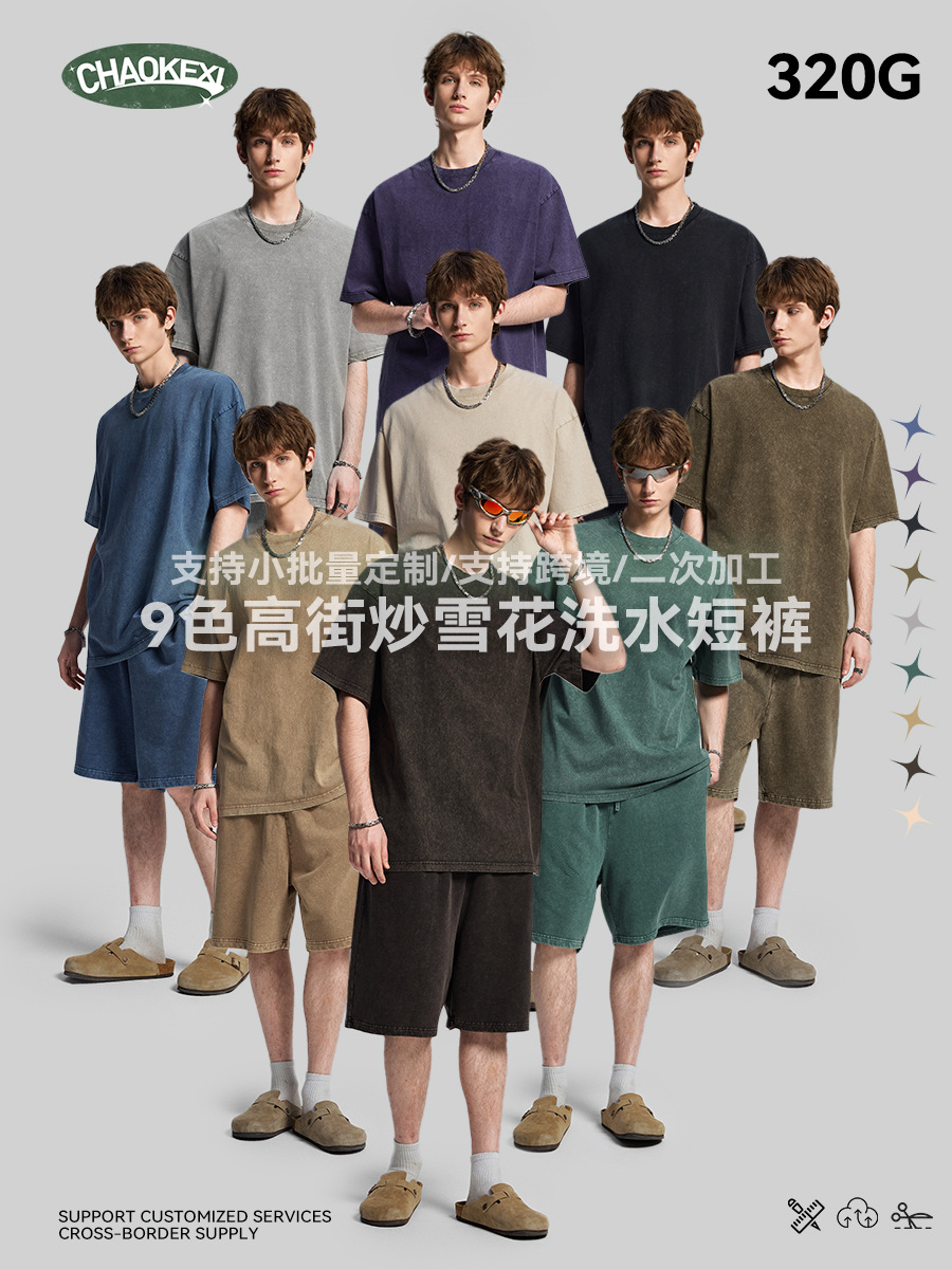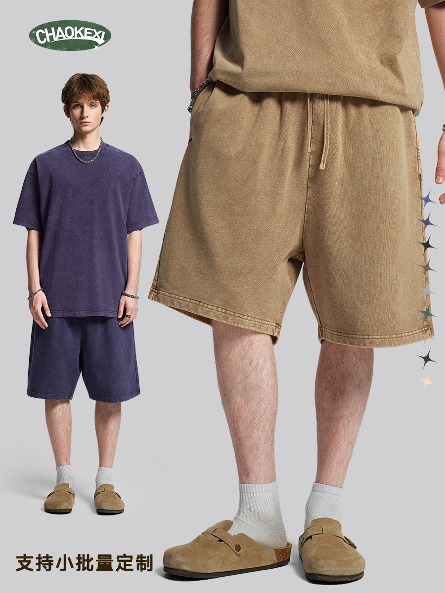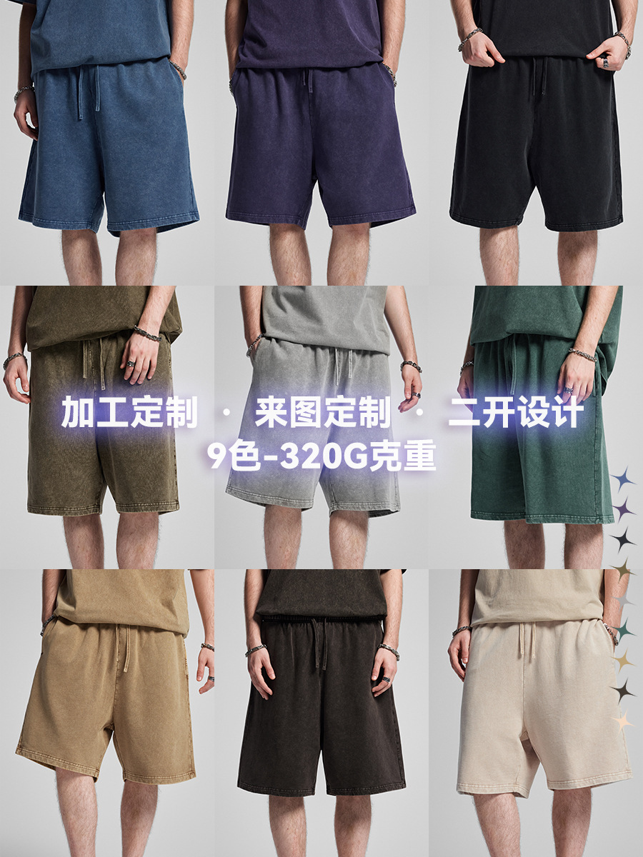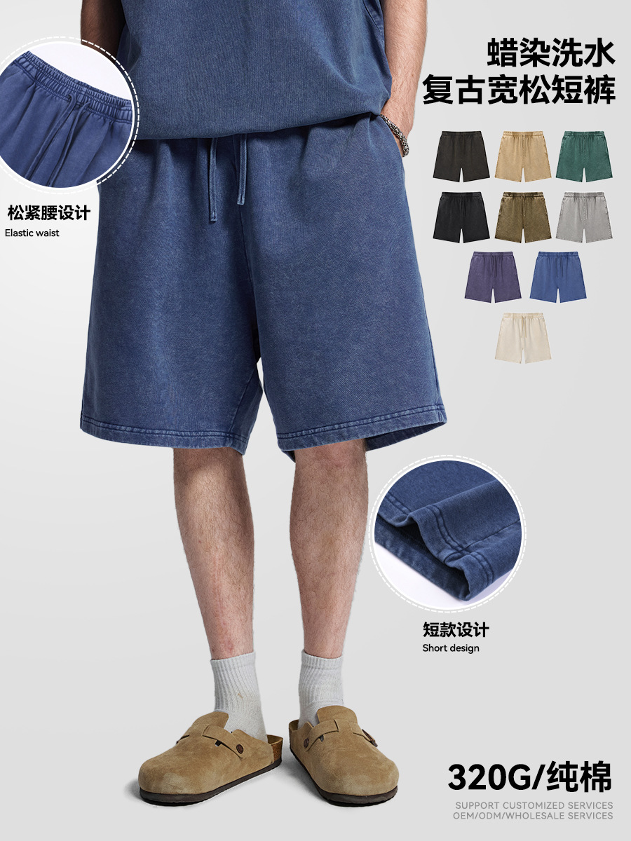 새로운 미국 스타일 트렌디 브랜드 워싱 왁스염색 9컬러 여름용 남성용 무릎길이 반바지, 헤비웨이트 320g 루즈핏 레트로 중간길이 바지