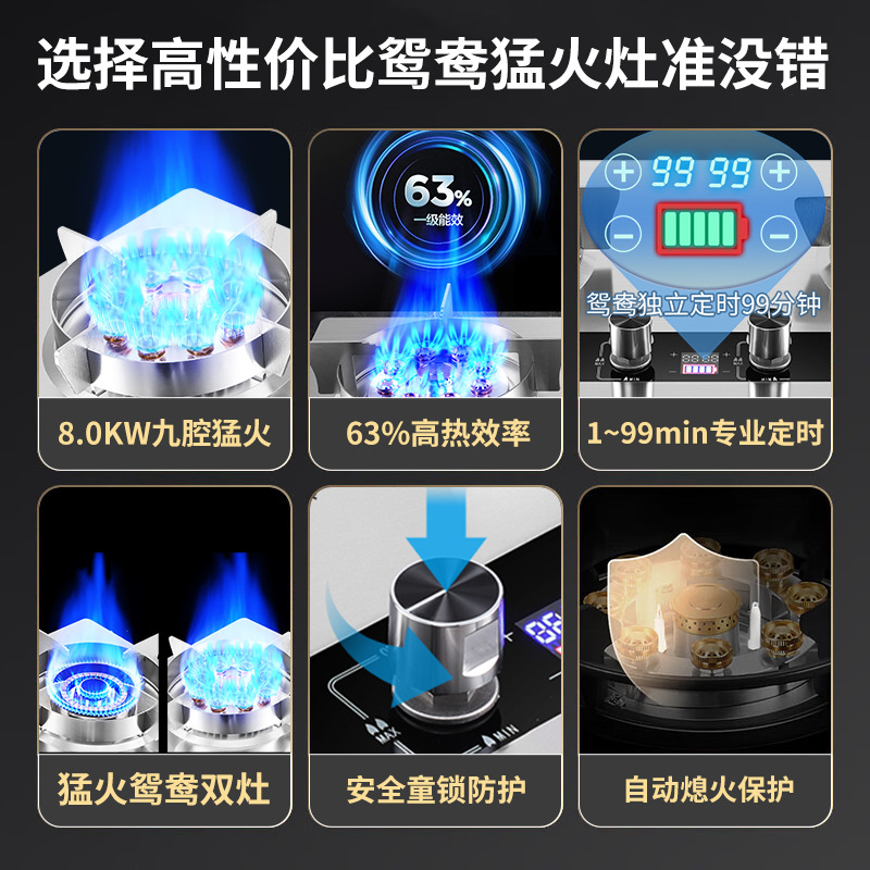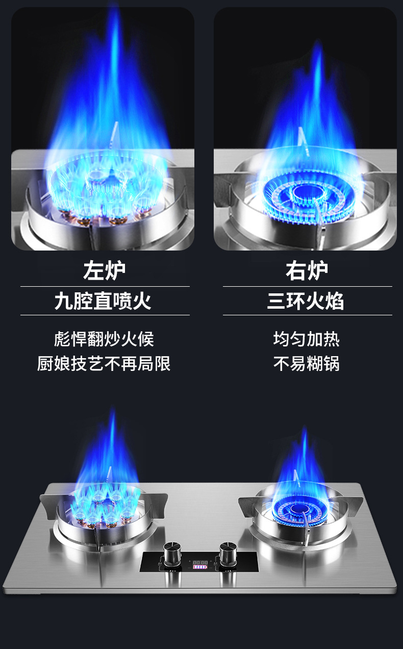 재고 가정용 가스 스토브 이중 스토브 액화 가스 렌지 천연 가스 스토브 치열한 화재 타이밍 테이블 임베디드 이중 용도 도매