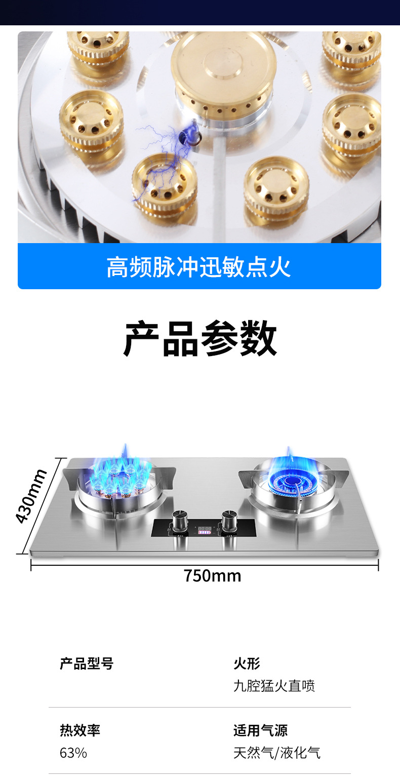 도매 가스 스토브 가정용 스테인레스 스틸 임베디드 이중 스토브 가스 스토브 천연 가스 스토브 액화 가스 주방 이중 용도 도매