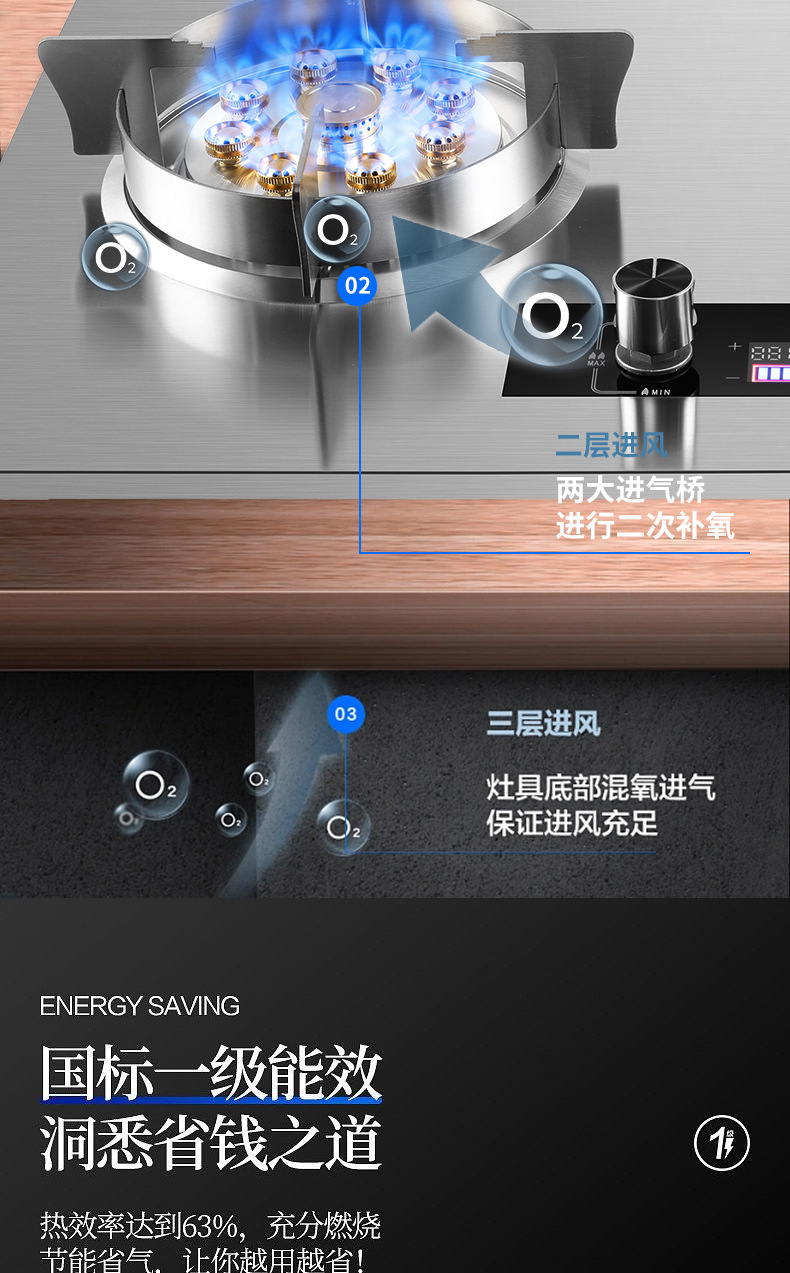 [플래그십 모델] 스테인레스 스틸 더블 파이어 + 타이머 오프 + 전체 공기 흡입구
