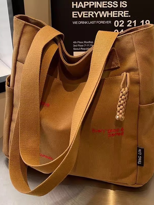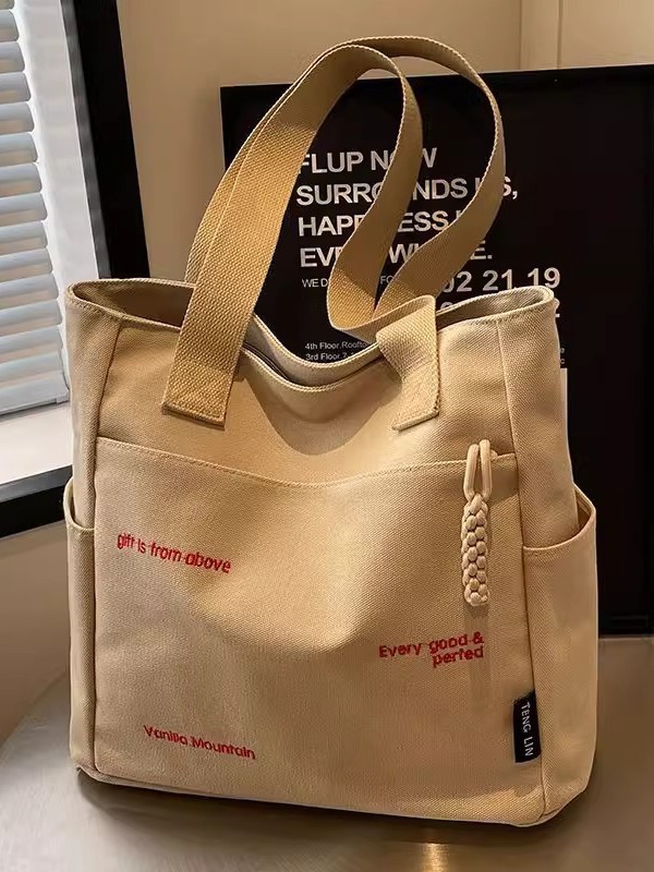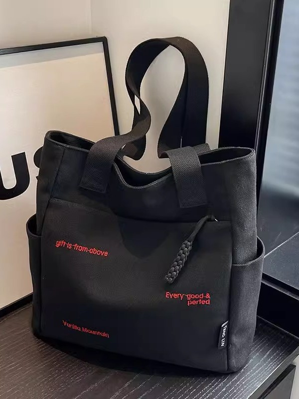 캔버스 가방 여성의 새로운 트렌디 자수 편지 휴대용 학생의 대용량 어깨 가방 캔버스 가방 통근