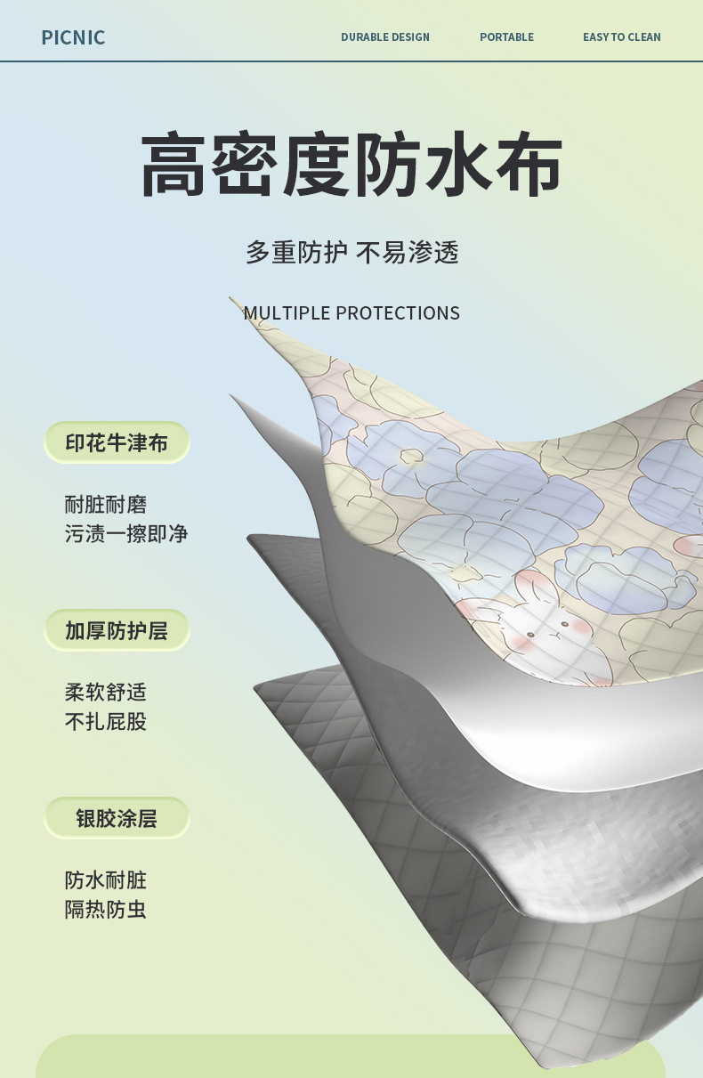 2025 피크닉 매트 5 층 두꺼운 야외 피크닉 캠핑 해변 텐트 매트 봄 나들이 쿠션 방수 잔디