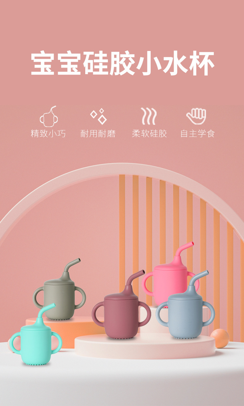 베이비 실리콘 흡입 튜브 컵 베이비 러닝 드루킹 컵 덕빌 컵 드롭 방지 어린이 식기 세트 실리콘 워터 컵