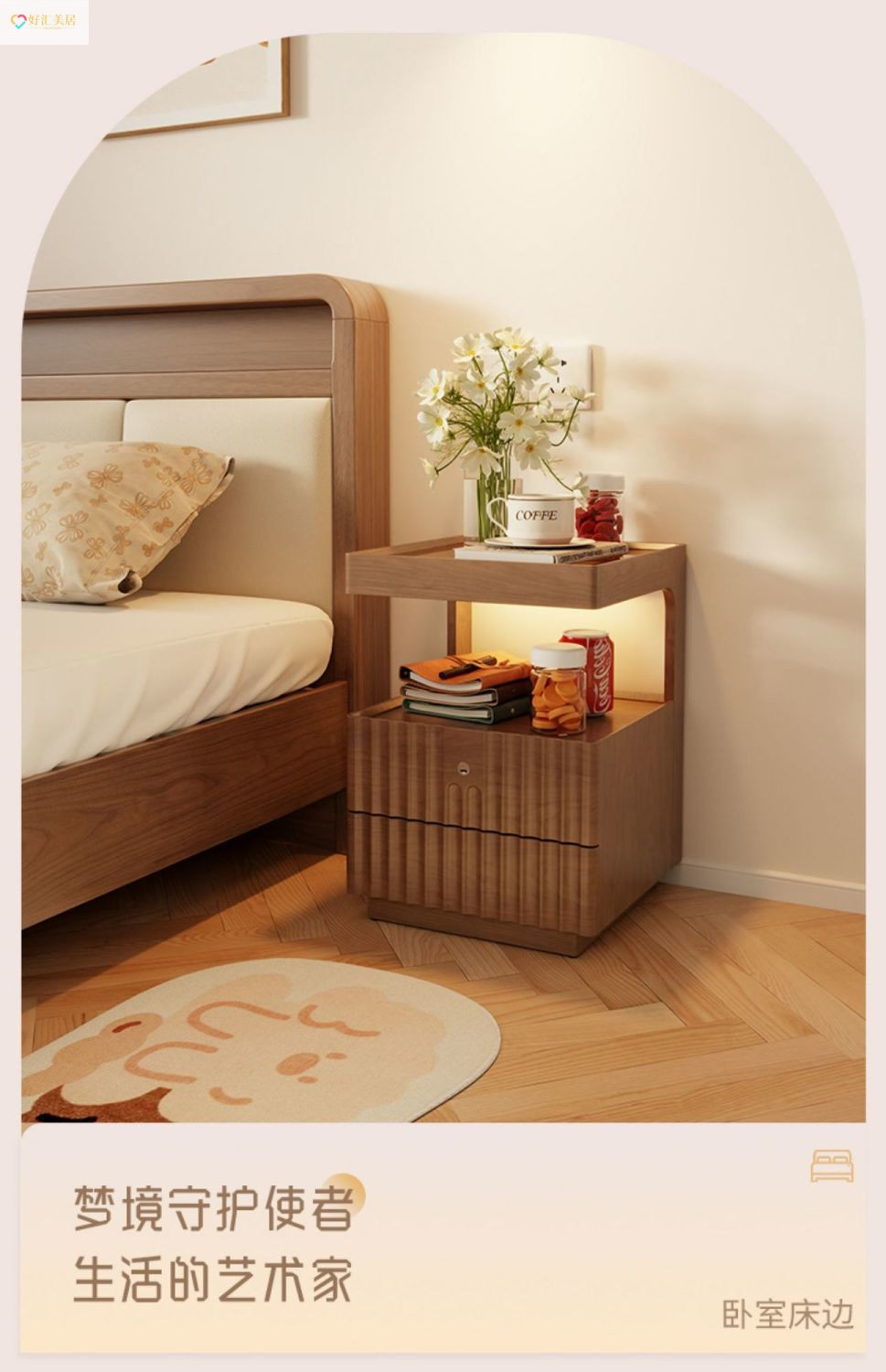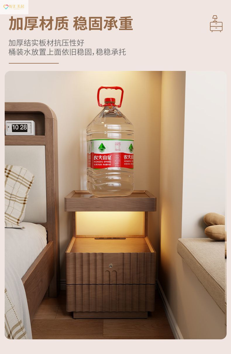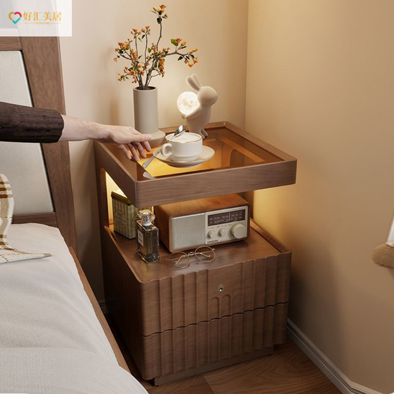 단단한 나무 침대 옆 테이블 간단한 현대 가정 침실 사물함 작은 침대 옆 저장 랙 자물쇠가있는 간단한 보관 캐비닛