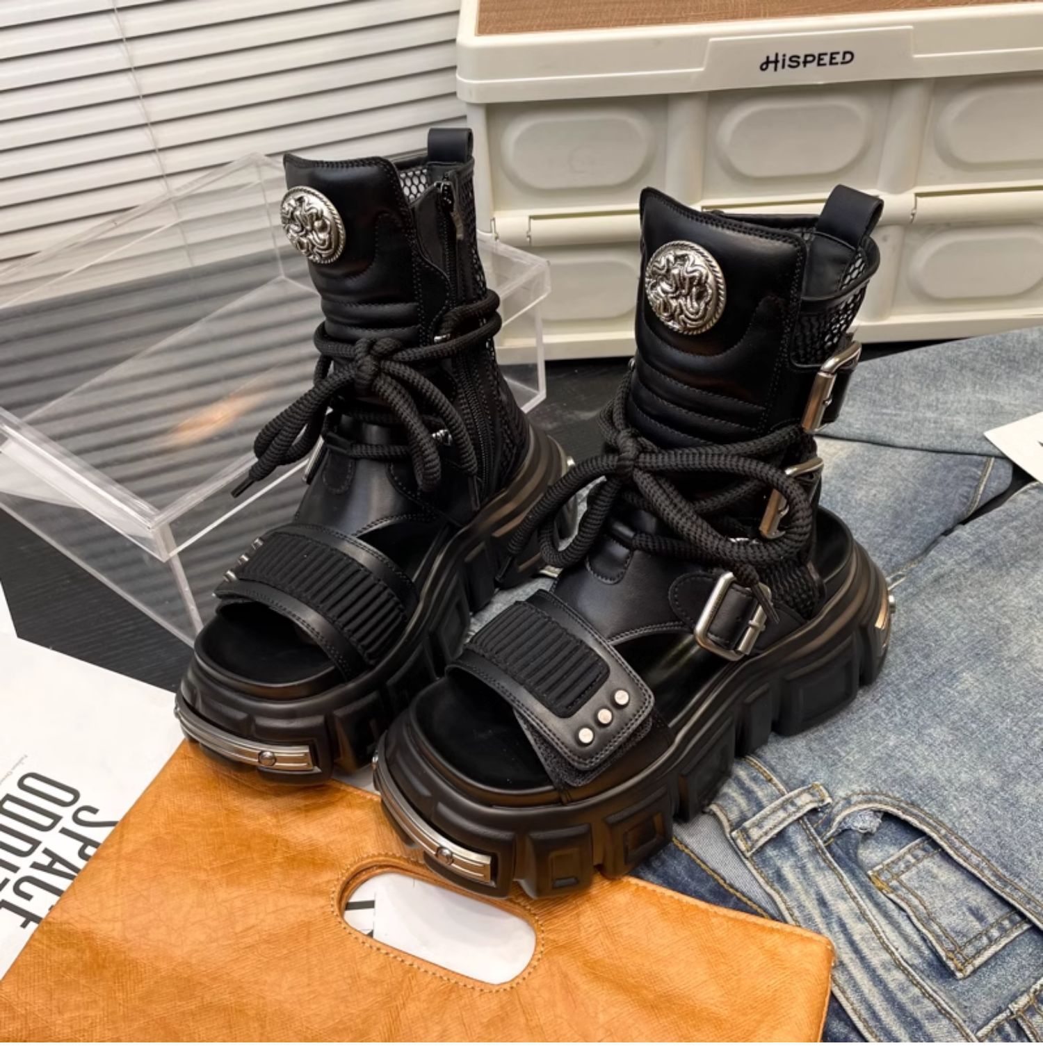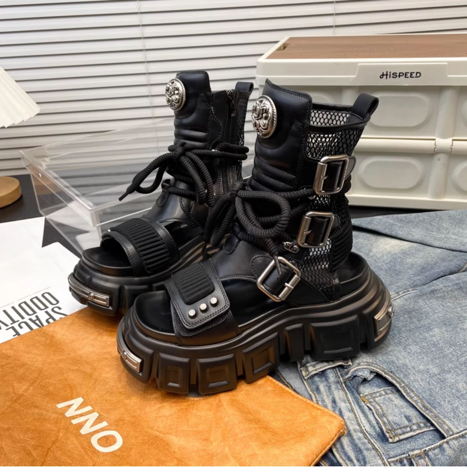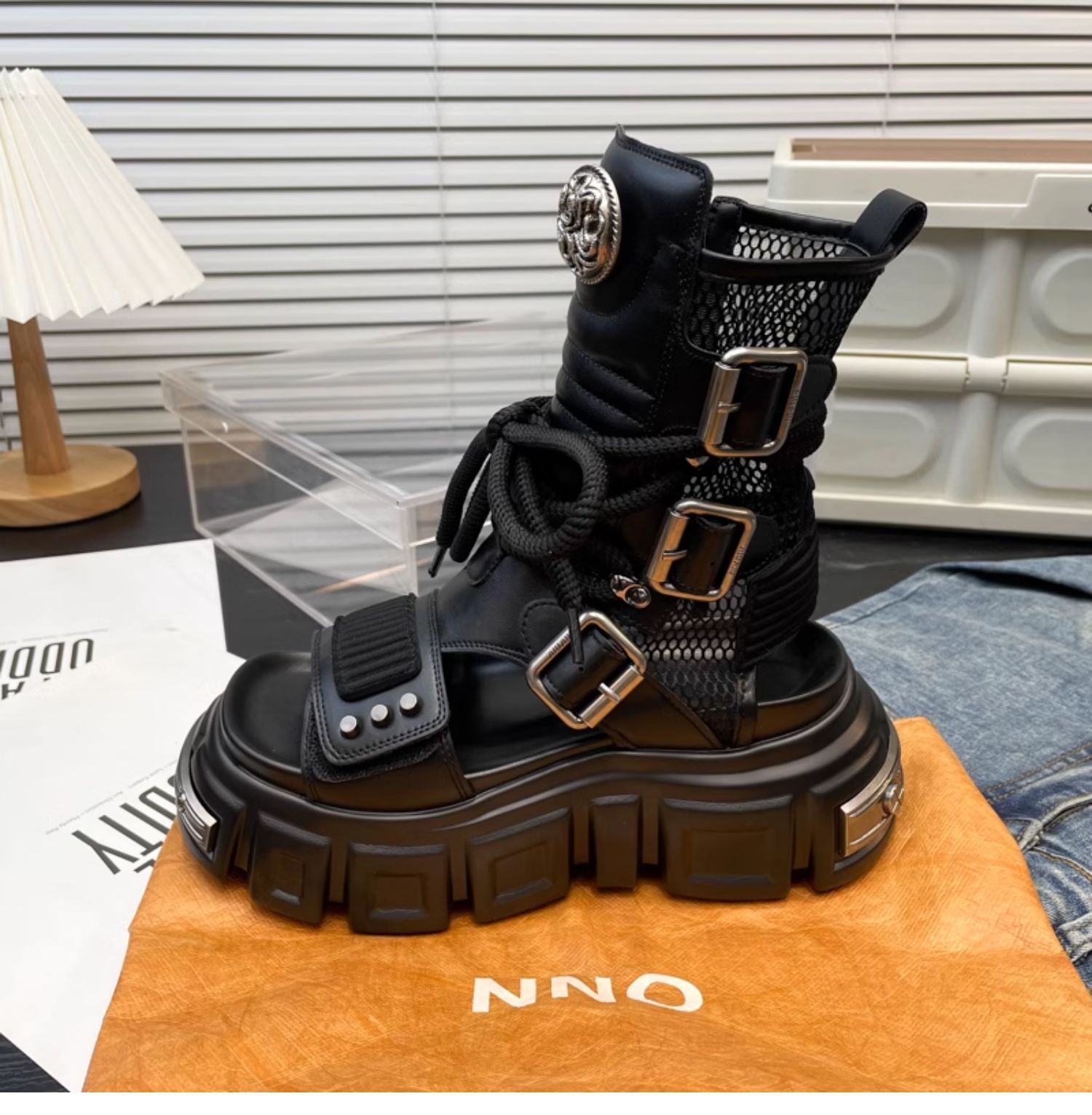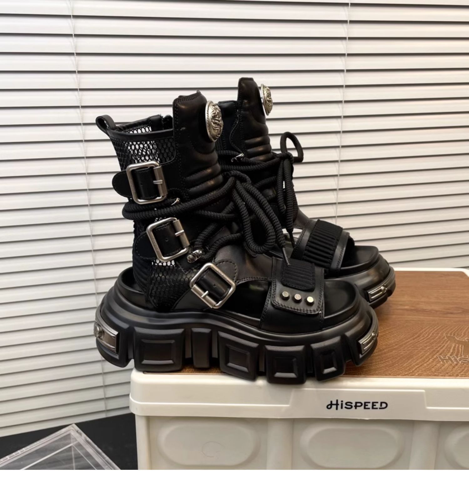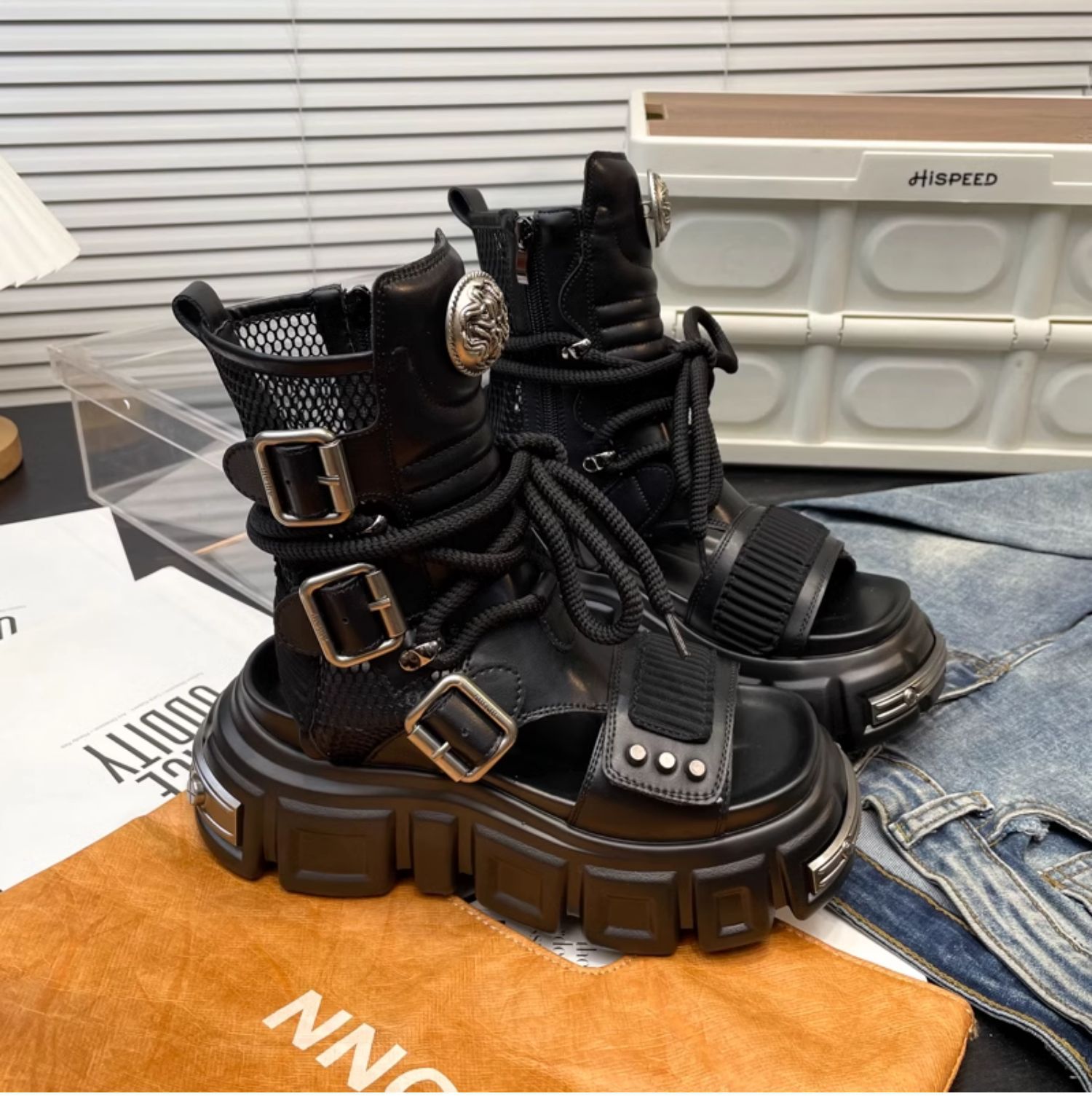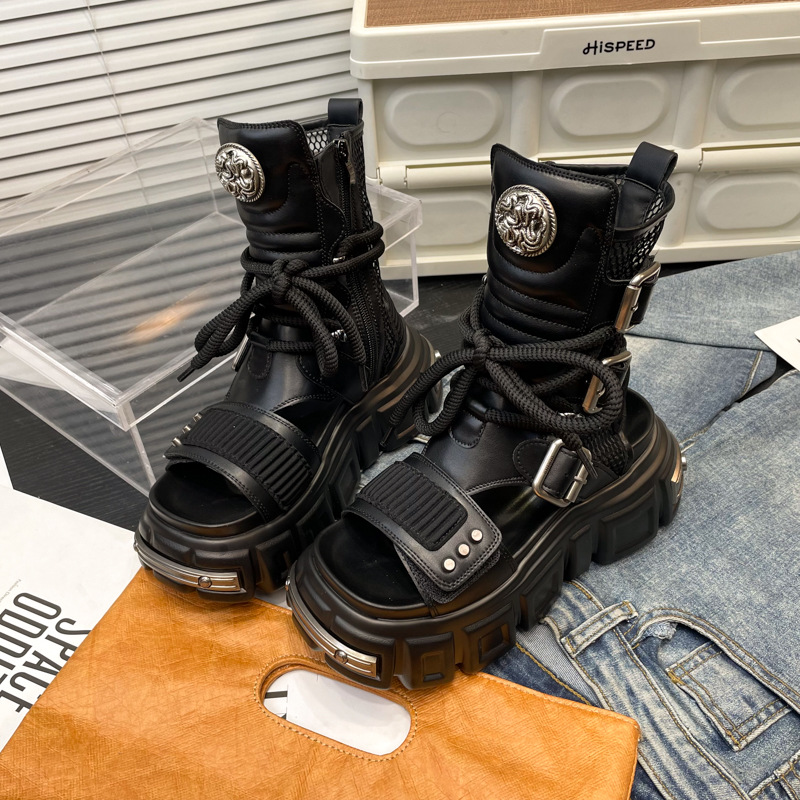니치 탱크 여성용 다크 바이커 부츠 2026 여름 신상 슬림핏 쿨 부츠 끈 장식 두꺼운 밑창 숏부츠 마틴 부츠