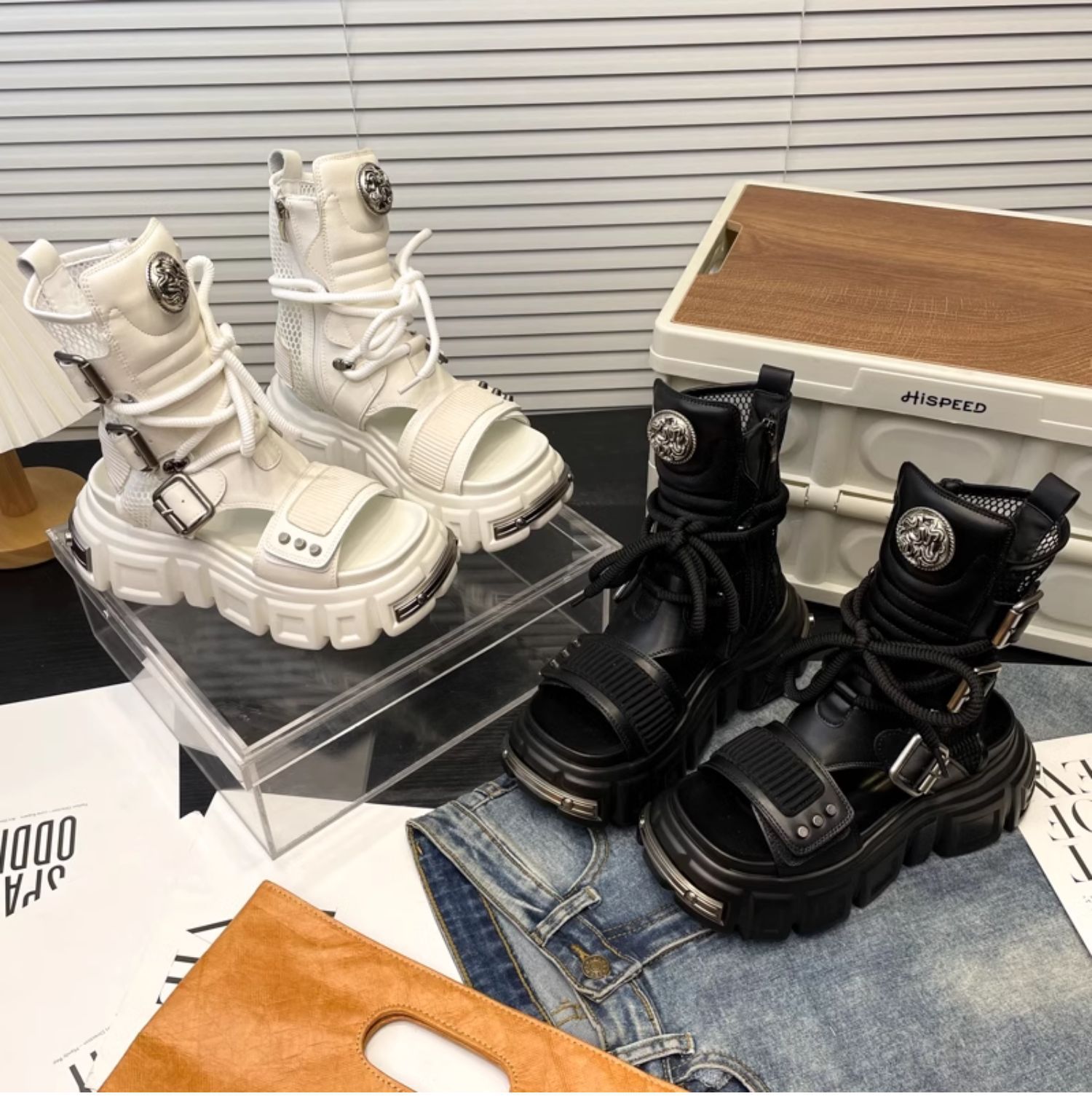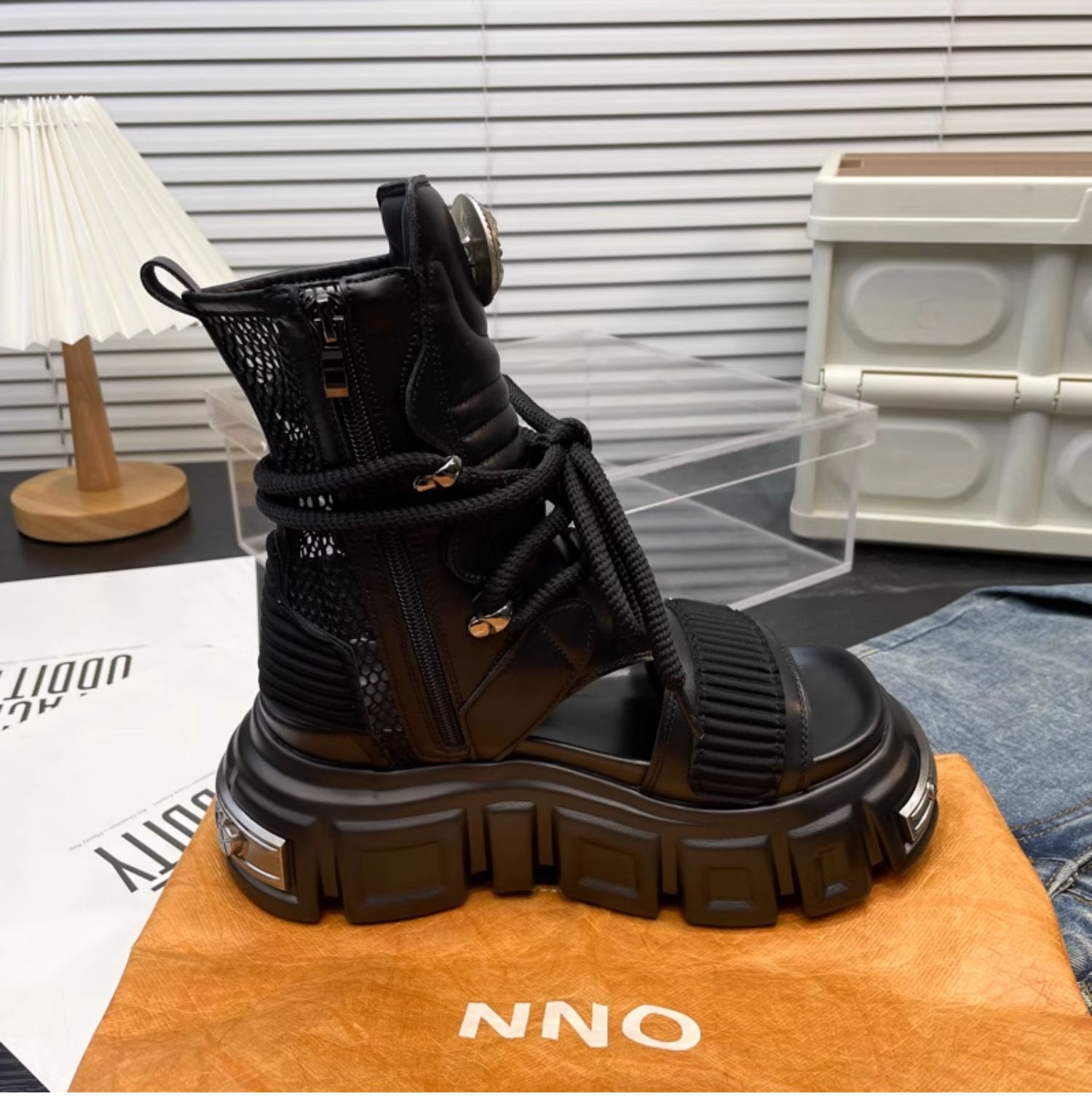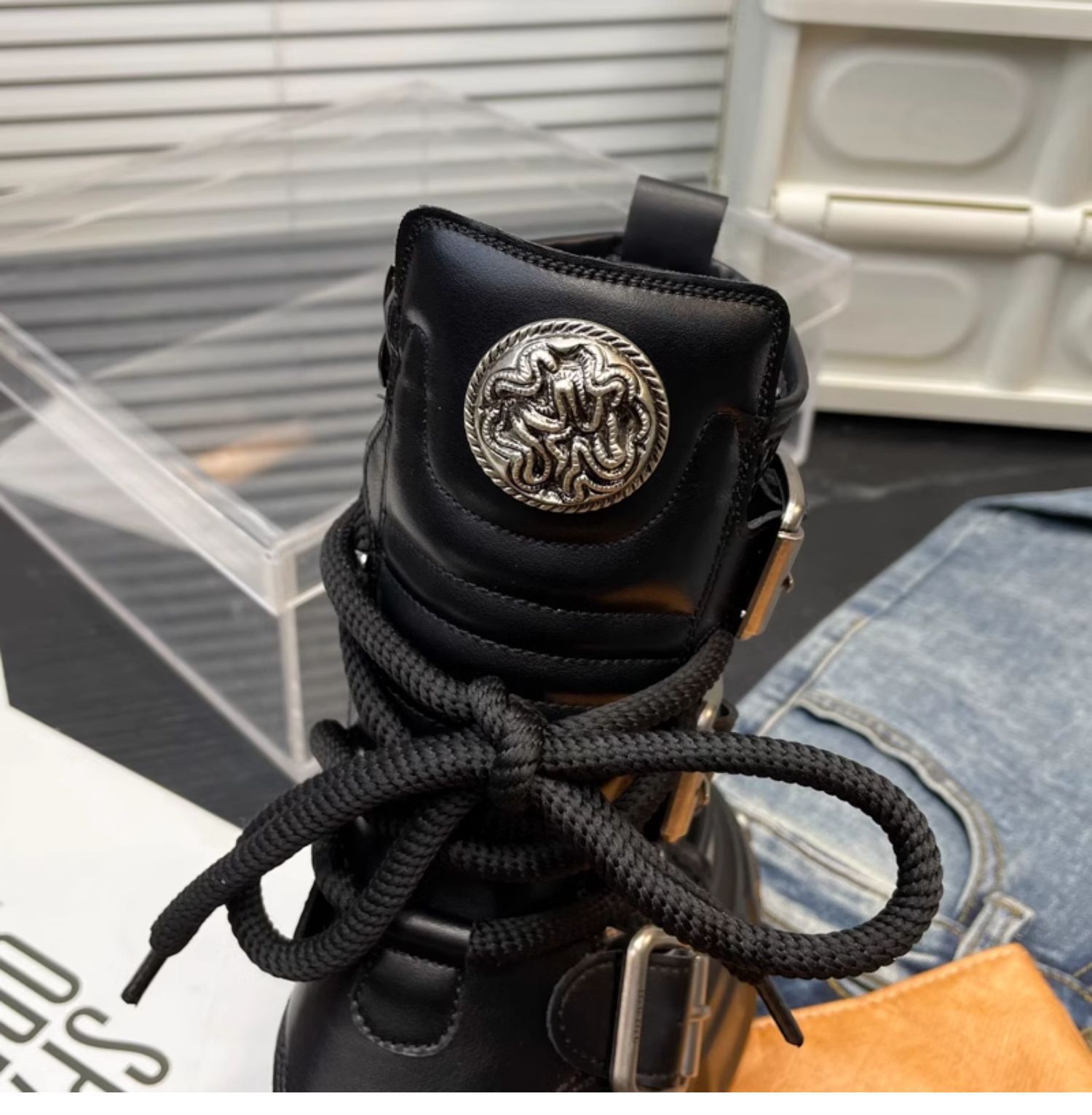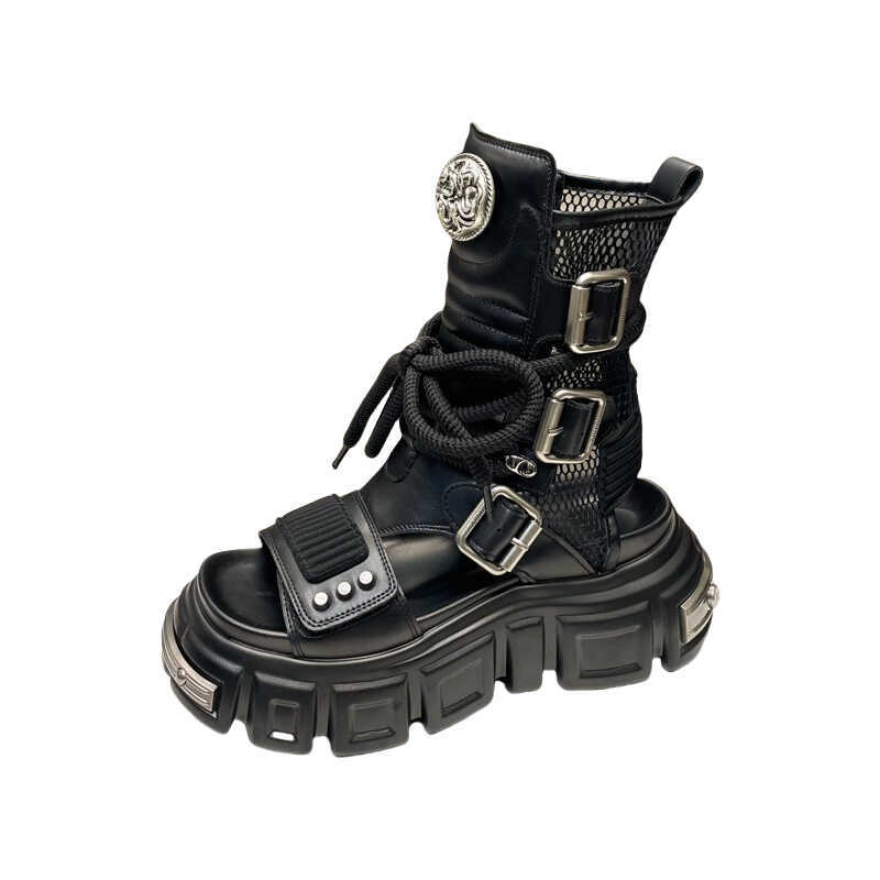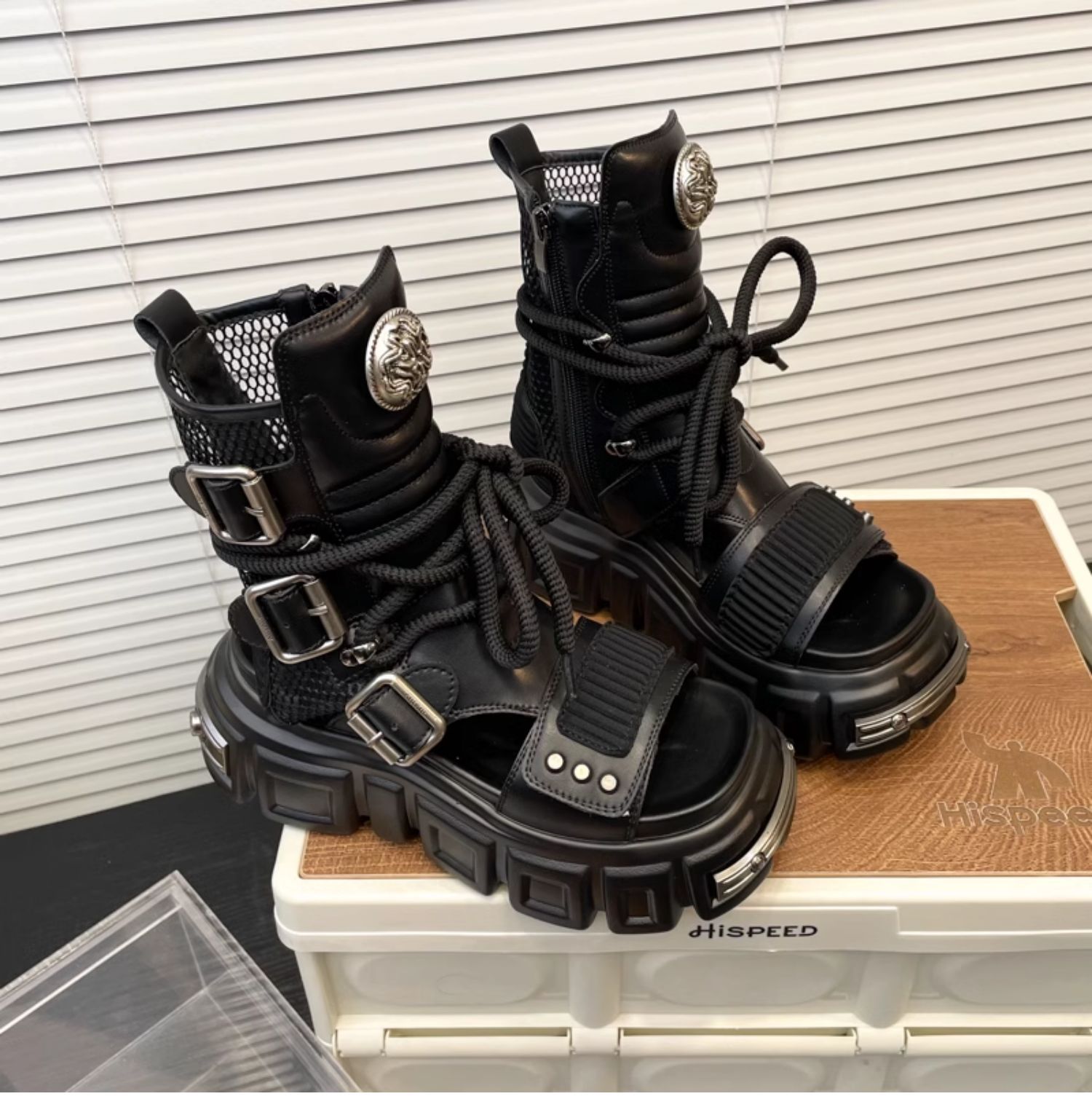니치 탱크 여성용 다크 바이커 부츠 2026 여름 신상 슬림핏 쿨 부츠 끈 장식 두꺼운 밑창 숏부츠 마틴 부츠