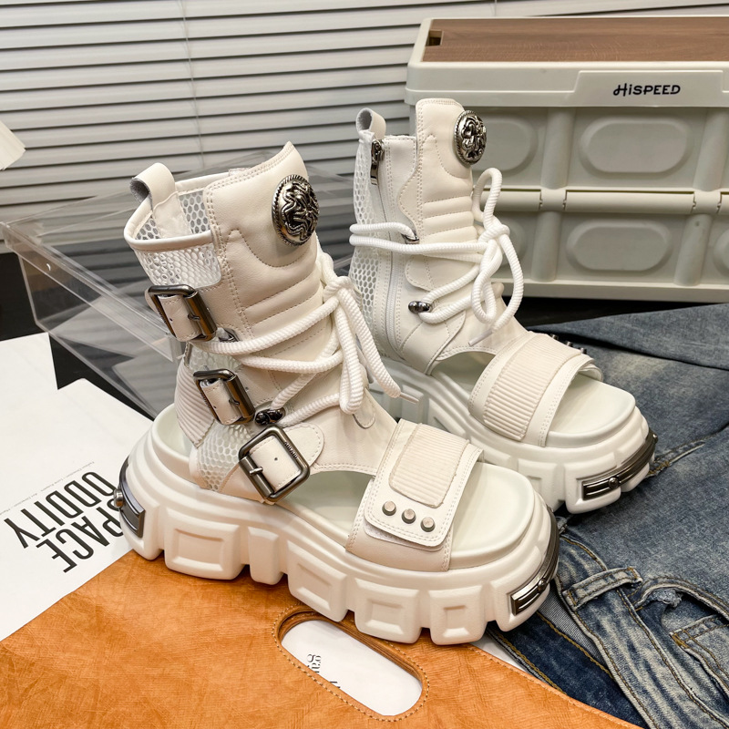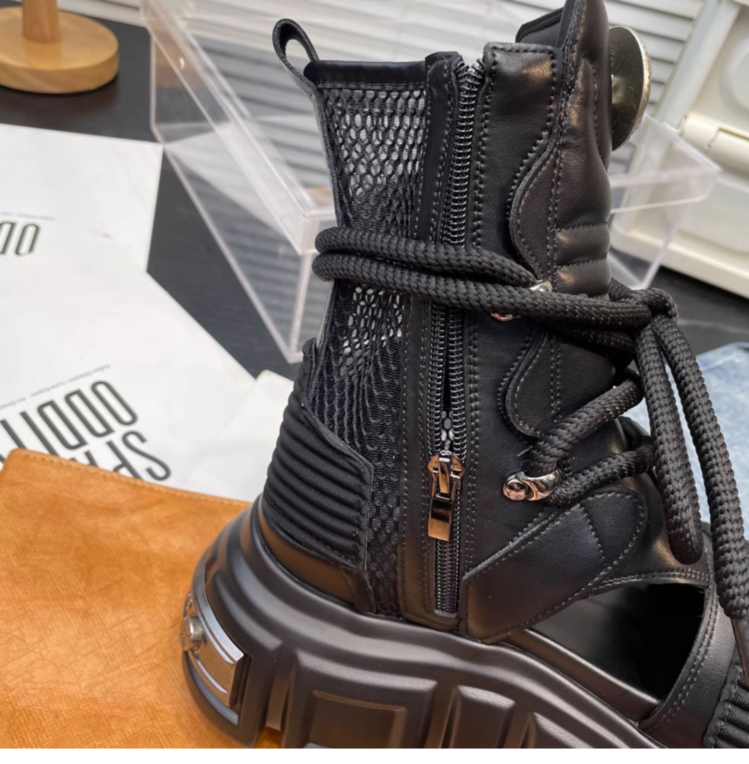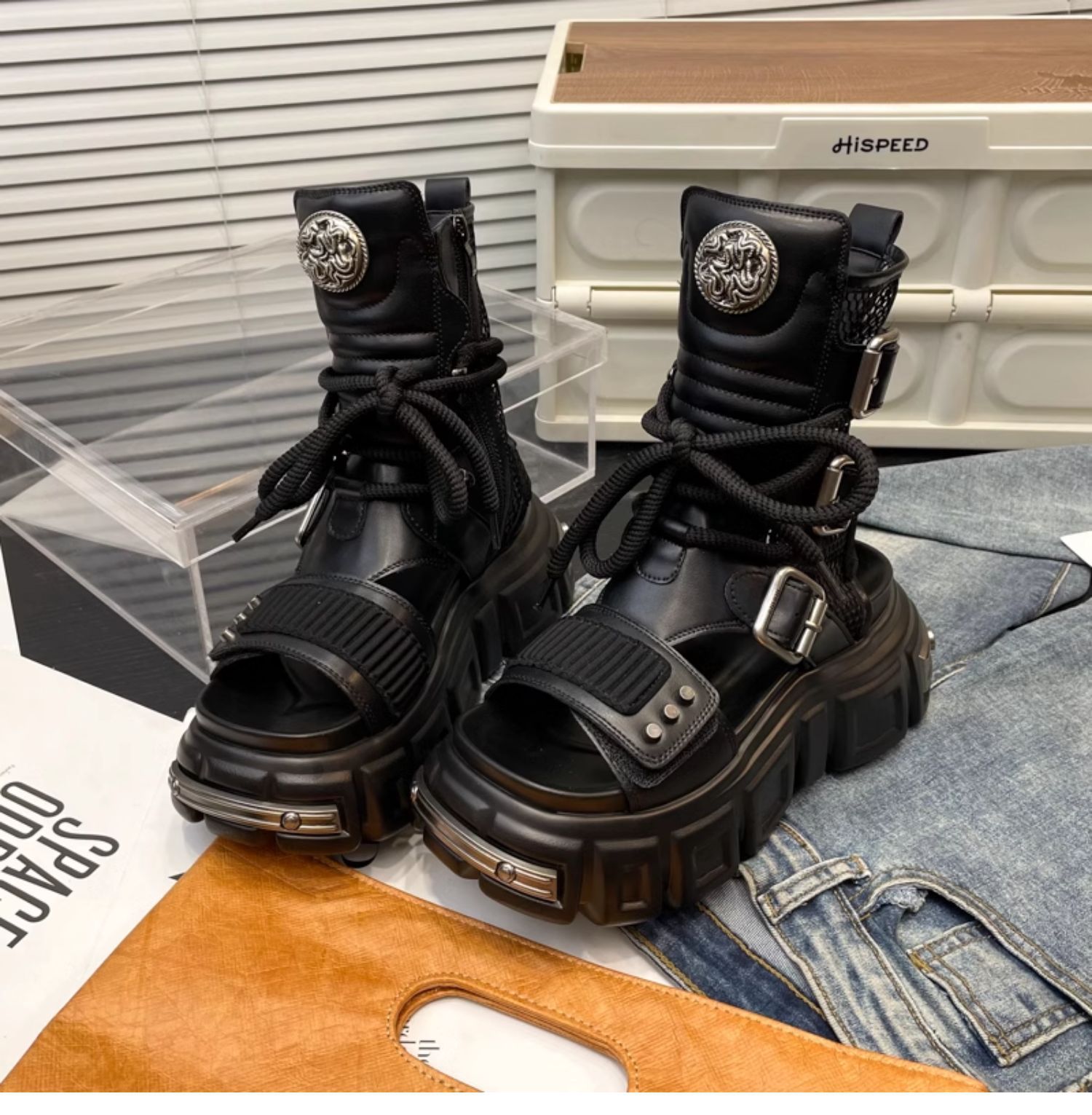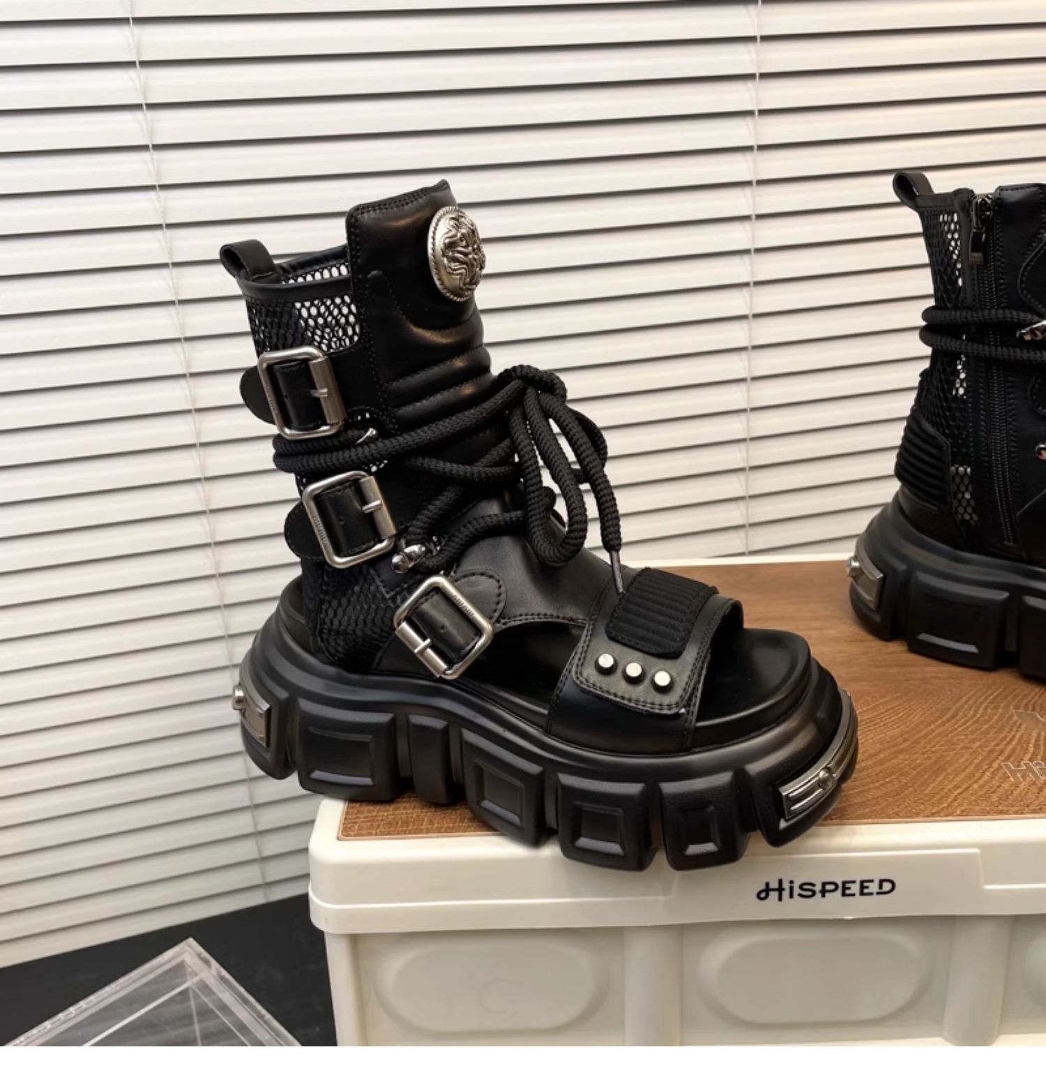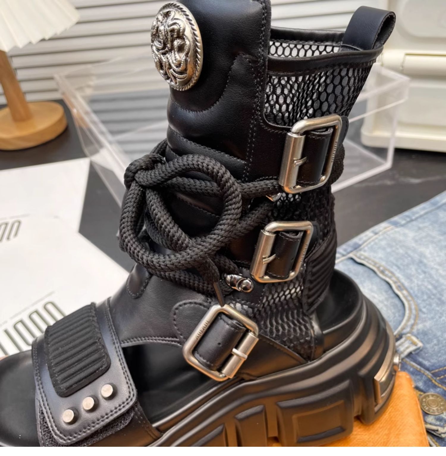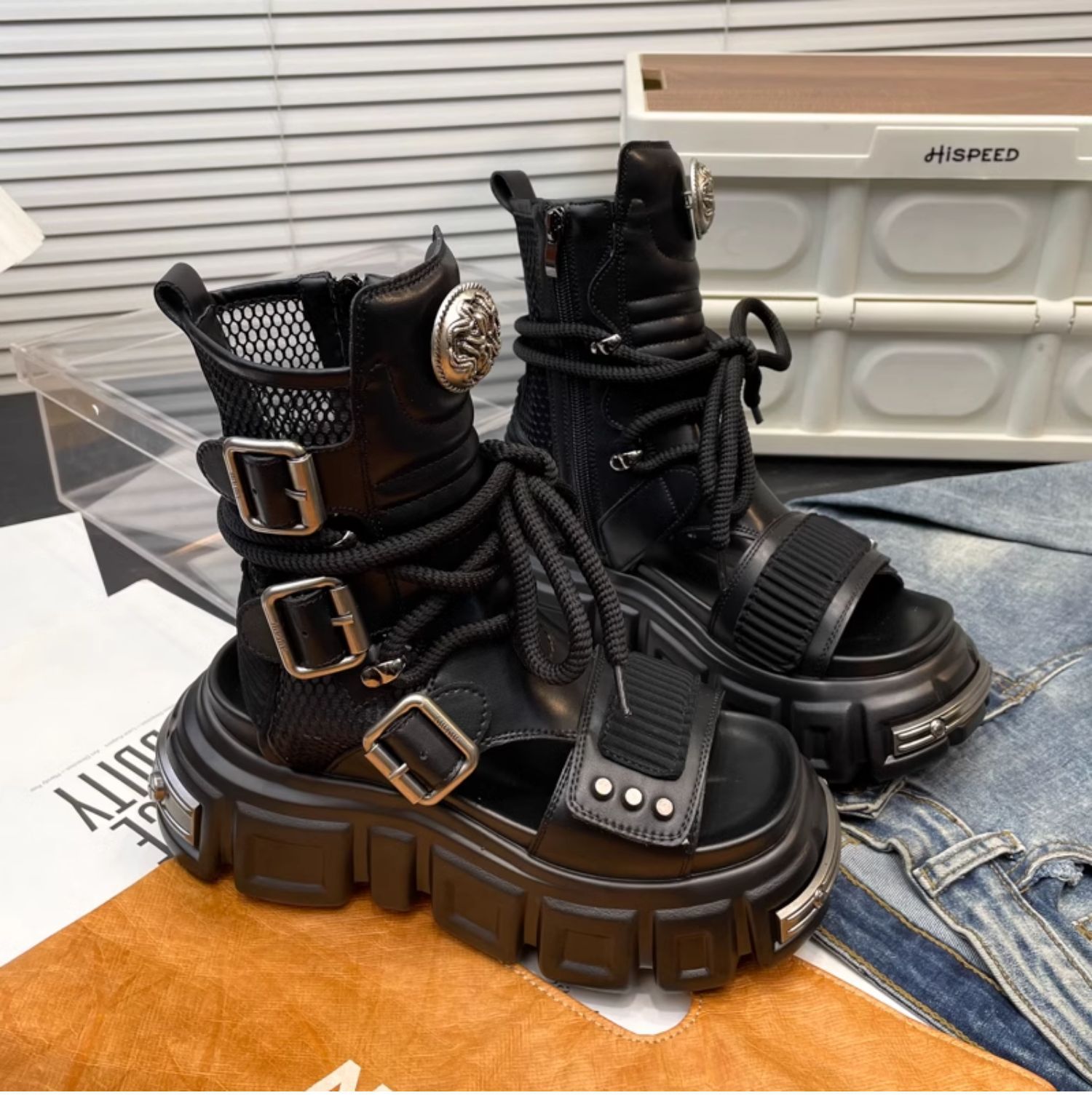 니치 탱크 여성용 다크 바이커 부츠 2026 여름 신상 슬림핏 쿨 부츠 끈 장식 두꺼운 밑창 숏부츠 마틴 부츠