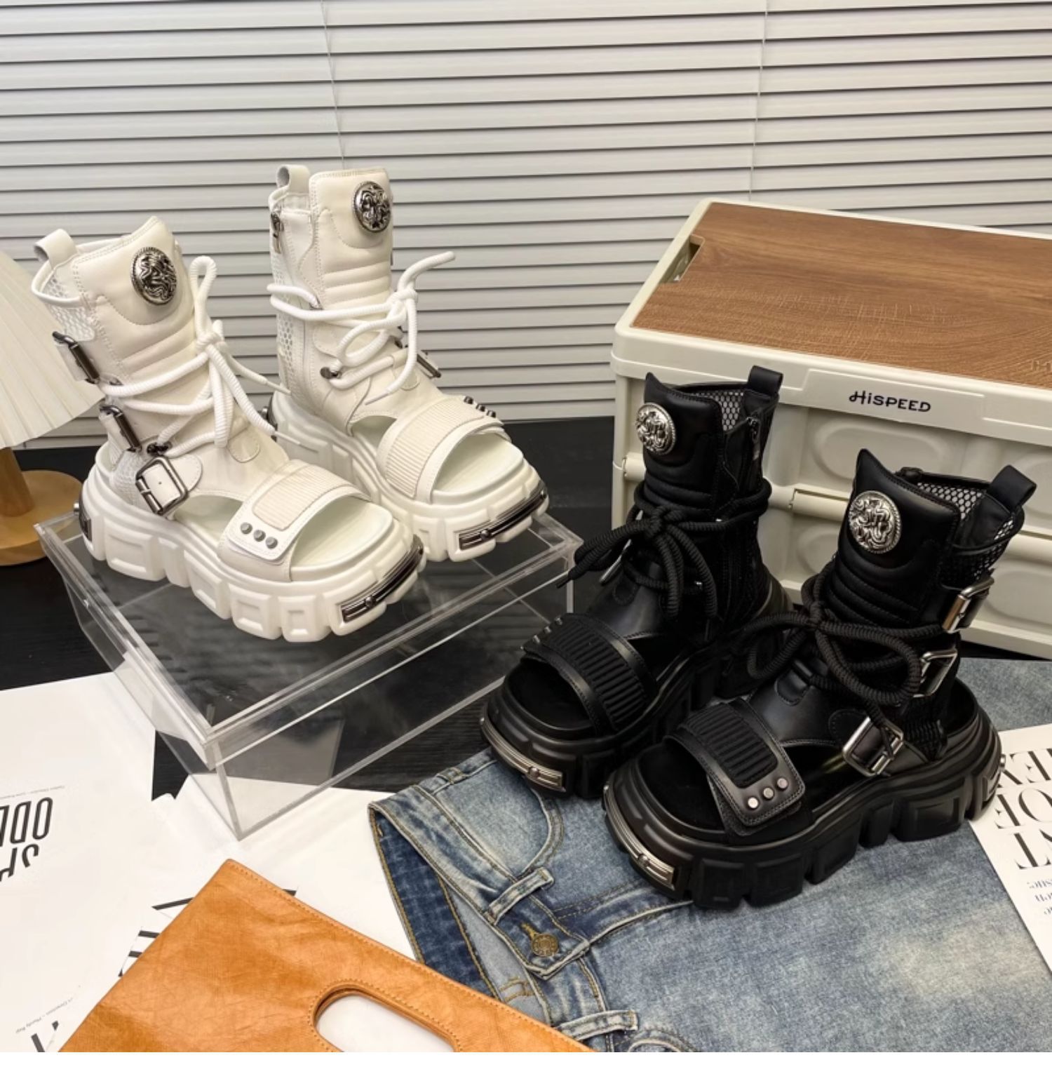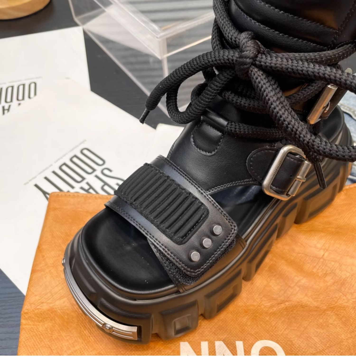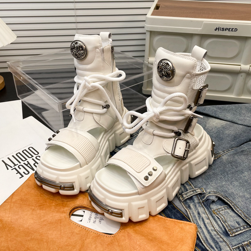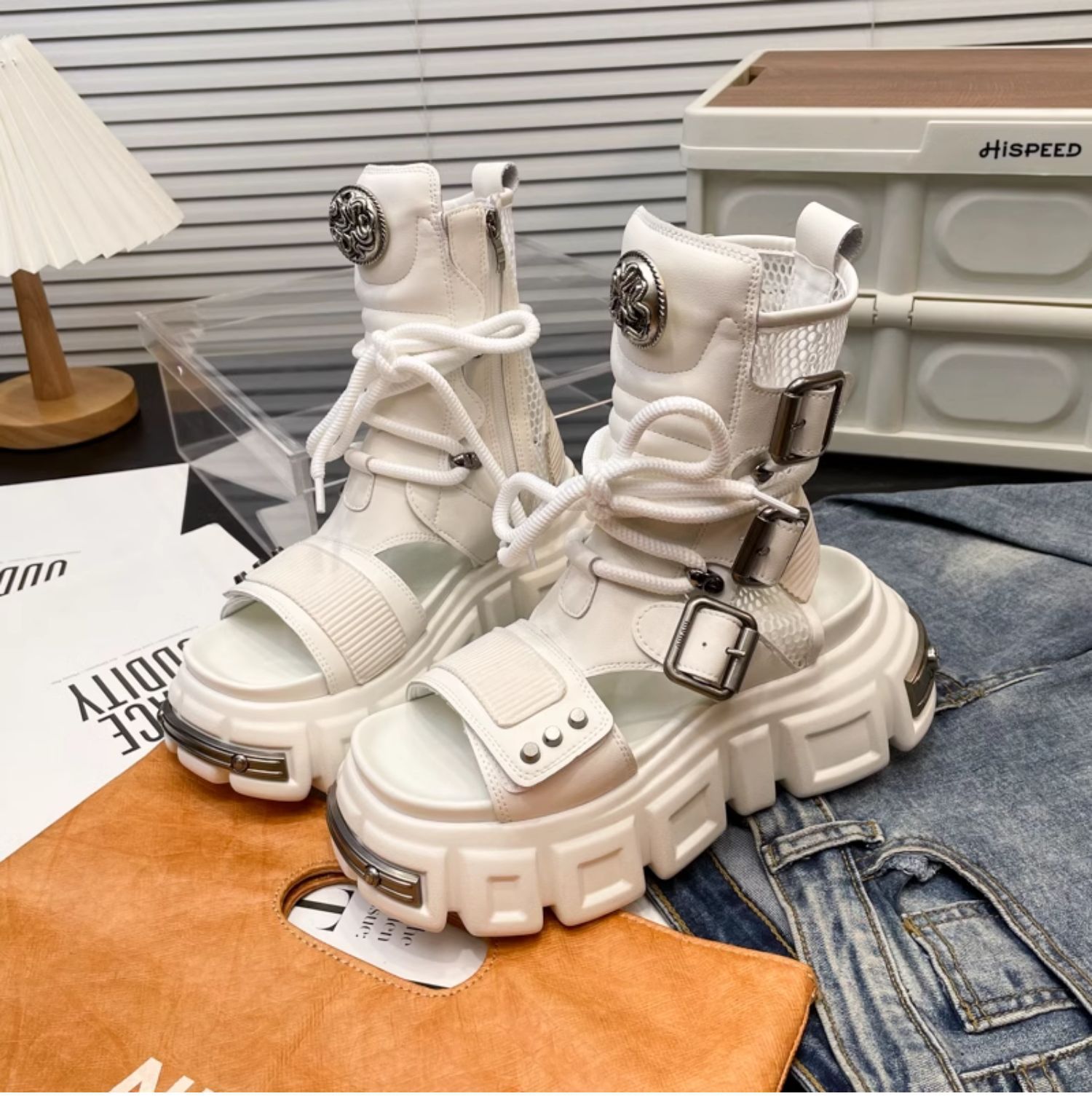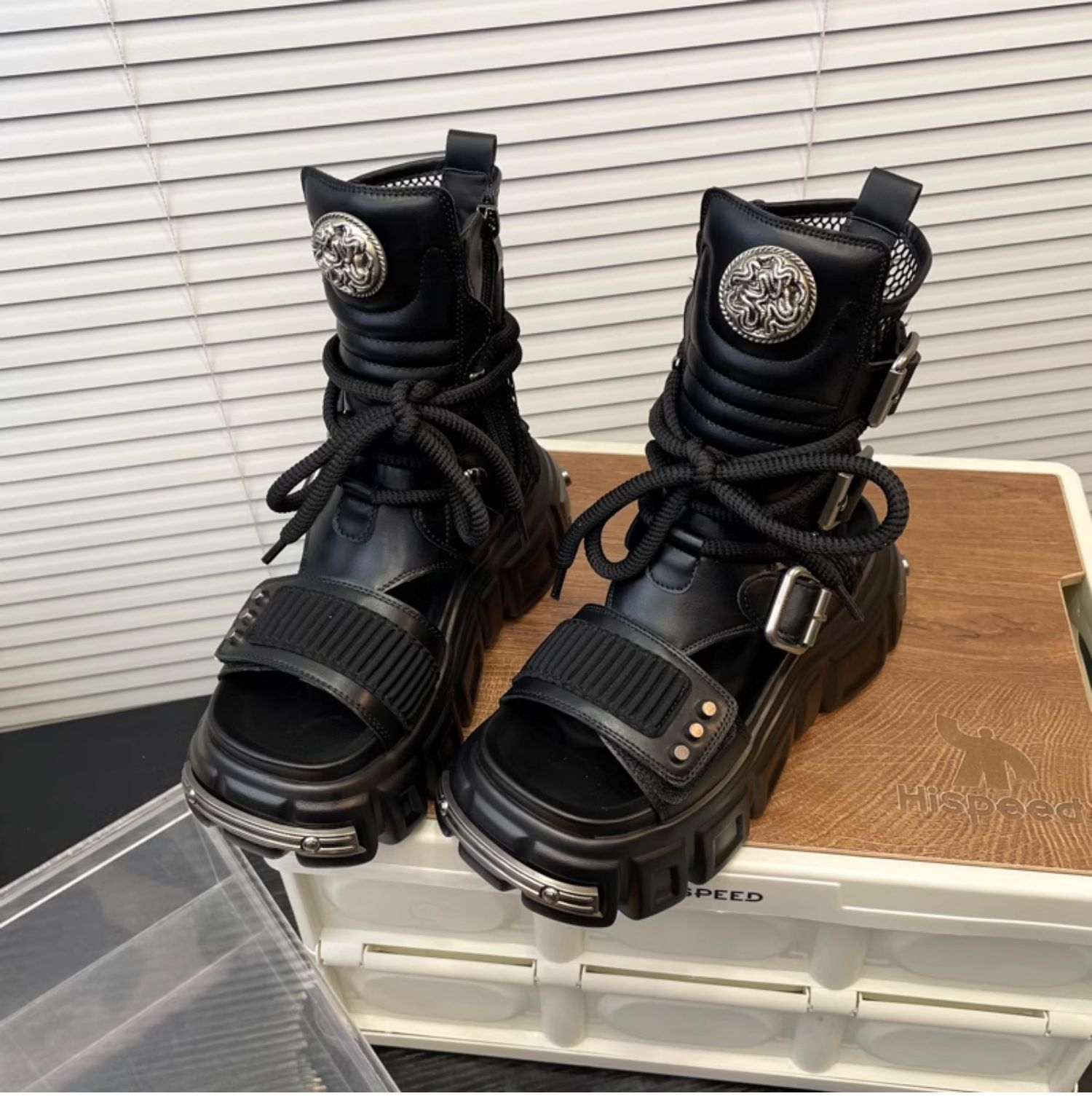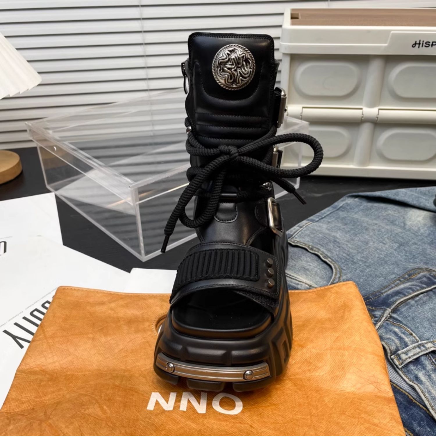 니치 탱크 여성용 다크 바이커 부츠 2026 여름 신상 슬림핏 쿨 부츠 끈 장식 두꺼운 밑창 숏부츠 마틴 부츠
