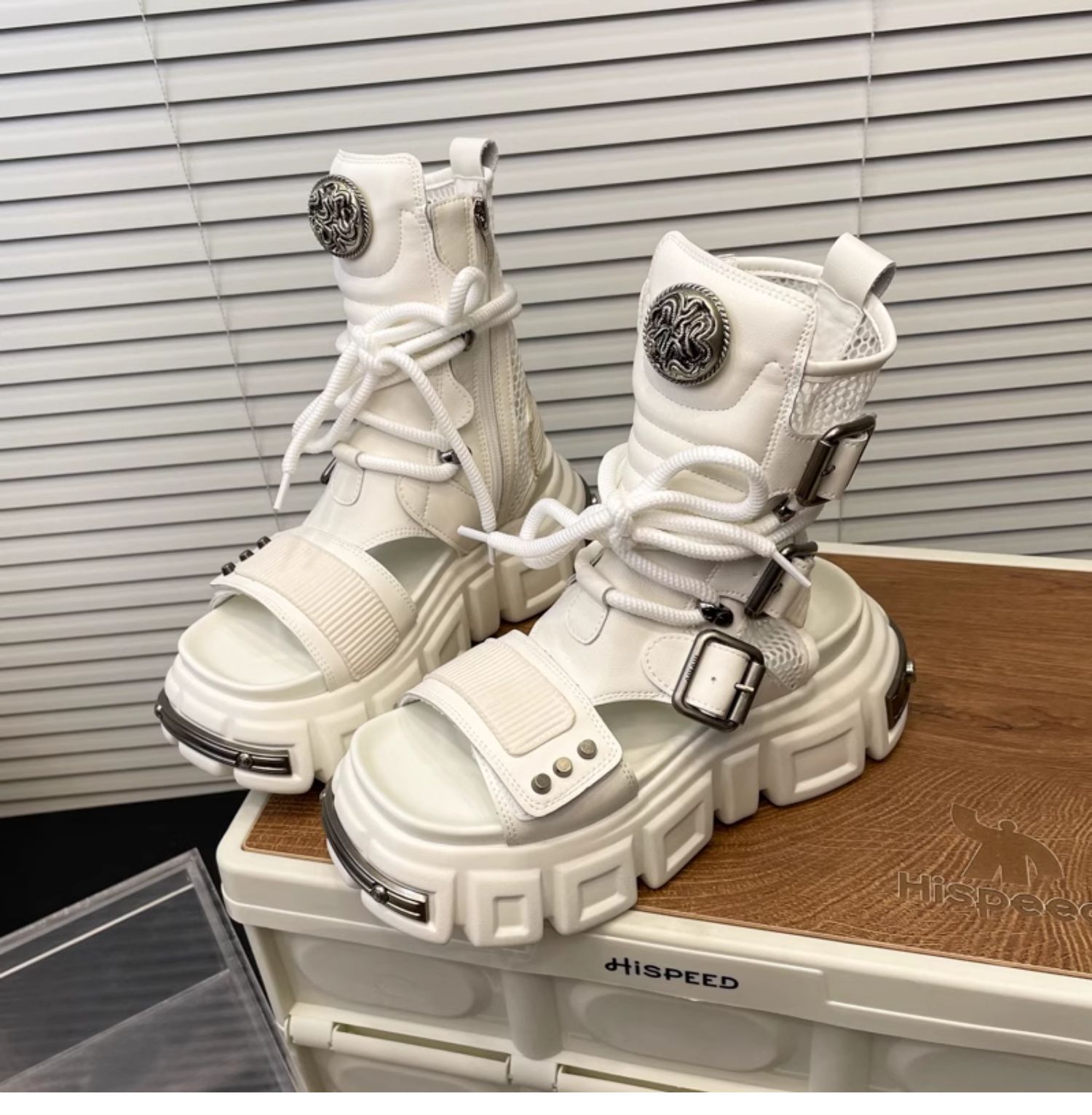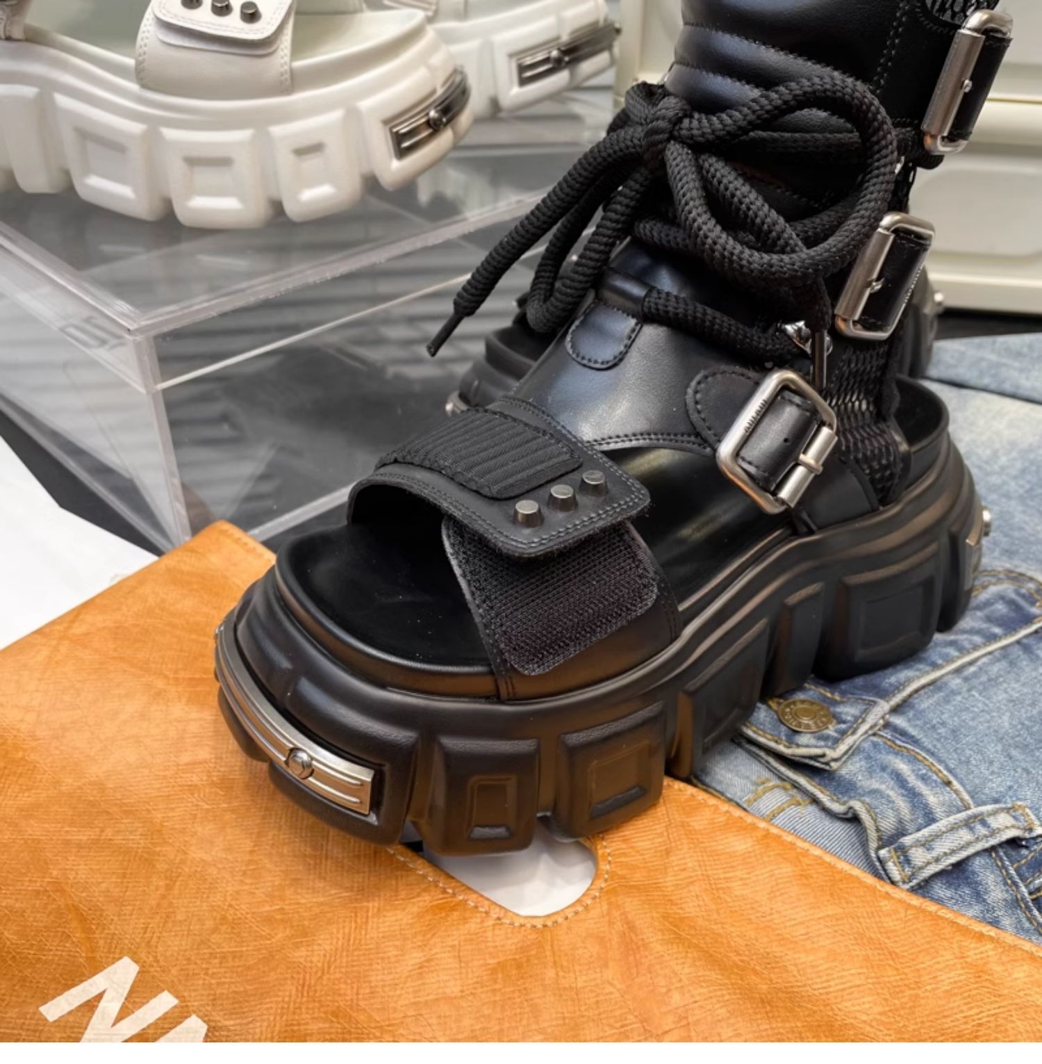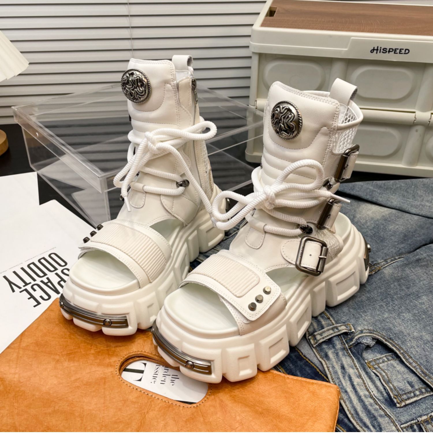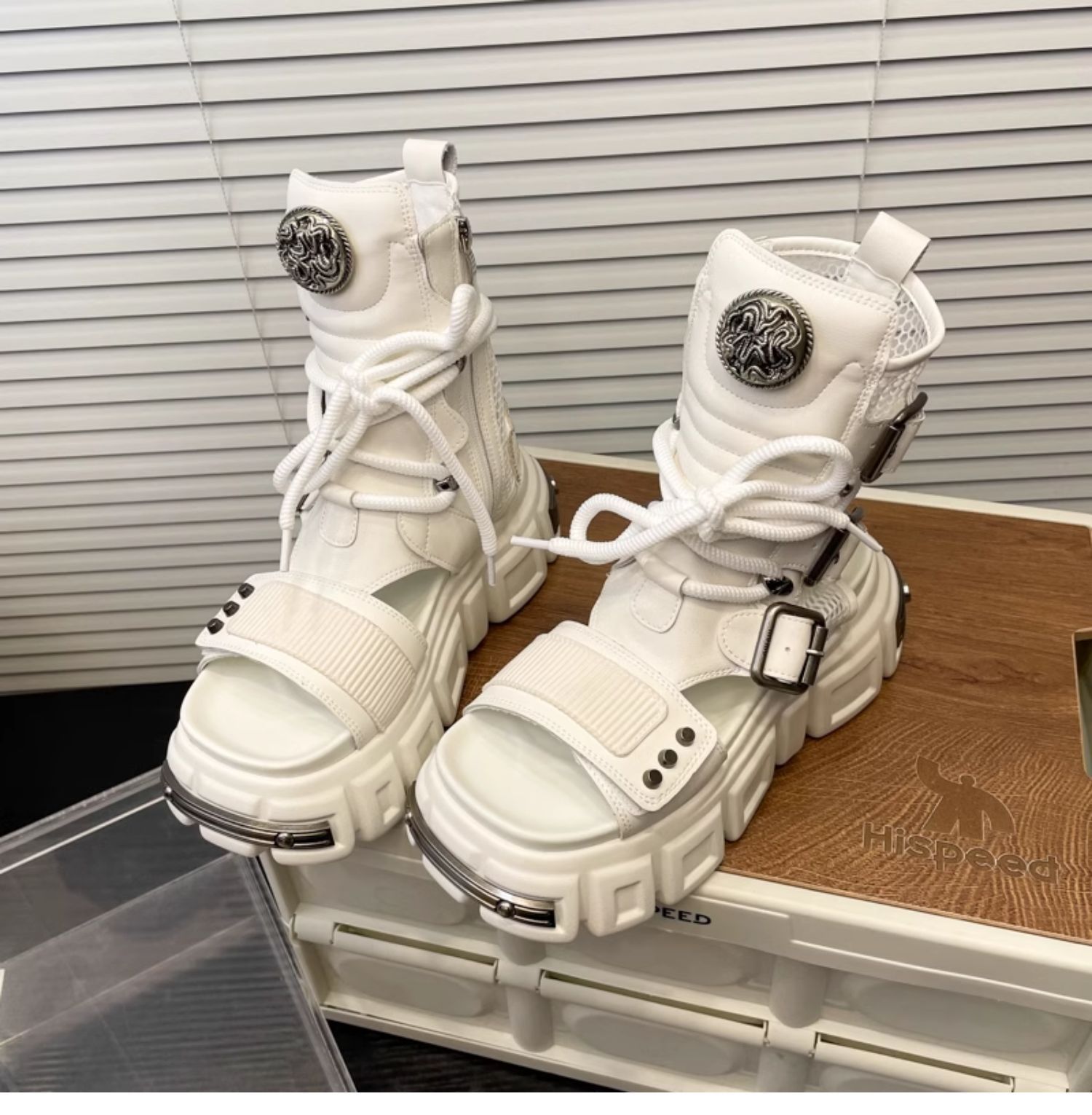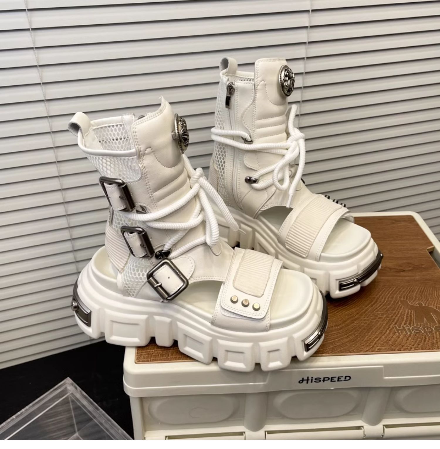 니치 탱크 여성용 다크 바이커 부츠 2026 여름 신상 슬림핏 쿨 부츠 끈 장식 두꺼운 밑창 숏부츠 마틴 부츠