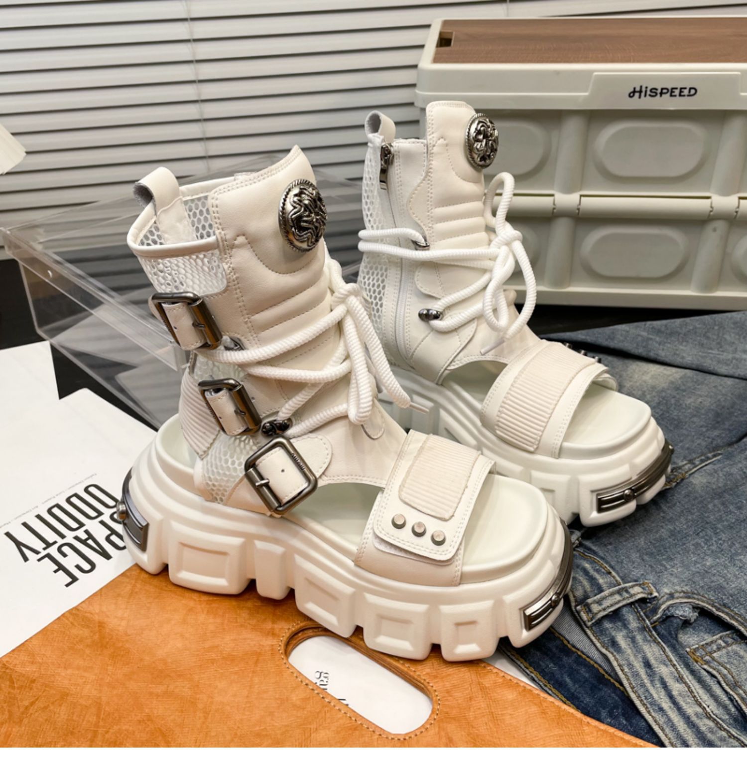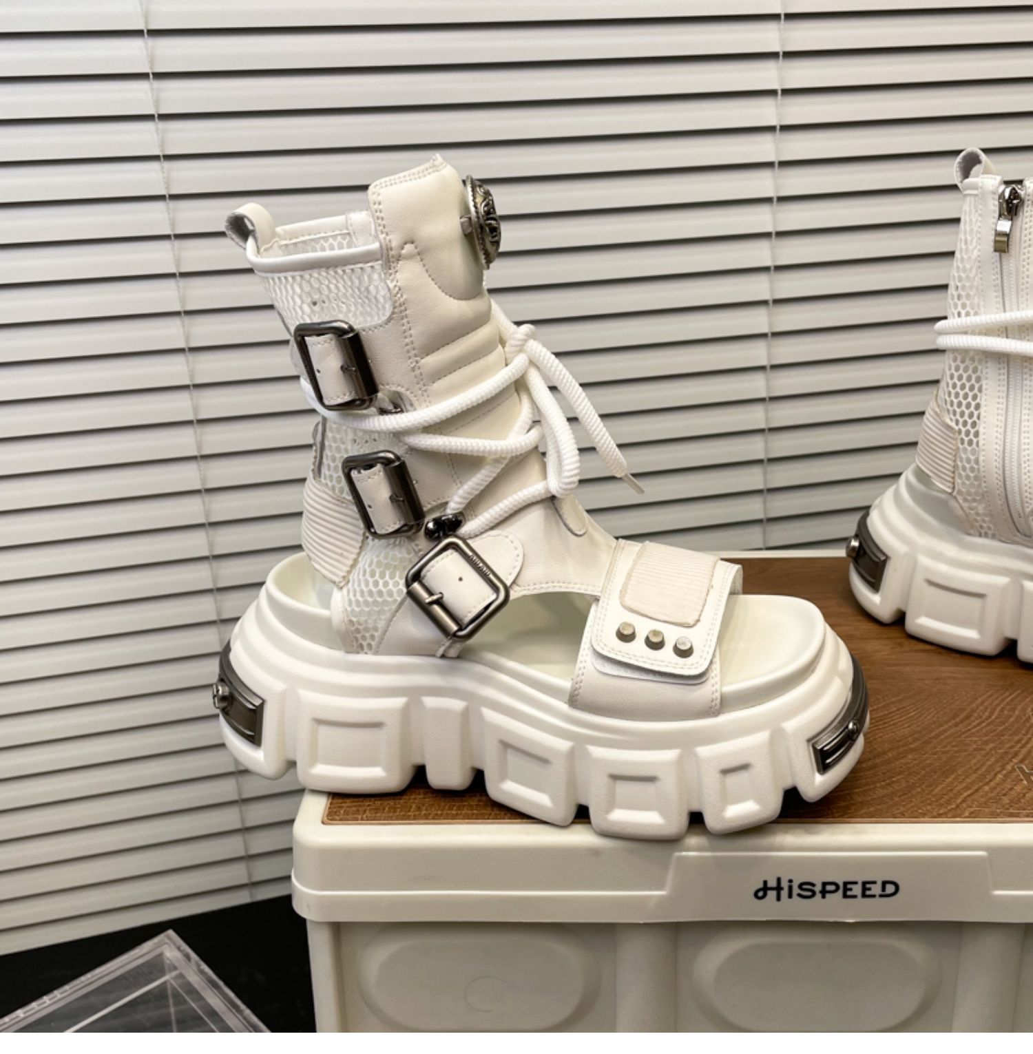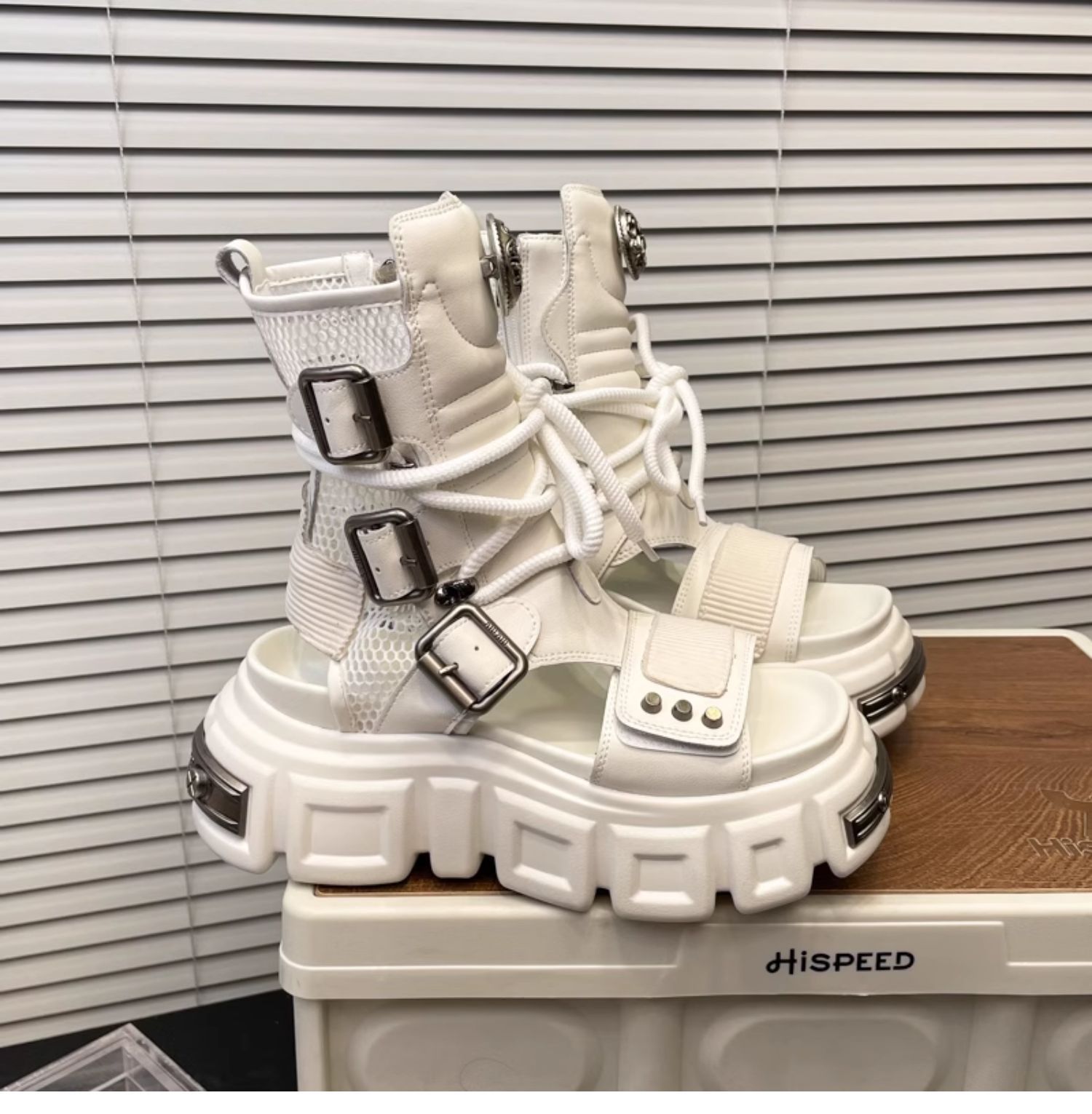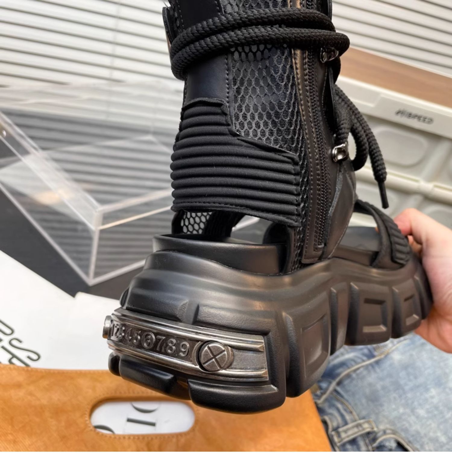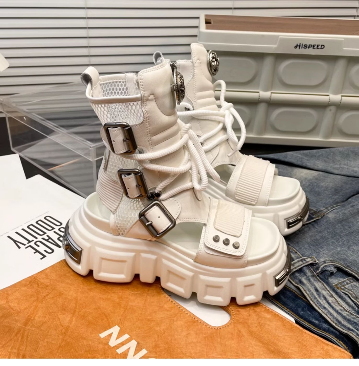 니치 탱크 여성용 다크 바이커 부츠 2026 여름 신상 슬림핏 쿨 부츠 끈 장식 두꺼운 밑창 숏부츠 마틴 부츠