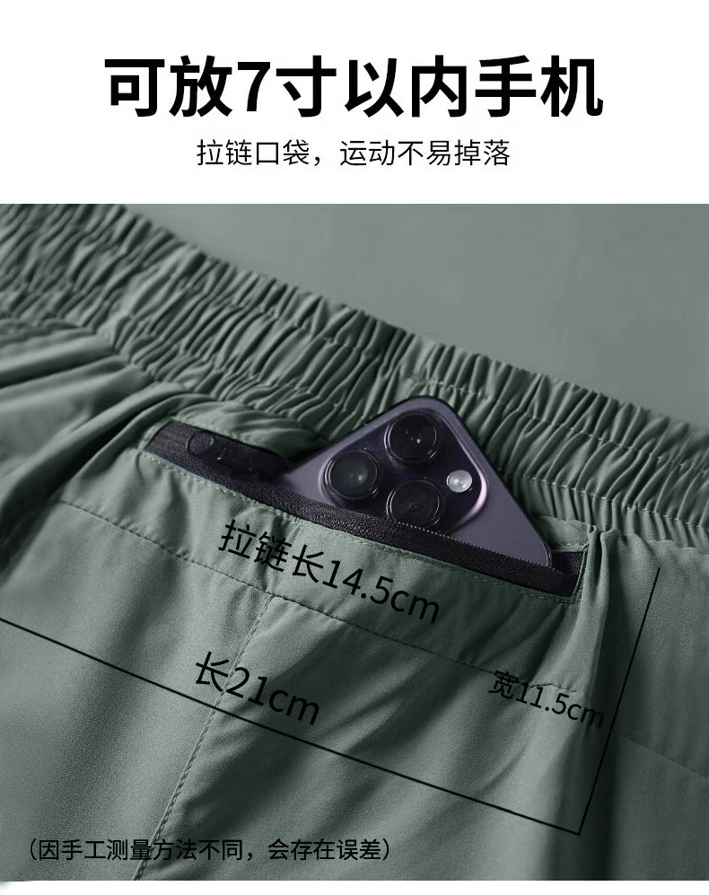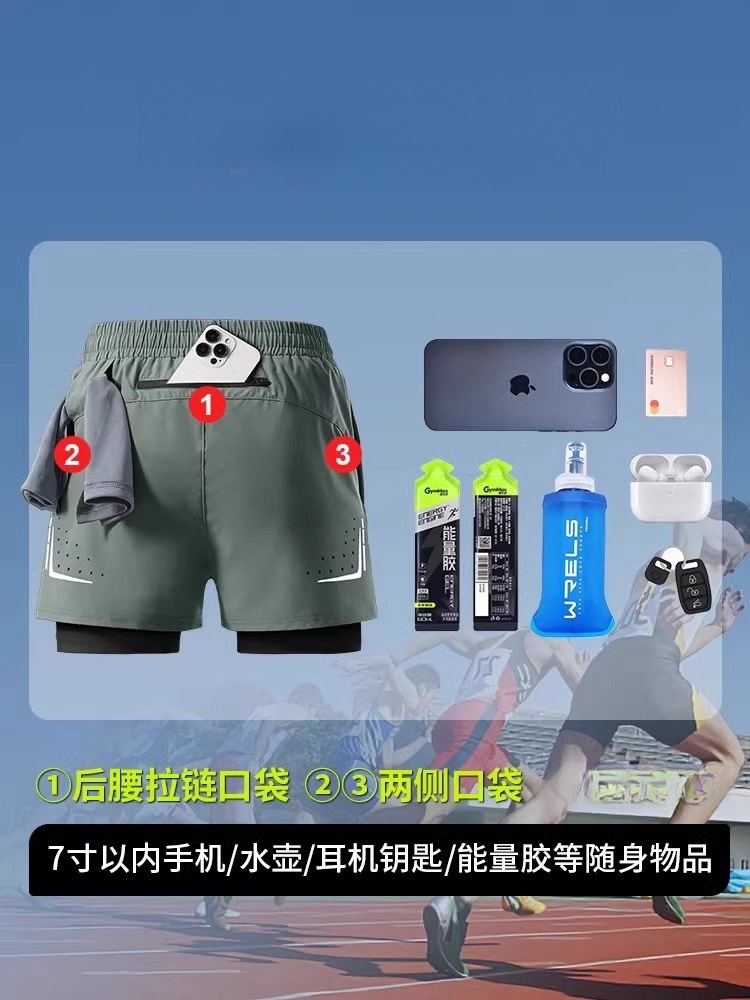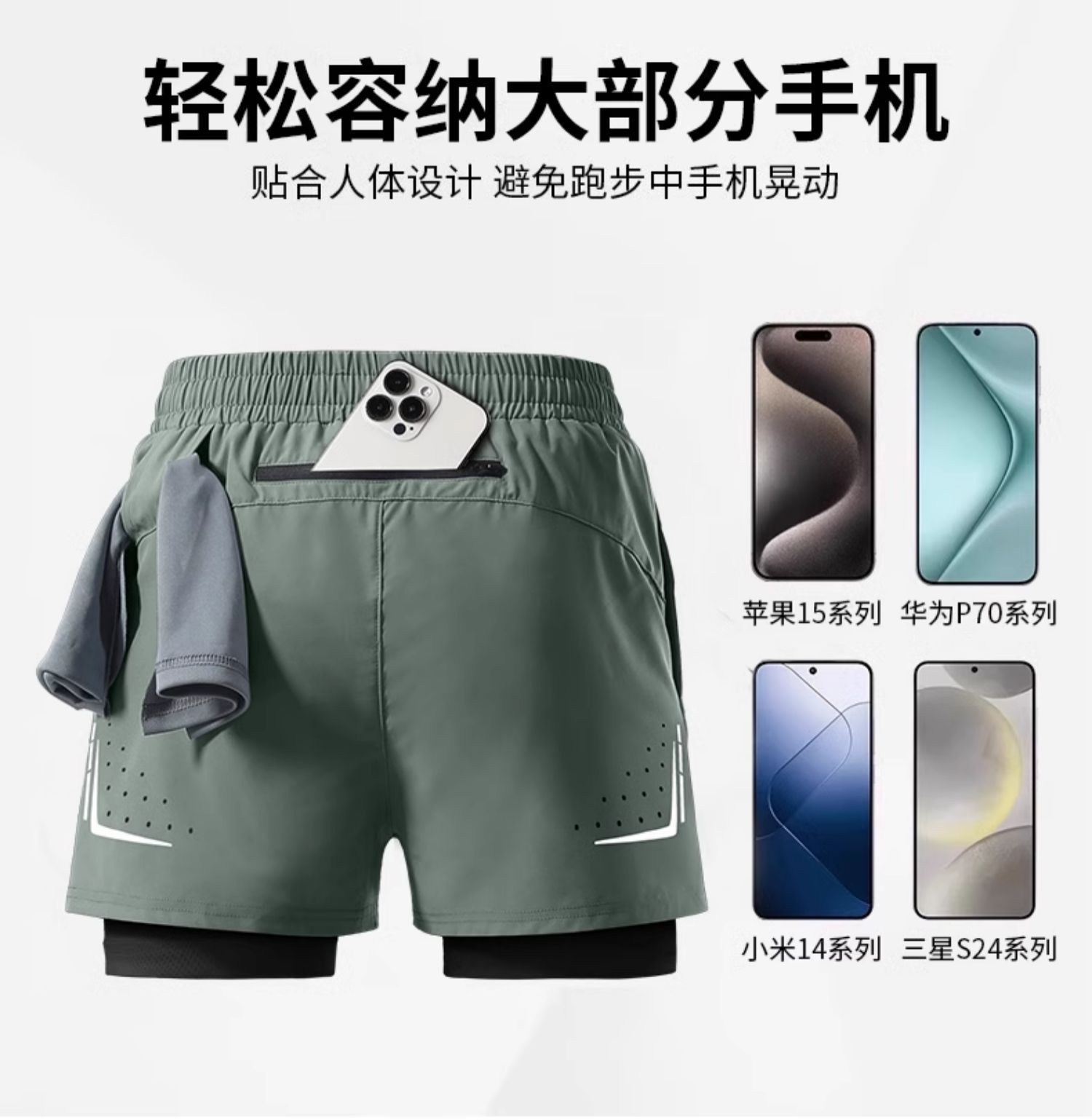 남성용 스포츠 반바지 특별 휴대 전화 여름 새로운 전문 교육 빠른 건조 트리플 바지 바지