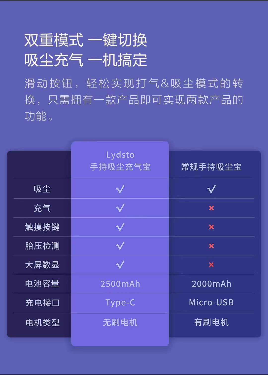 Lydsto 휴대용 진공 풍선 보물 무선 전기 타이어 공기 펌프 휴대용 자동차 이중 목적 진공 청소기 정품