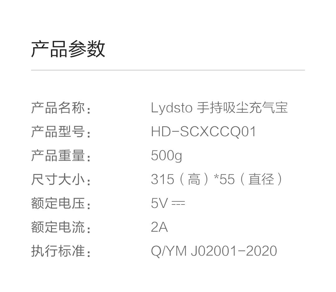 Lydsto 휴대용 진공 청소기 자동차 비상 전원 공급 장치