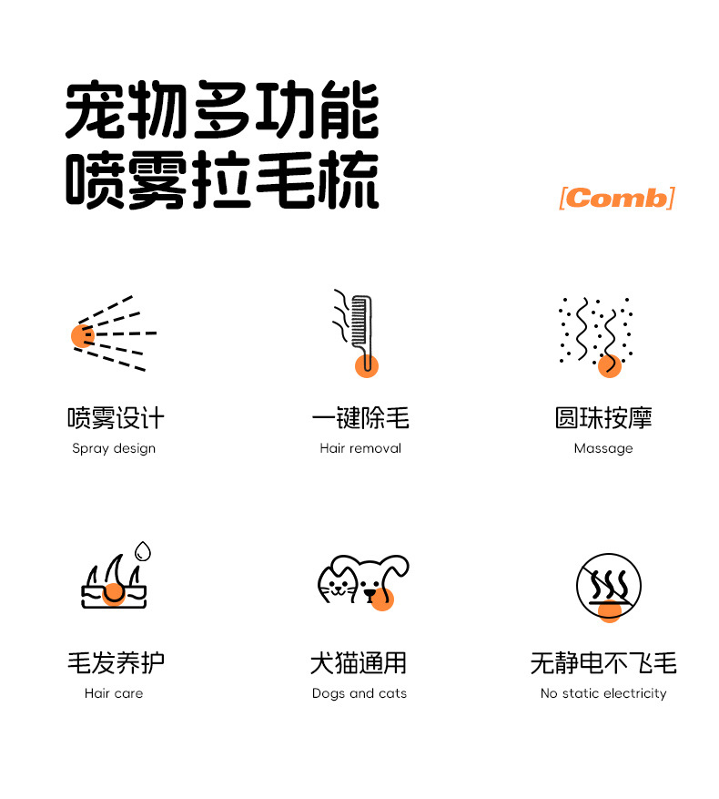 애완동물 빗, 바늘빗, 긴 손잡이 마사지 빗, 벼룩 빗, 강아지 고양이 털 제거용 빗, 고양이 털 정돈용 빗
