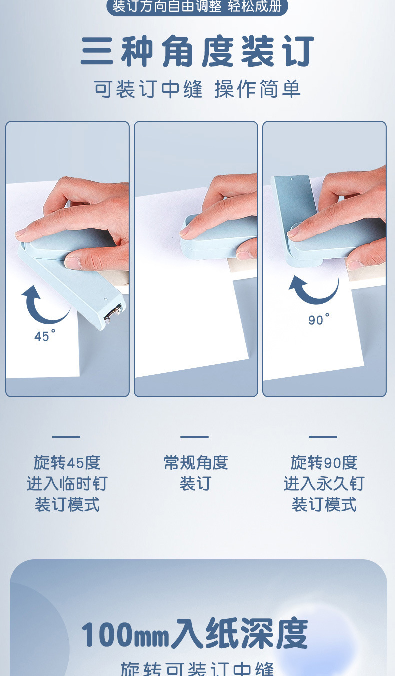 고급스러운 디자인의 회전식 스테이플러, 학생 학습용 문구, 사무실 및 가정용, 노동력 절약형 다기능 스테이플러