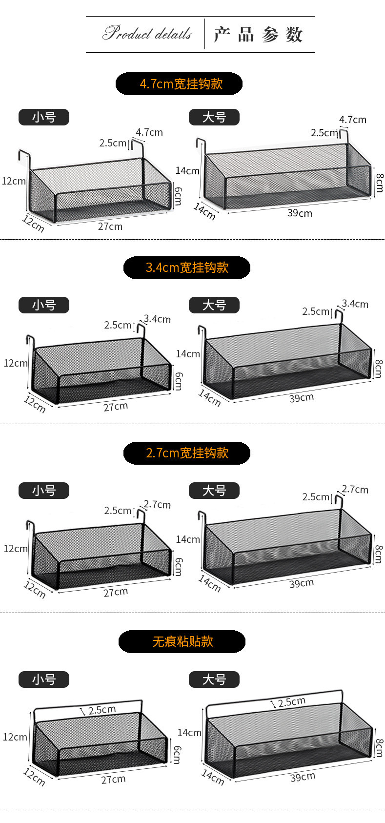 더블 레이어 직사각형 검정색 2.7cm 후크