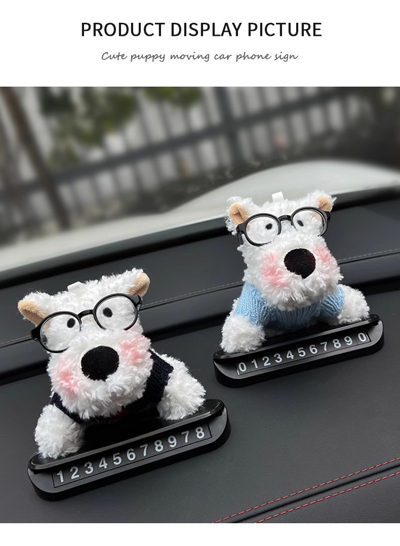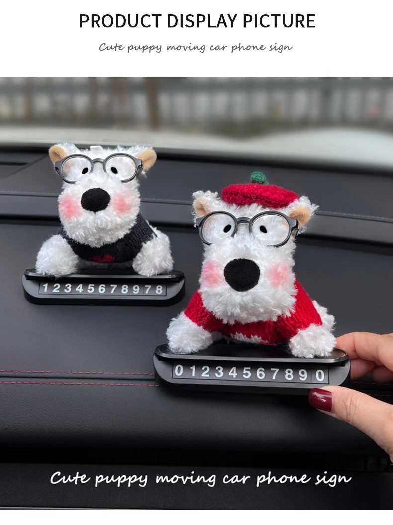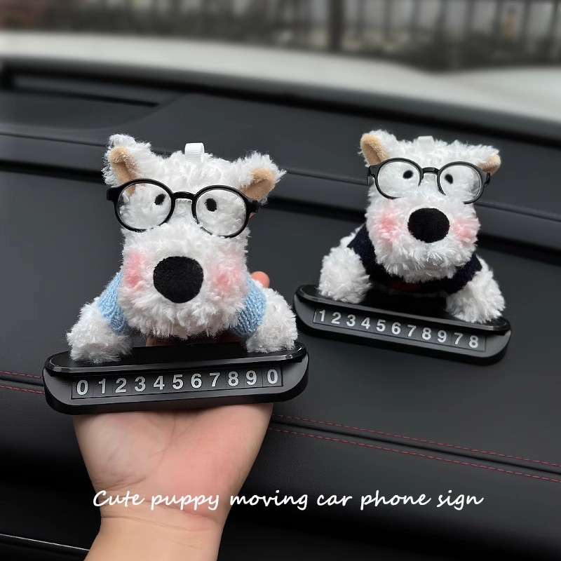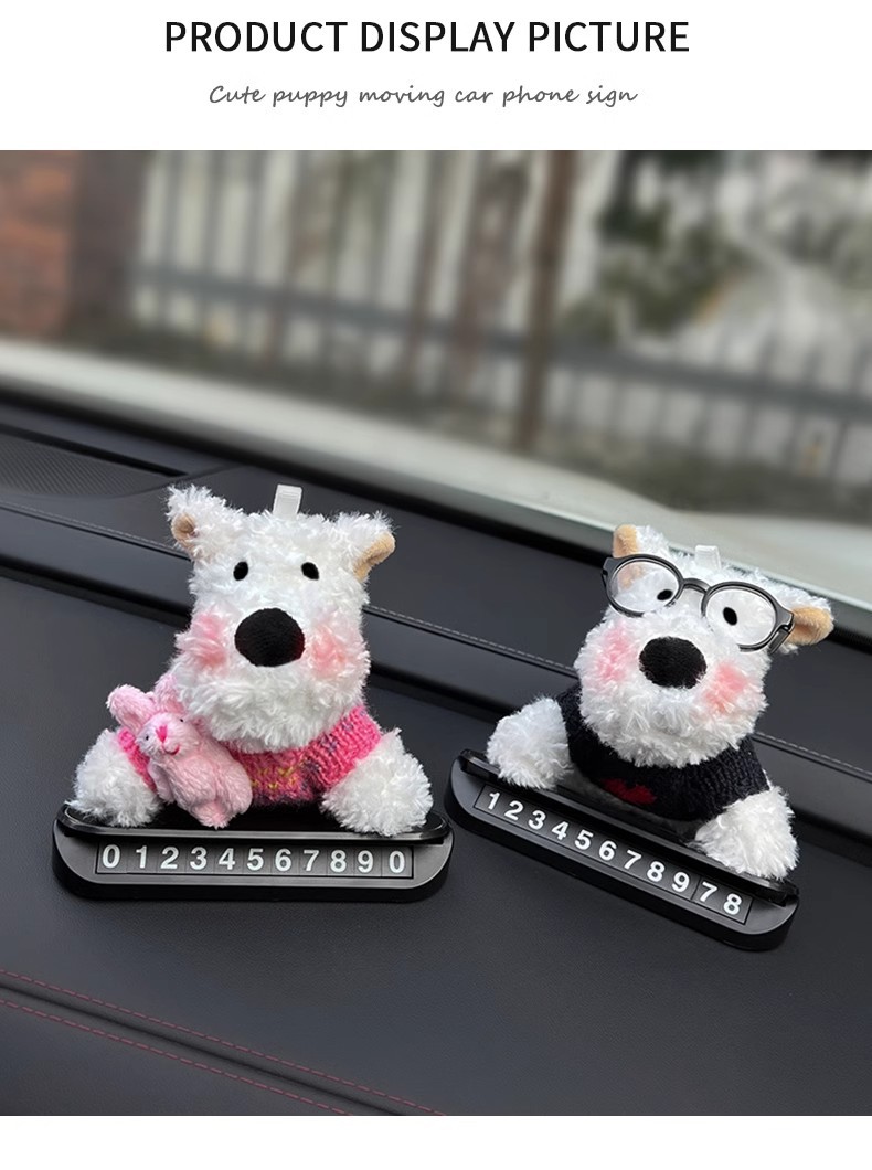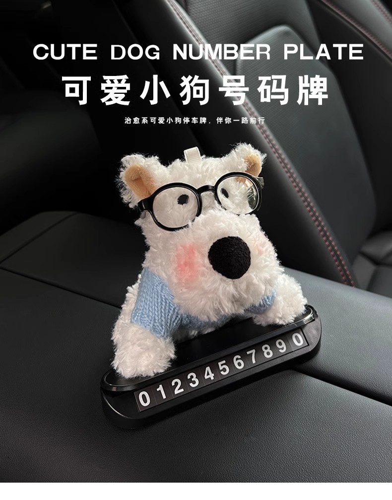 자동차 임시 주차 번호 플레이트 귀여운 개 뒤틀린 개 자동차 장식 장식품 휴대 전화 플레이트 고급 감각