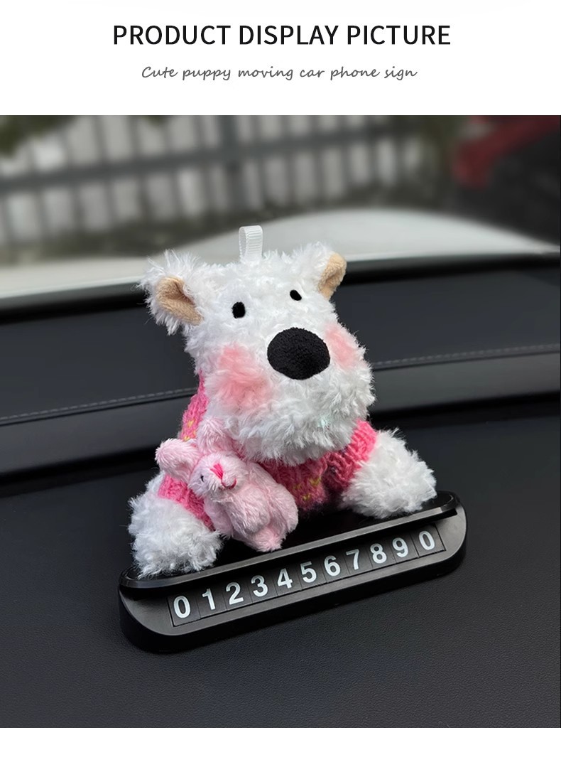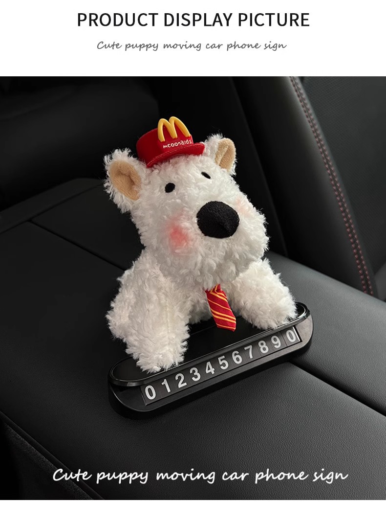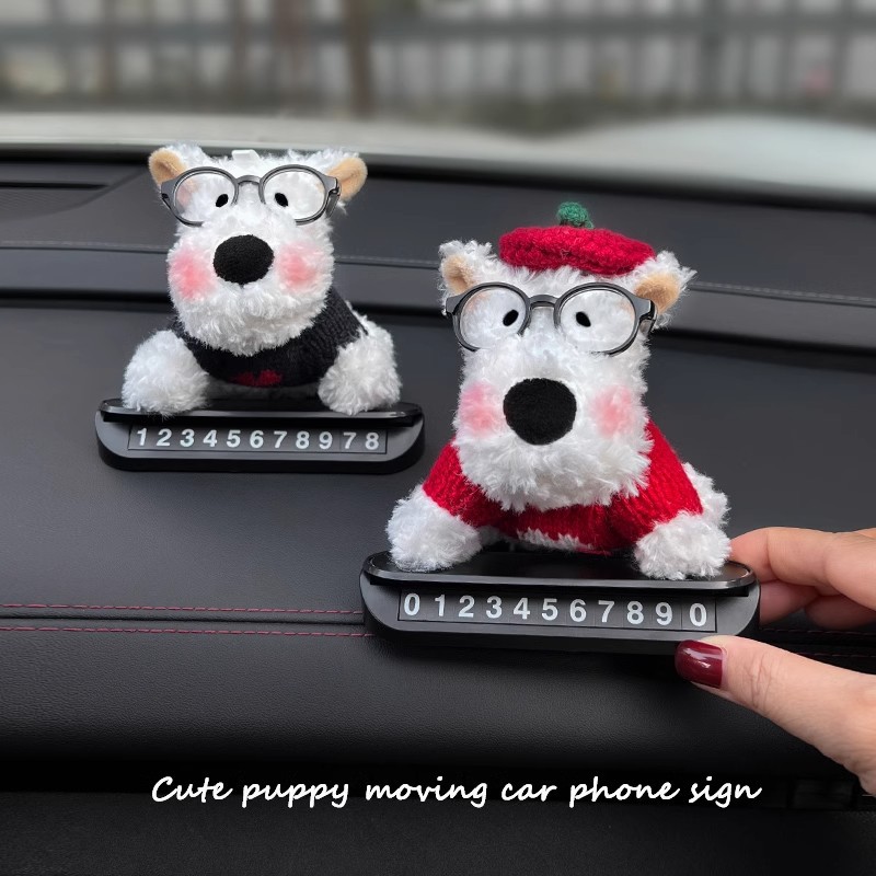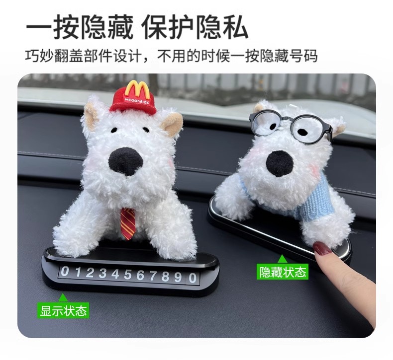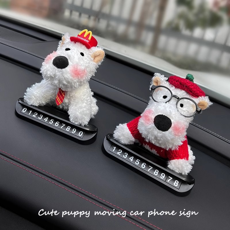 자동차 임시 주차 번호 플레이트 귀여운 개 뒤틀린 개 자동차 장식 장식품 휴대 전화 플레이트 고급 감각