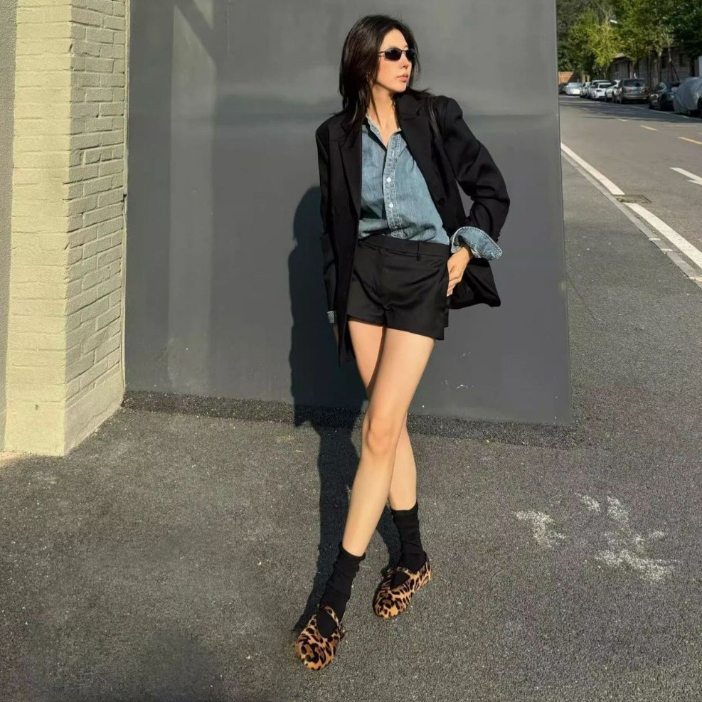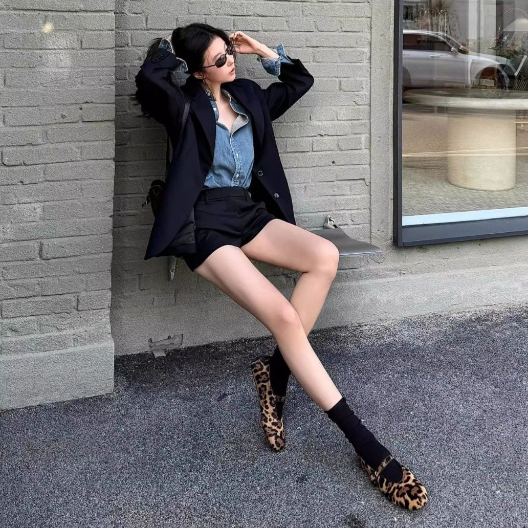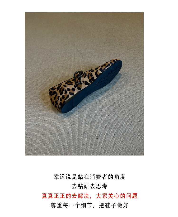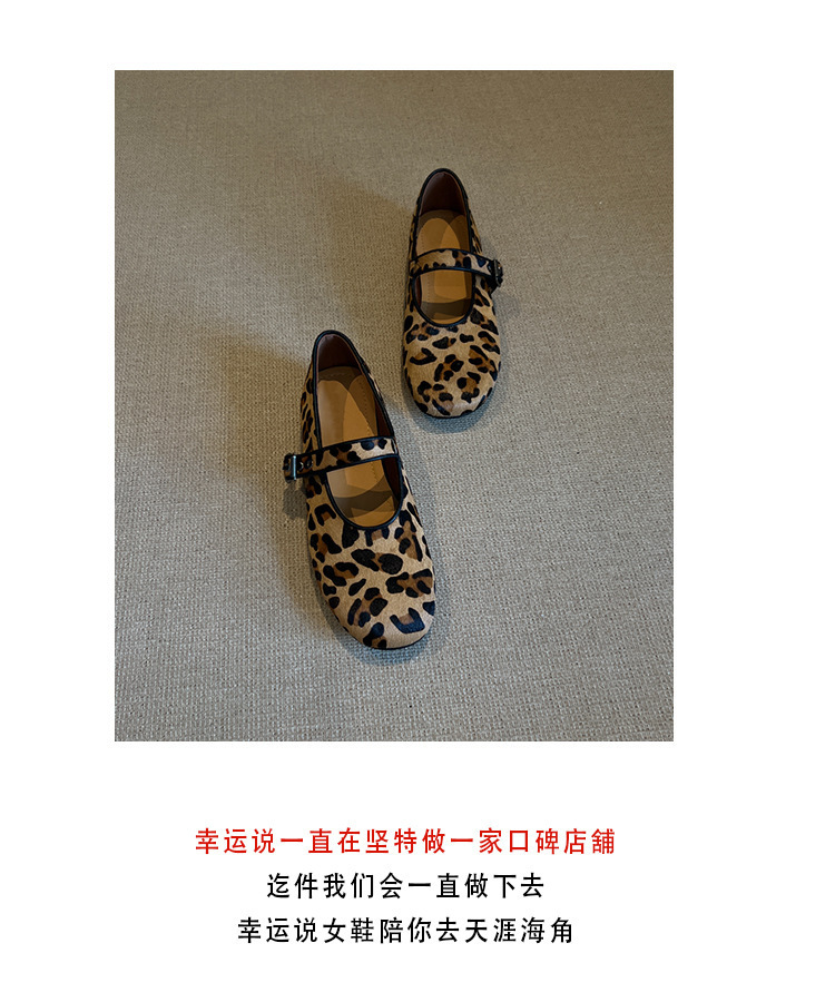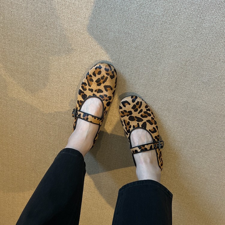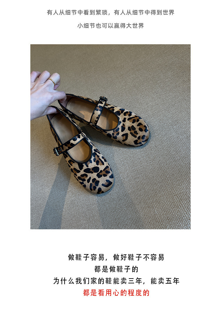 양가죽 판 ~ 2025 새로운 틈새 레오파드 무늬 말 머리 신발 얕은 입 여성용 플랫 메리 제인 여성 신발