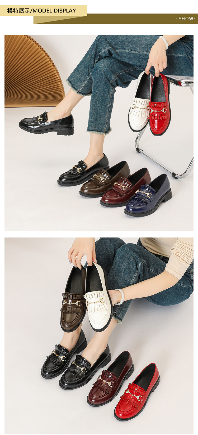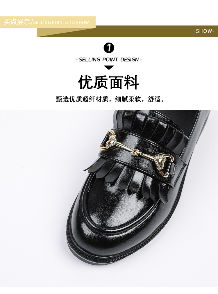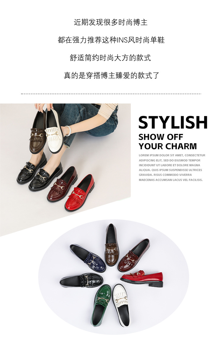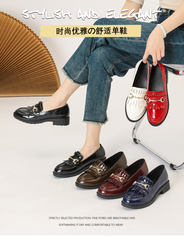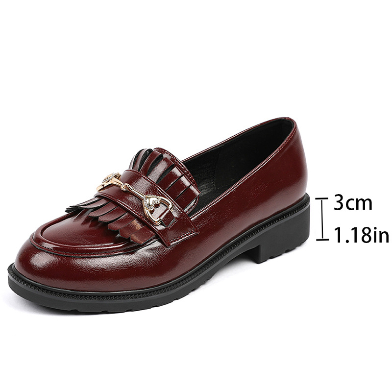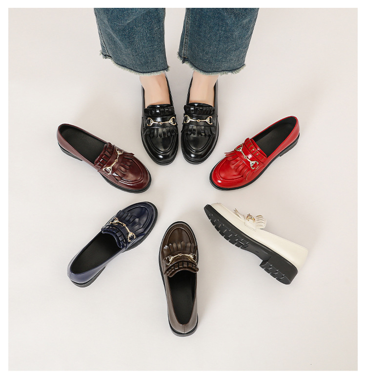 레트로 페이턴트 가죽 프린지 메탈 버클 플랫 슈즈 영국 스타일 슬립온 로퍼 여성용 로우힐
