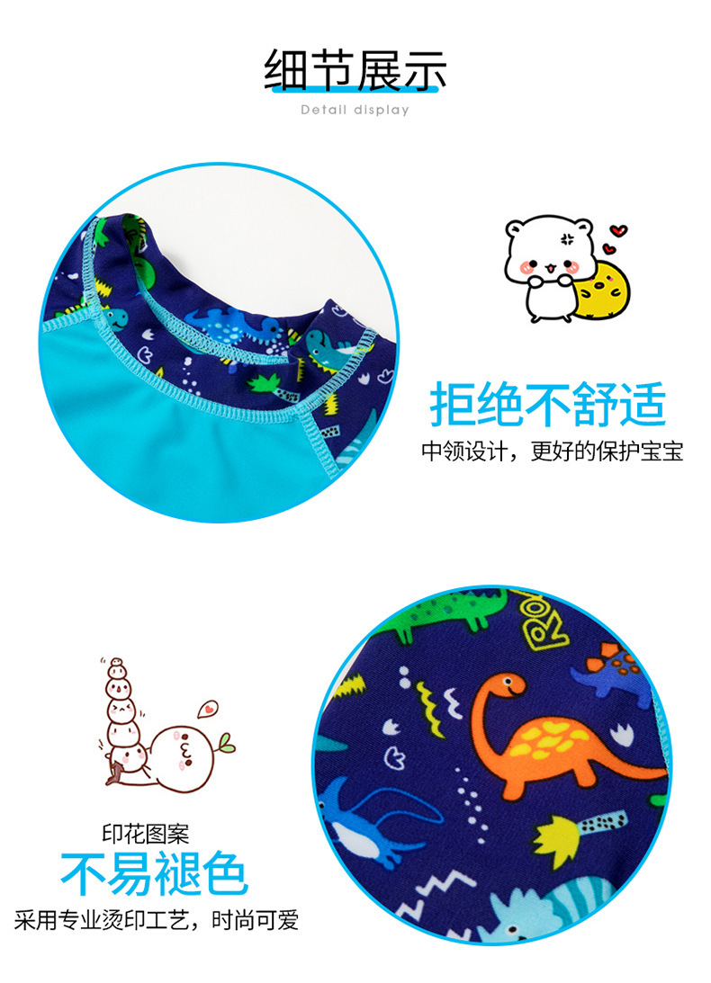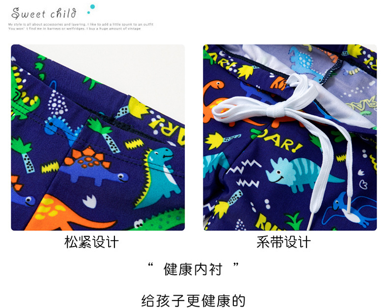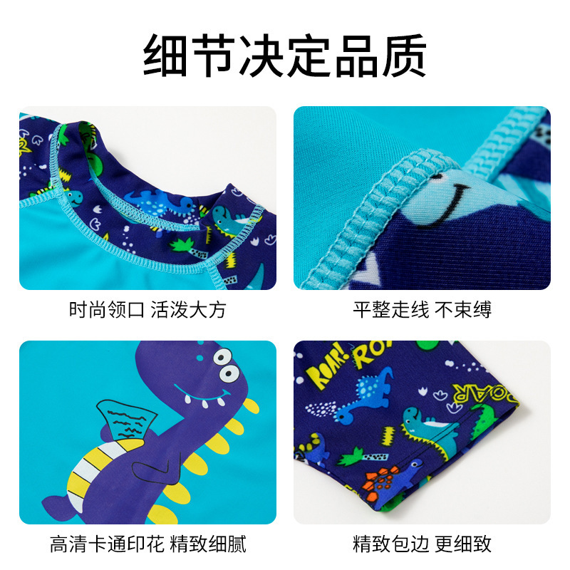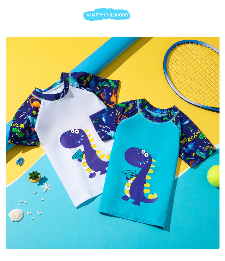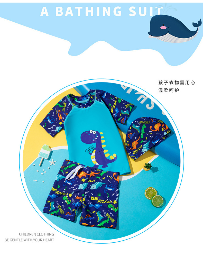 만화 공룡 어린이 수영복 분할 중간 큰 아이 십대 소년 수영 세트 여름 수영 트렁크 수영 모자 수영복 세트