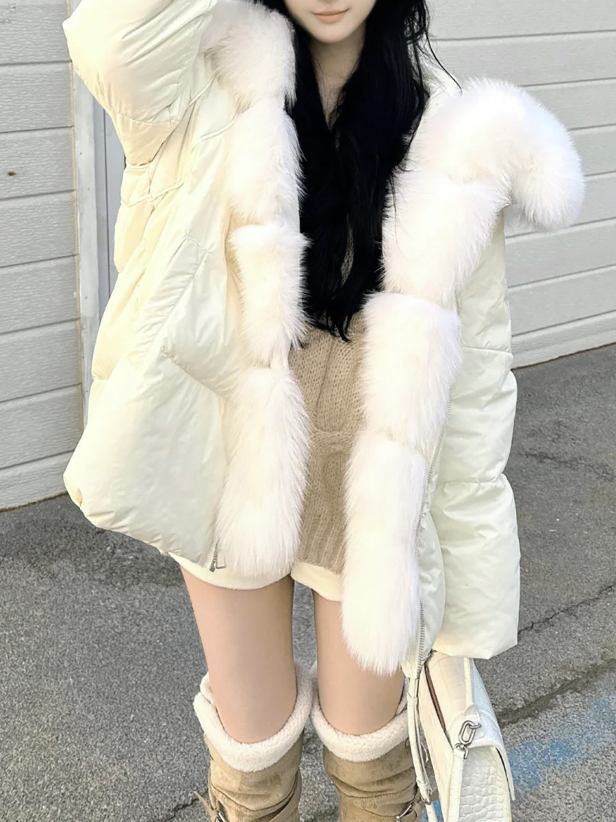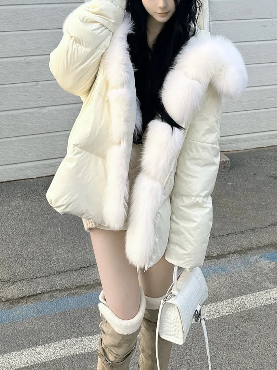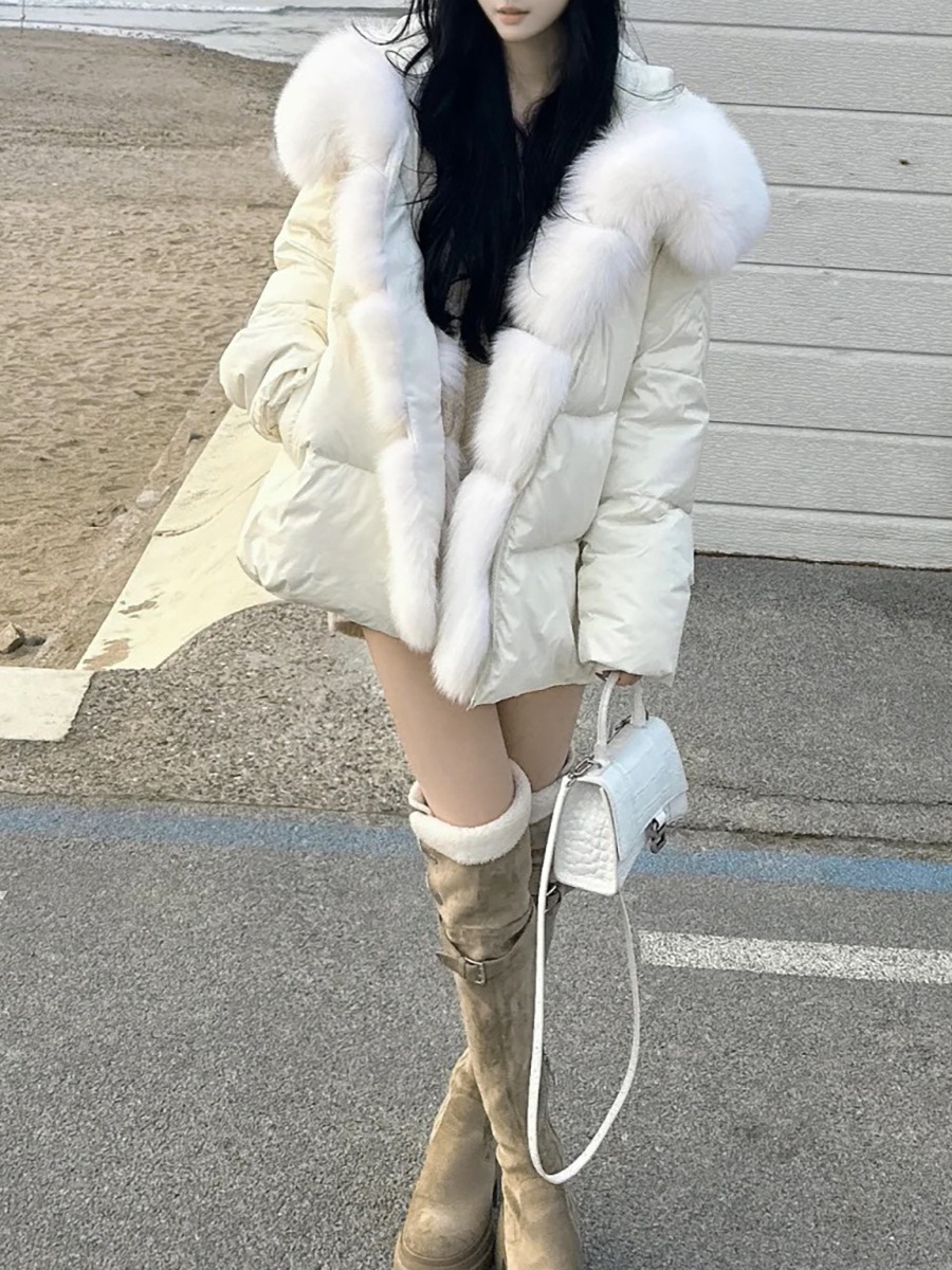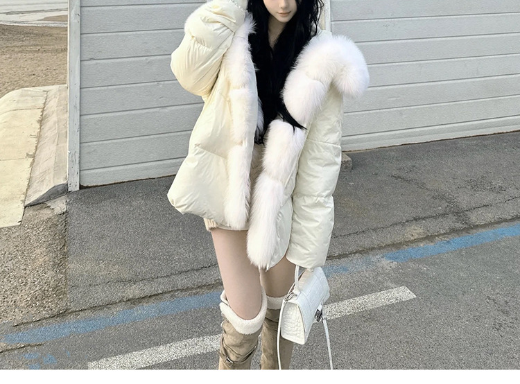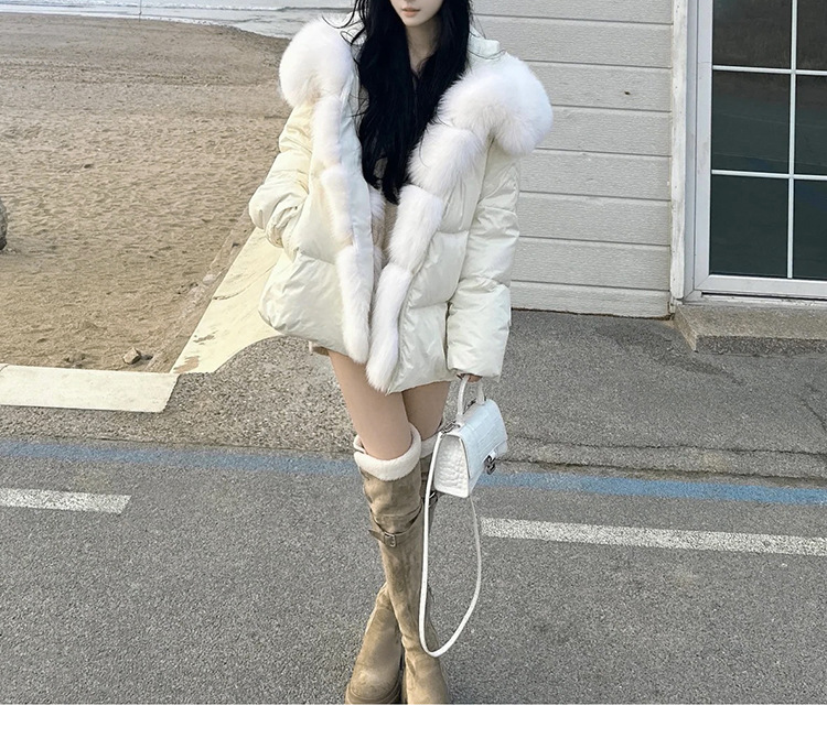 겨울 신작 여우 모피 대형 모피 칼라 90 다운 다운 재킷 따뜻하고 세련된 여성용 다용도 재킷