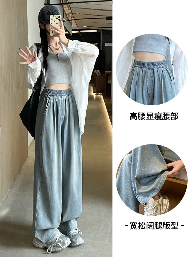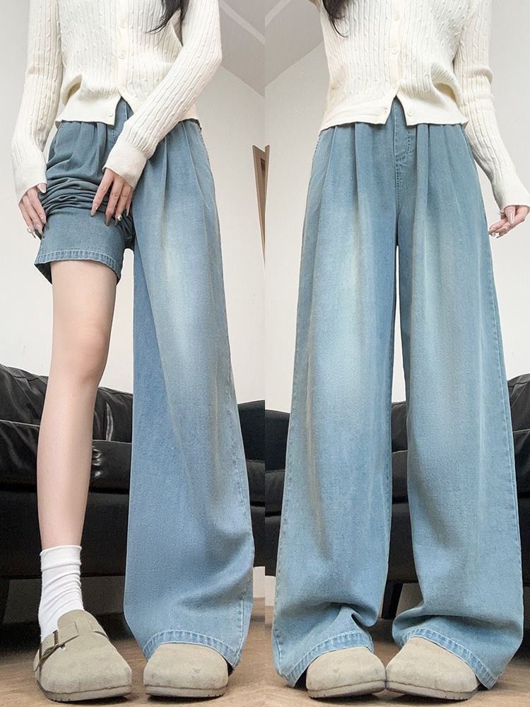 블루 텐셀 여성 청바지 2026 신상 가을 겨울 키 작은 분들을 위한 하이웨이스트 루즈핏 스트레이트 와이드 레그 슬림핏
