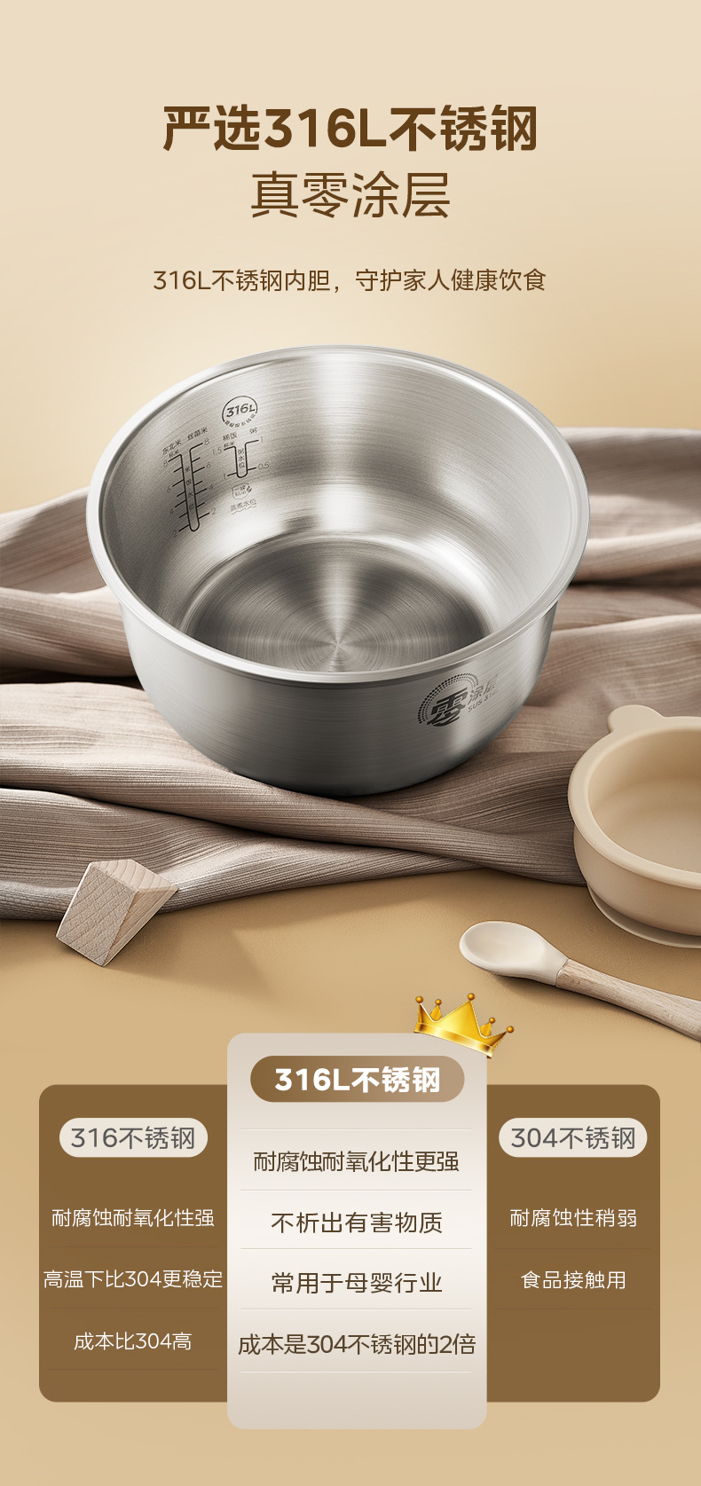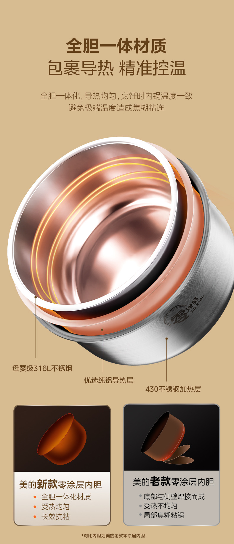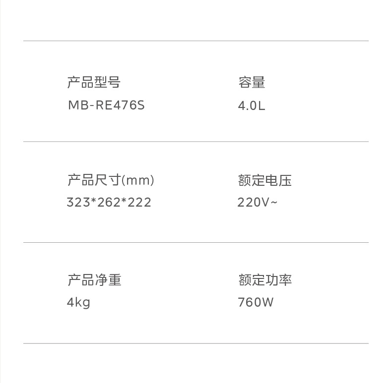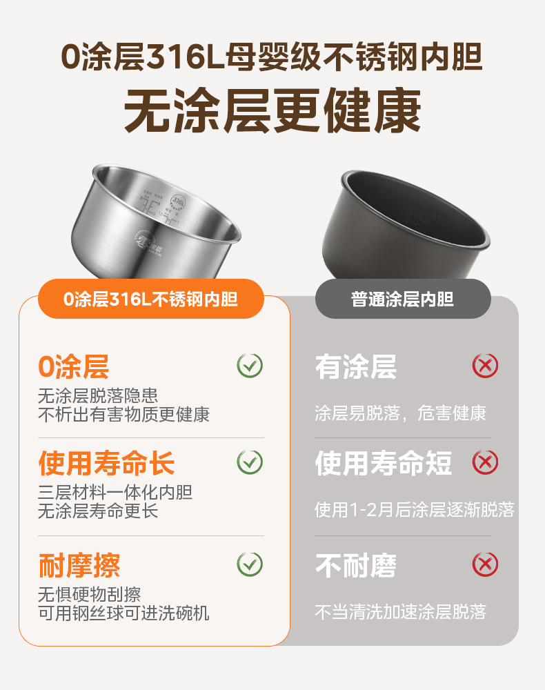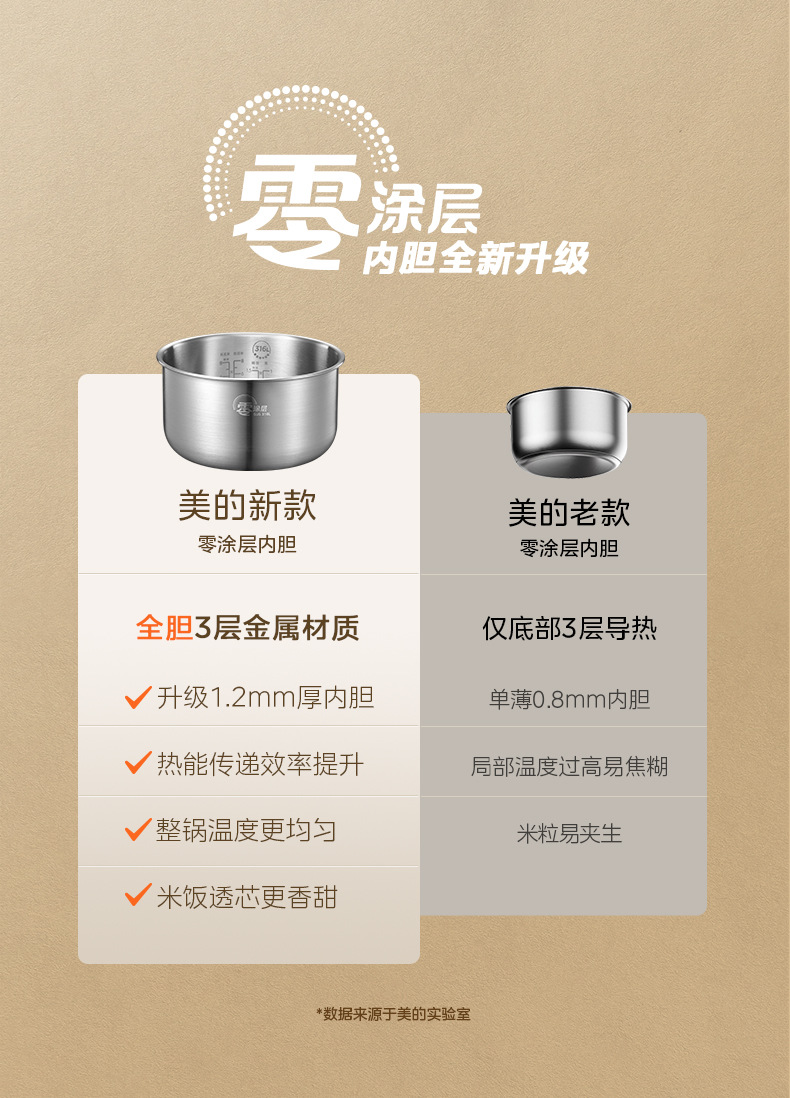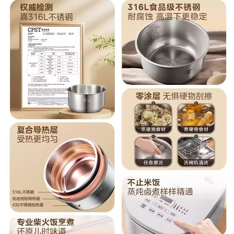 Midea/Midea MB-RE476S 달콤한 장작 밥솥 4L 제로 코팅 316L 스테인레스 스틸 라이너