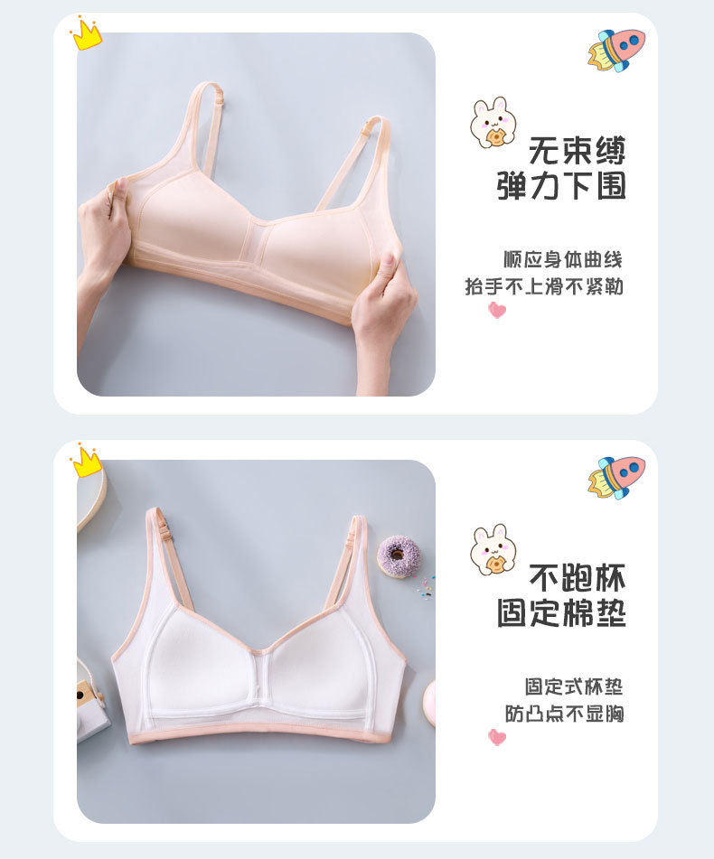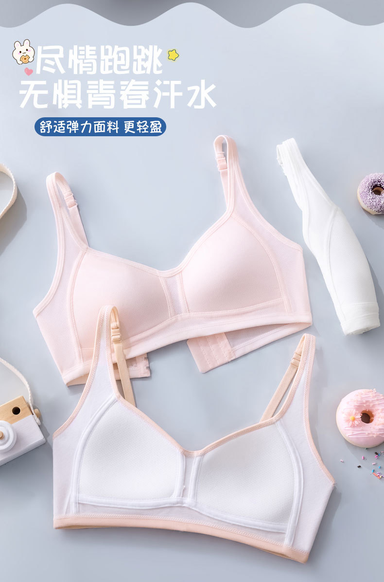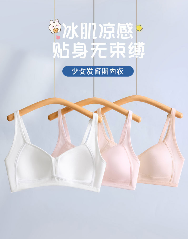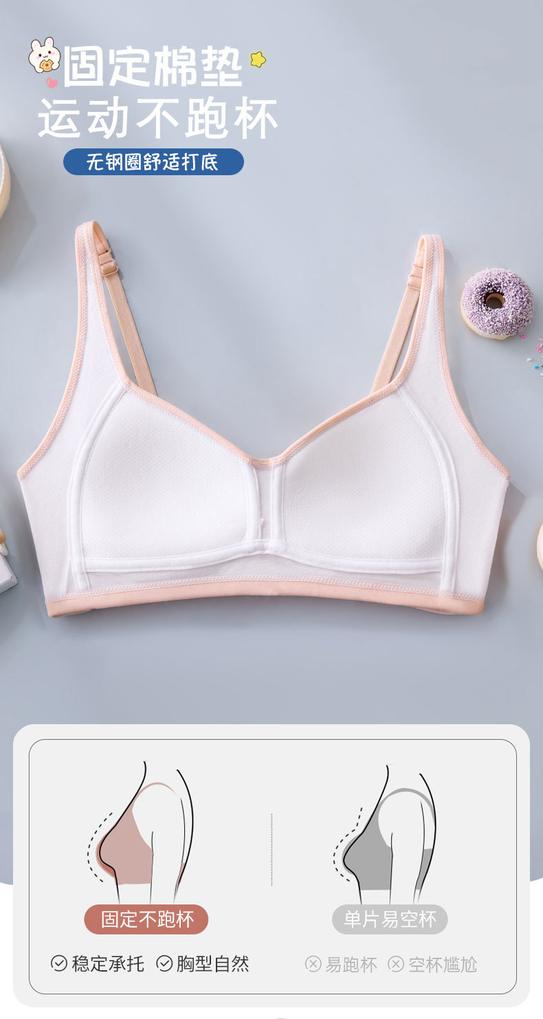 여자 브라 아이스 실크 자카드 통기성 홀 슬링 튜브 탑, 중학생 및 고등학생을위한 고정 가슴 패드 조끼 속옷