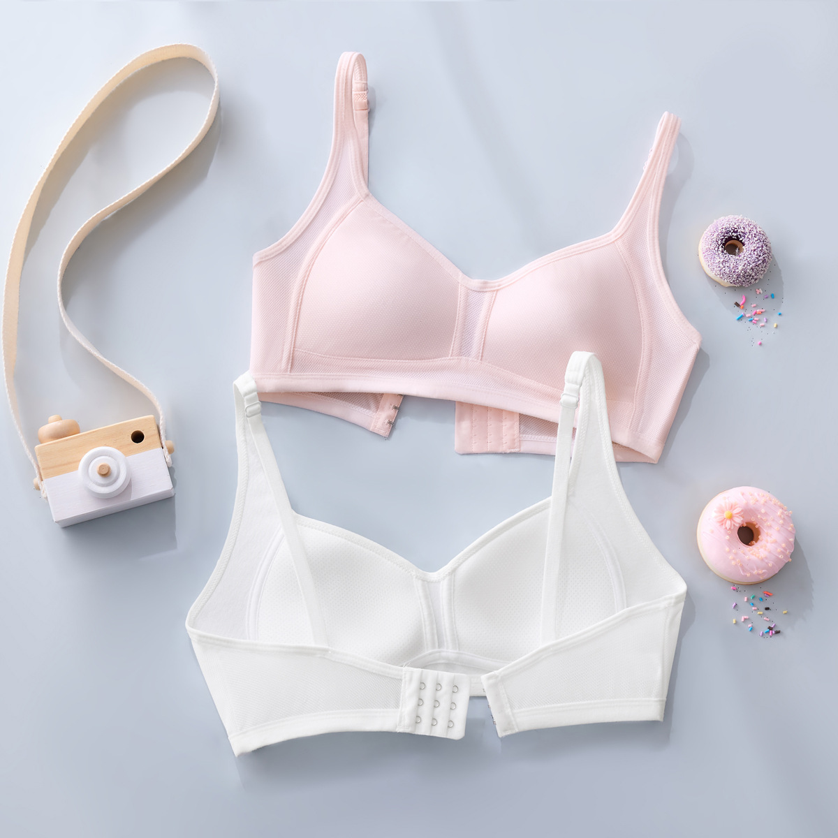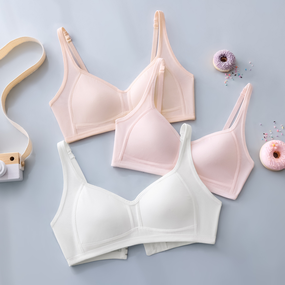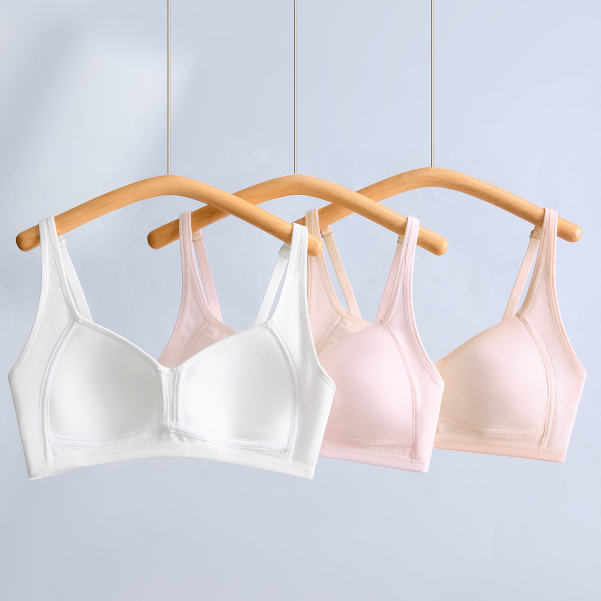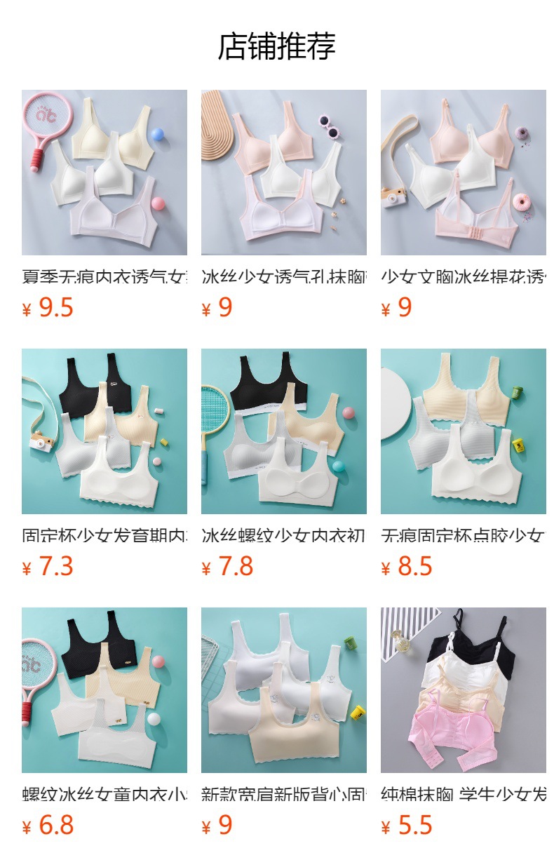 여자 브라 아이스 실크 자카드 통기성 홀 슬링 튜브 탑, 중학생 및 고등학생을위한 고정 가슴 패드 조끼 속옷