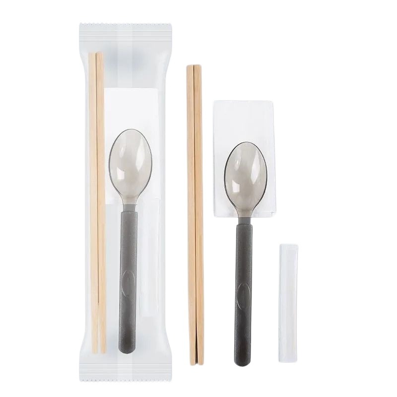 일회용 숟가락과 젓가락 4종 세트 테이크아웃 식기 위생적인 4-in-1 편리한 수제 가정용 숟가락