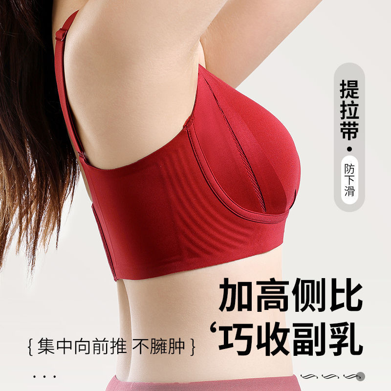 2025년 뱀의 해 빨간색 복주년 여성용 속옷 작은 가슴 푸시업 처짐 방지 사이드 컬렉션 브라(와이어 없음)