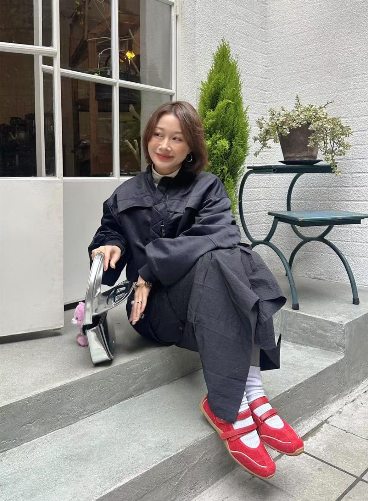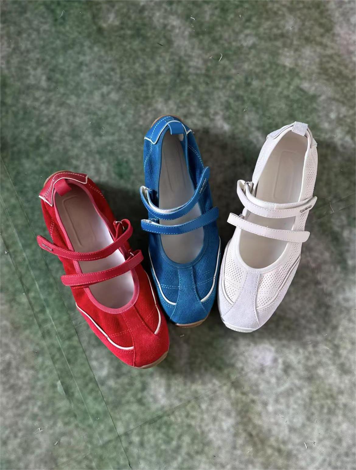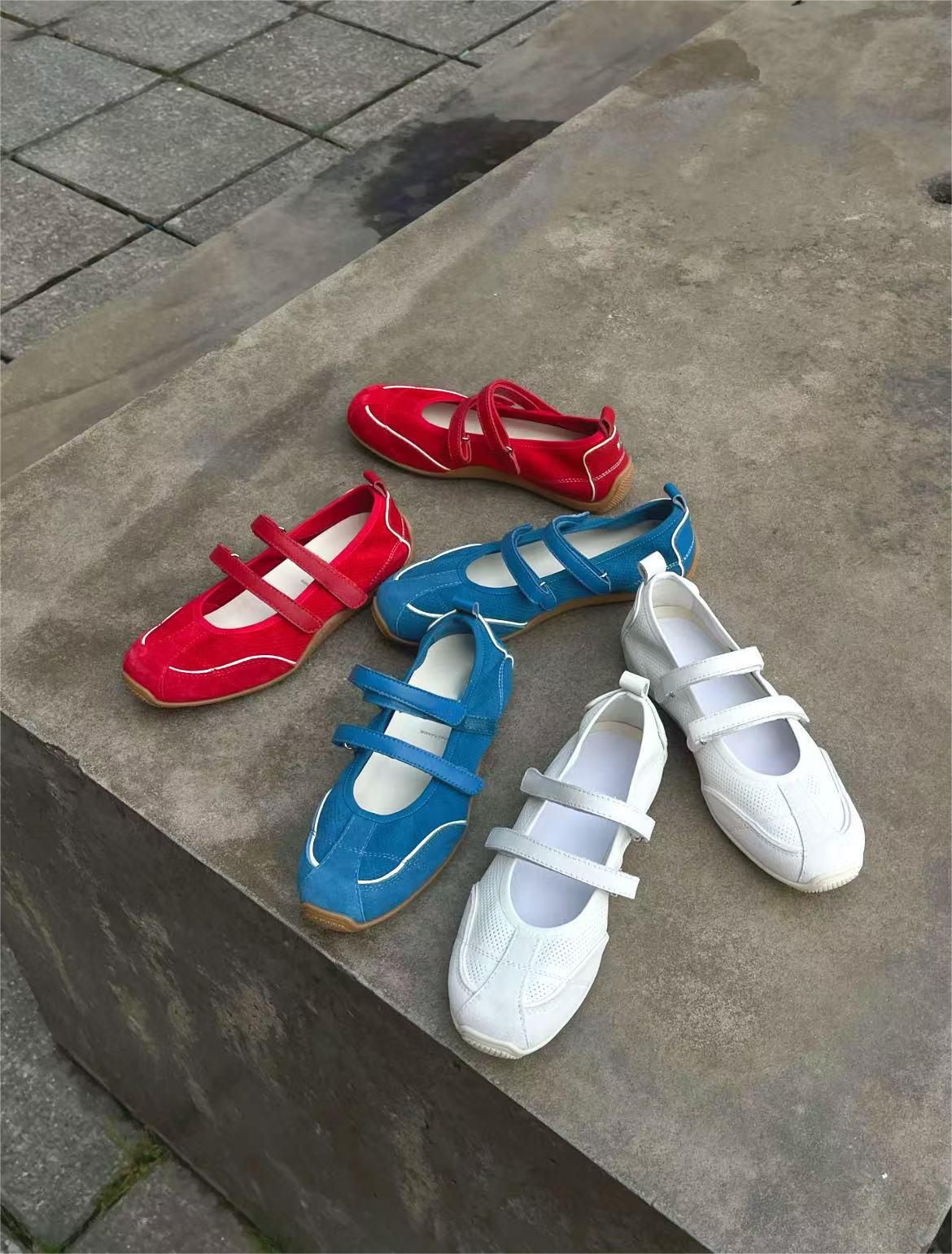 Cowhide Edition ~ 가죽 틈새 발레 스타일 훈련 신발 더블 스트립 스포츠 스타일 메리 제인 여성 신발 플랫 싱글 신발