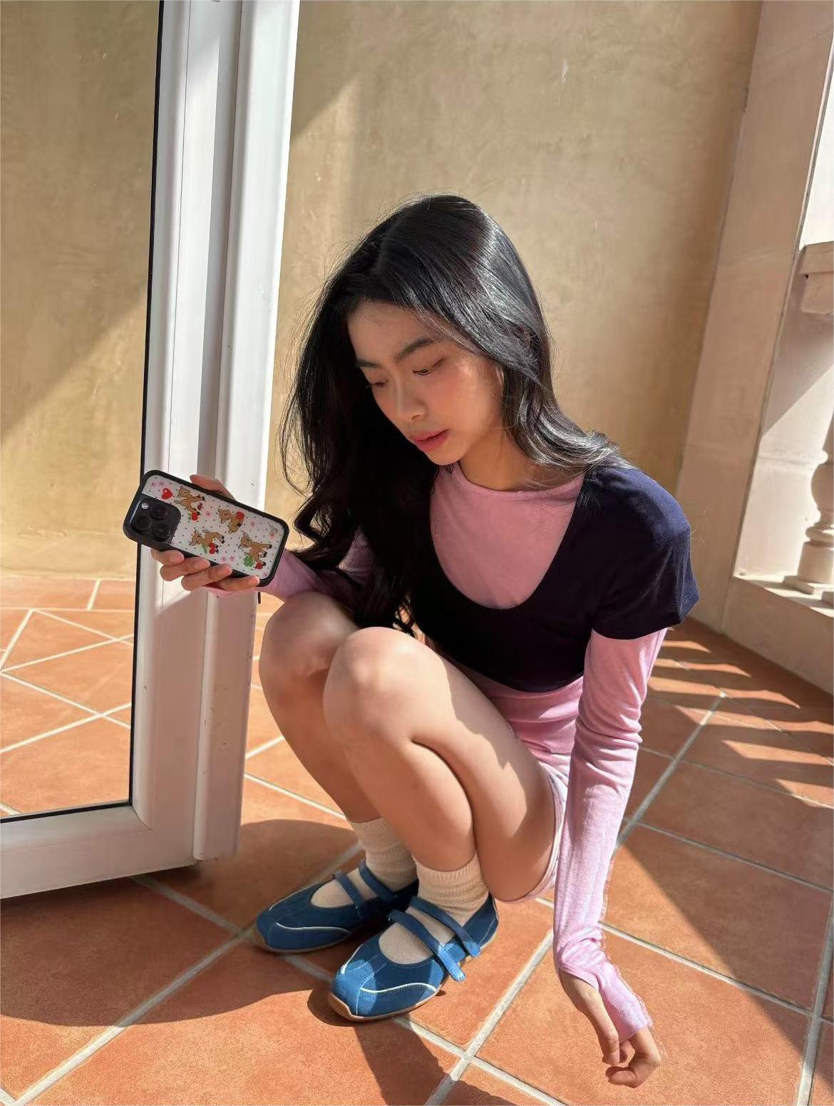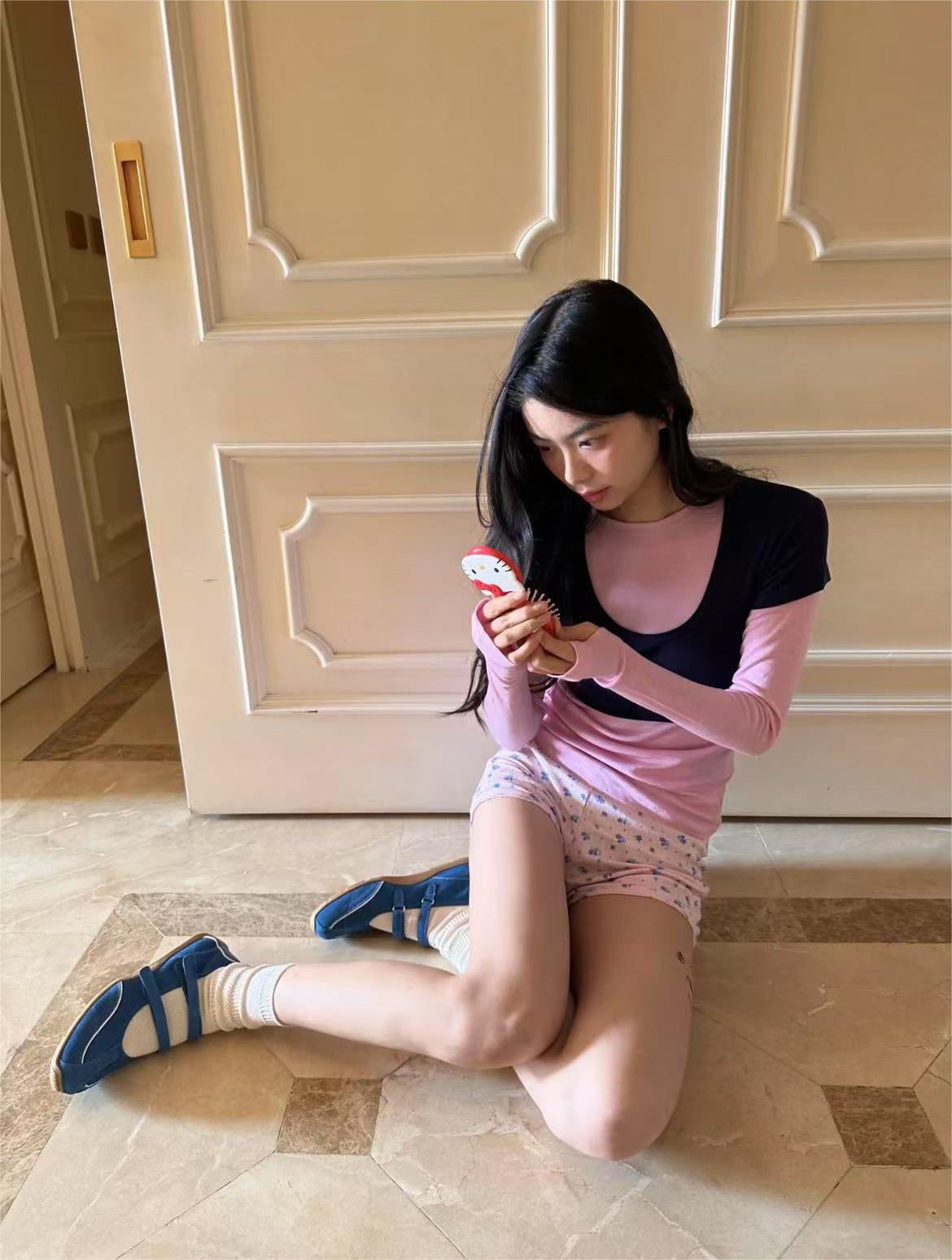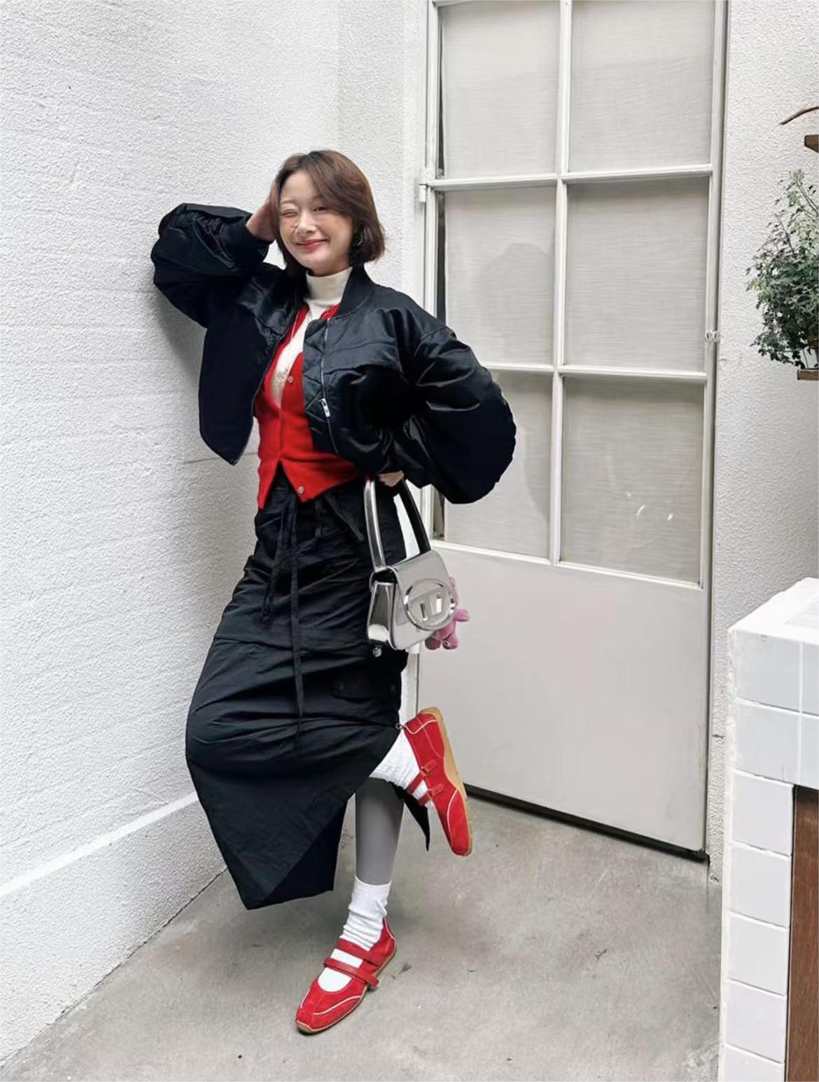 Cowhide Edition ~ 가죽 틈새 발레 스타일 훈련 신발 더블 스트립 스포츠 스타일 메리 제인 여성 신발 플랫 싱글 신발