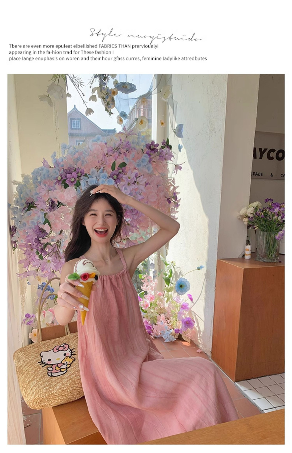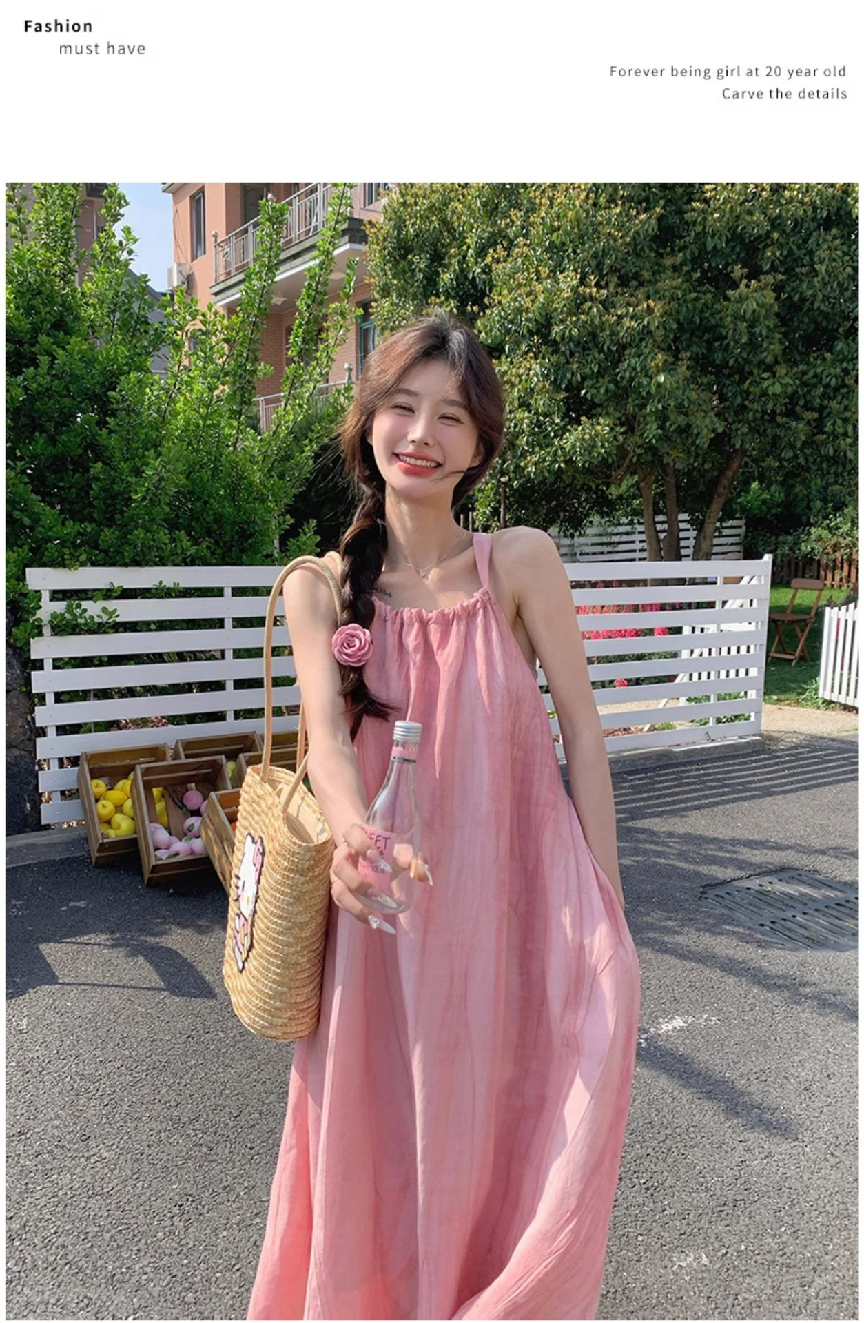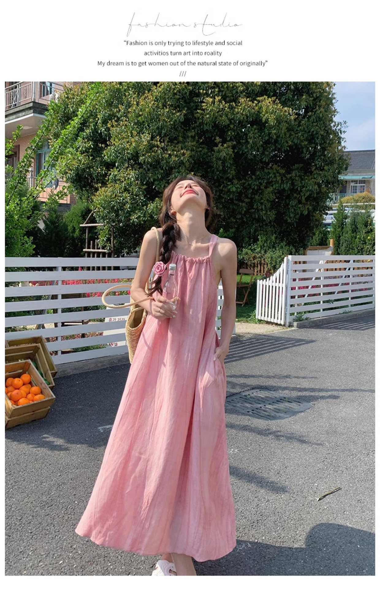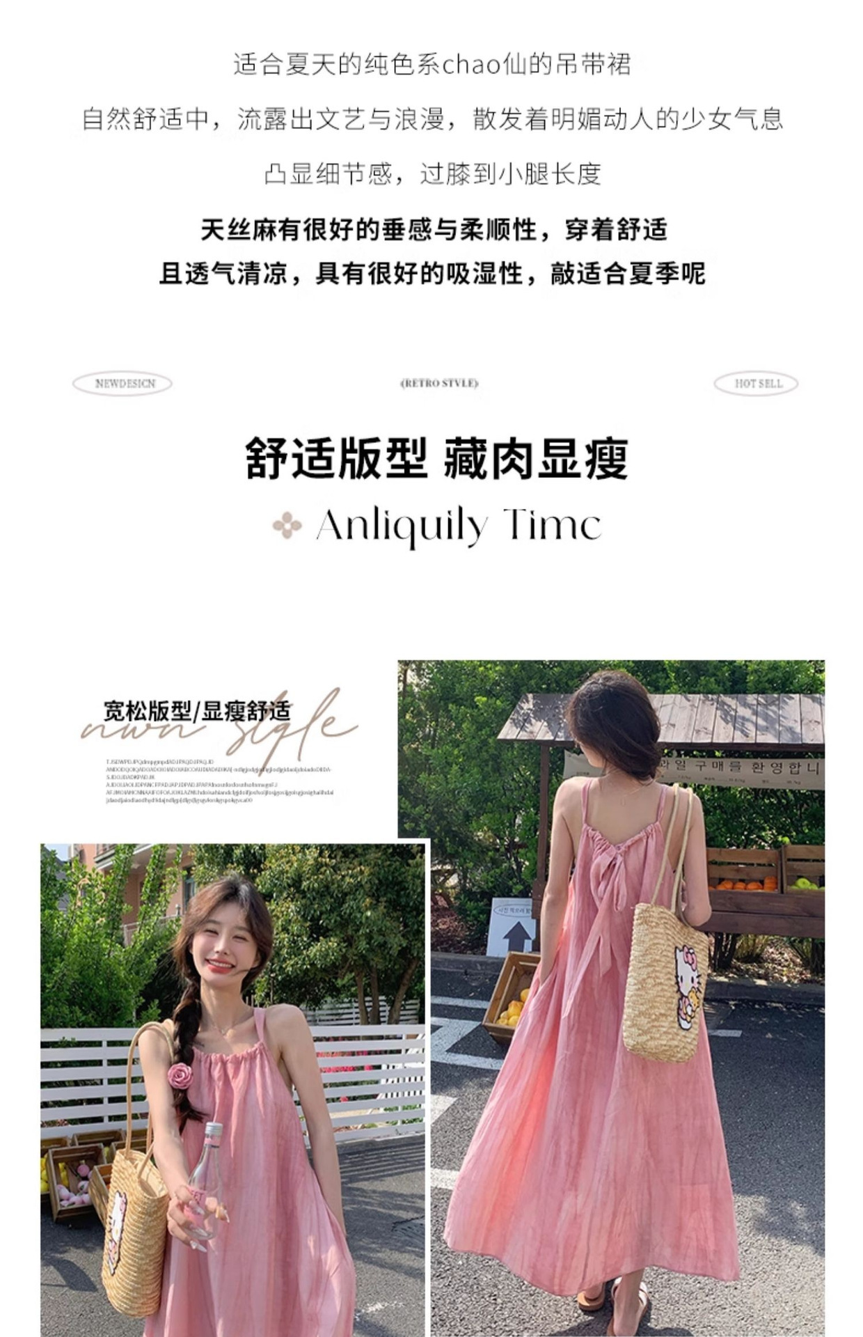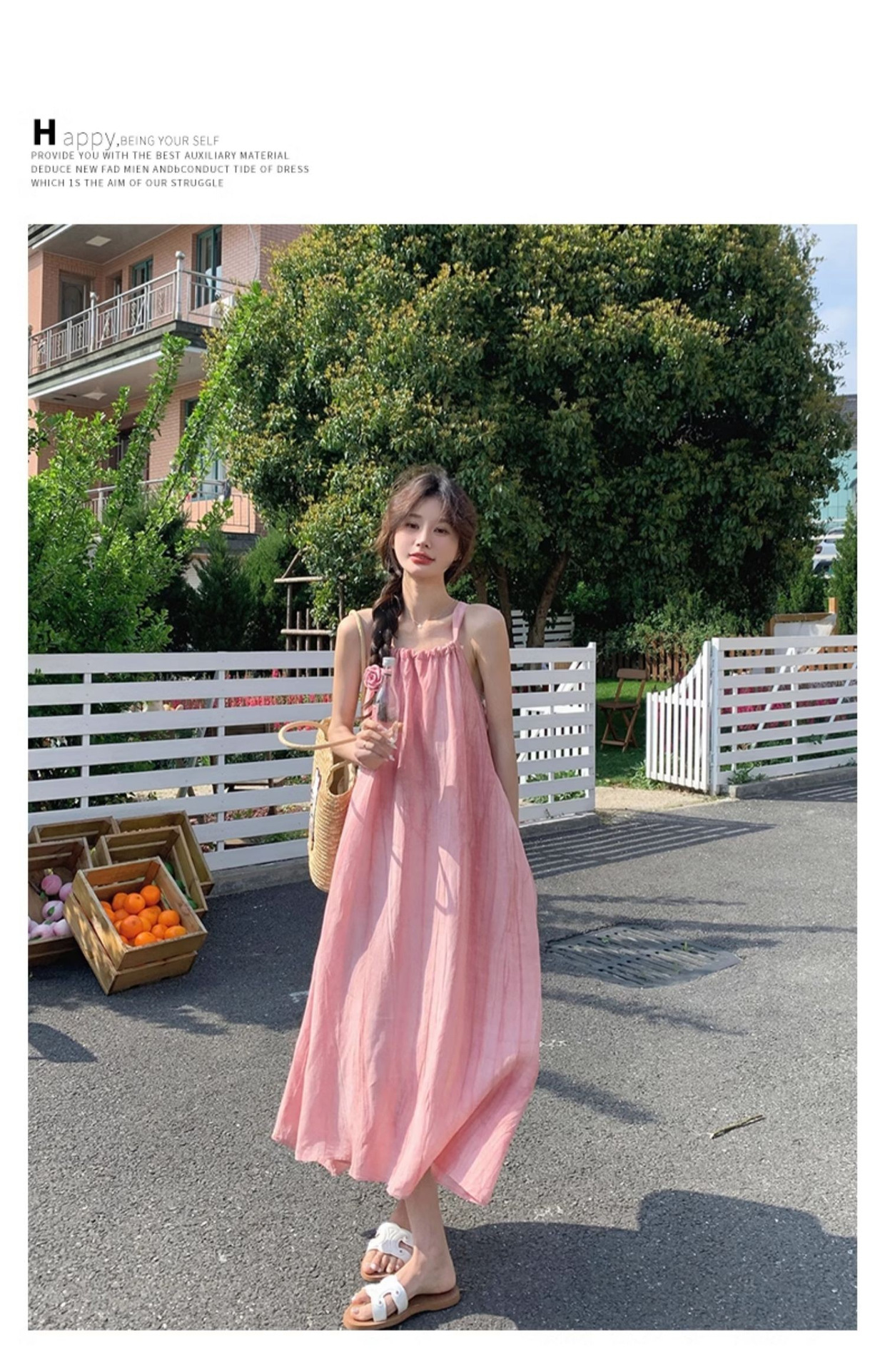 핑크 슬링 롱 원피스 여성 여름 새로운 해변 휴가 해변 원피스 디자인 틈새 원피스 여성 의류