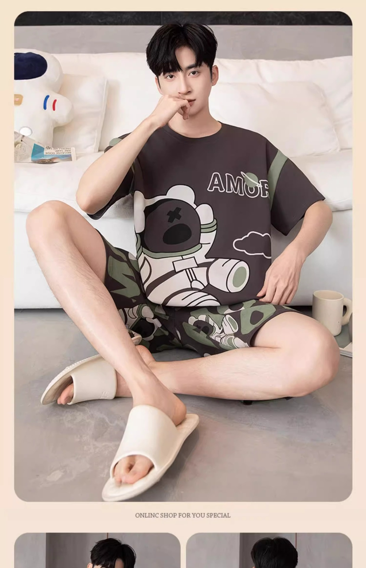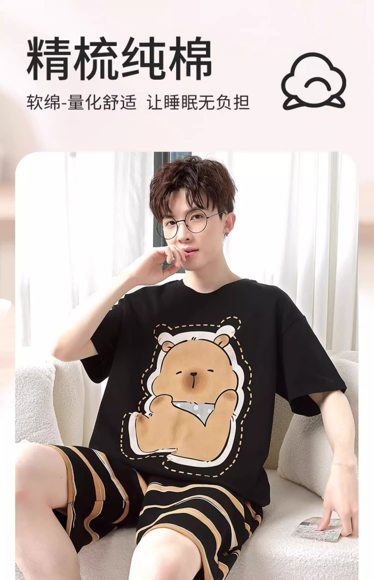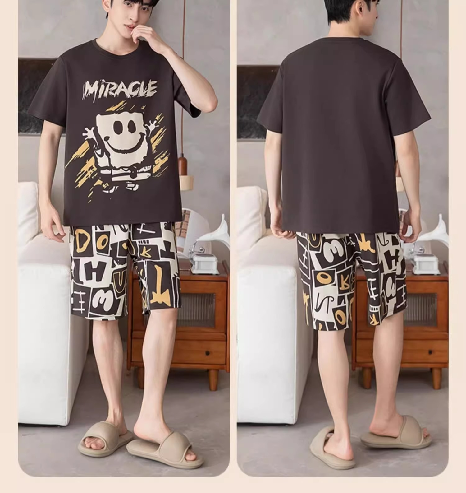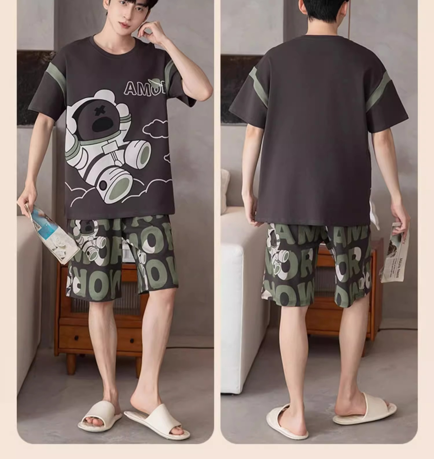 남자 잠옷 여름면 반팔 반바지 십대 만화 플러스 사이즈 260 진 얇은 집 옷