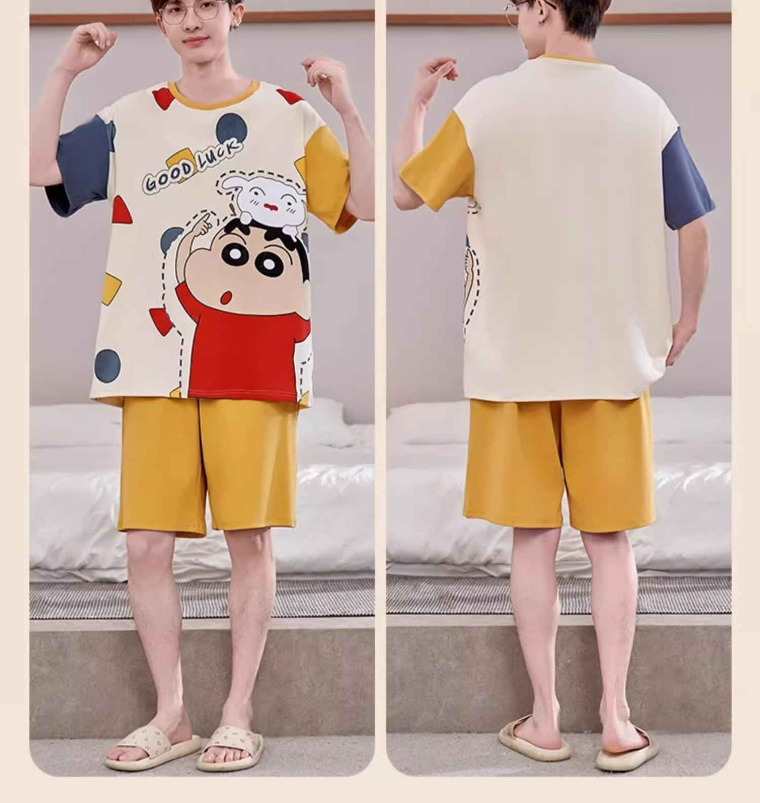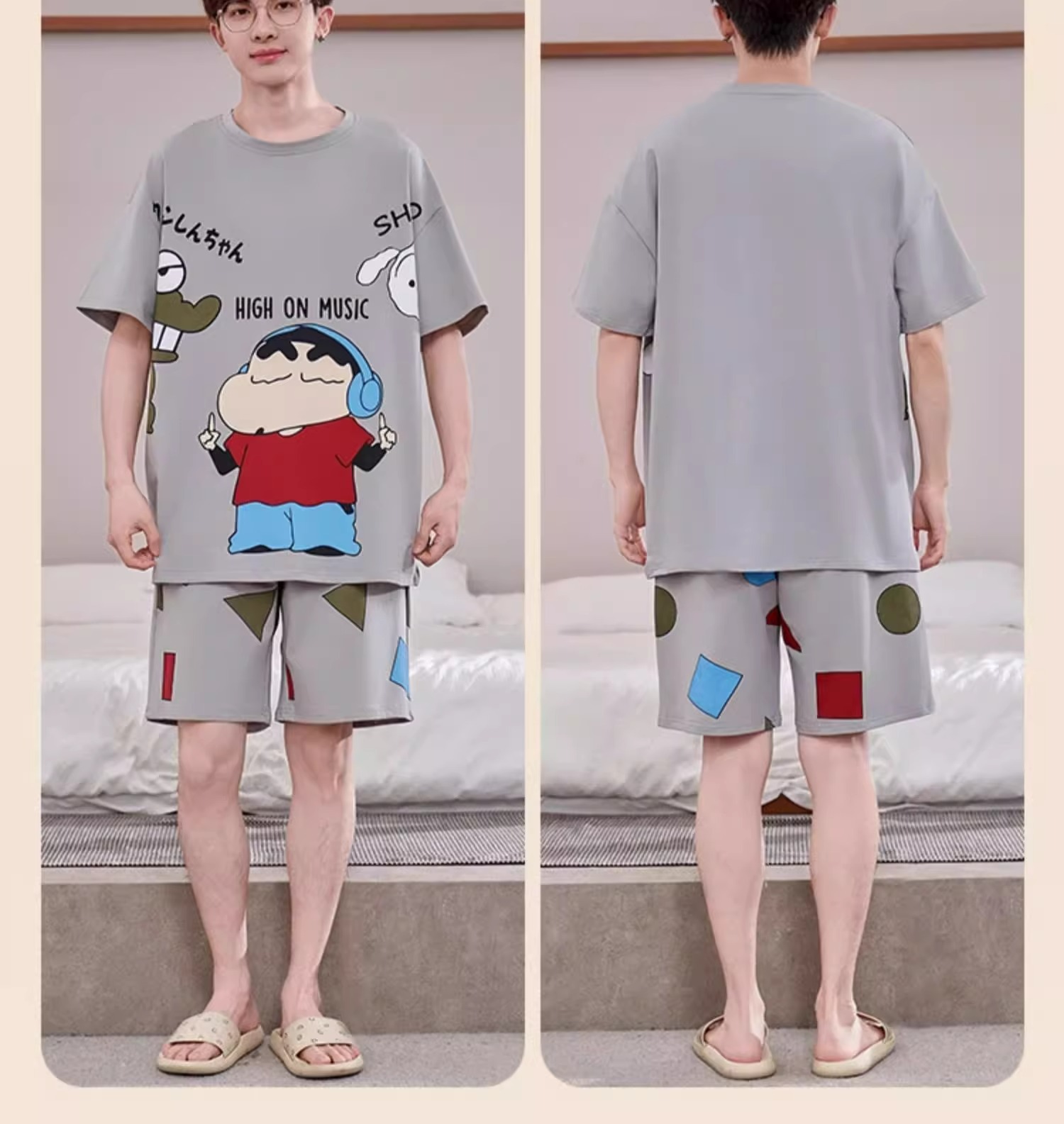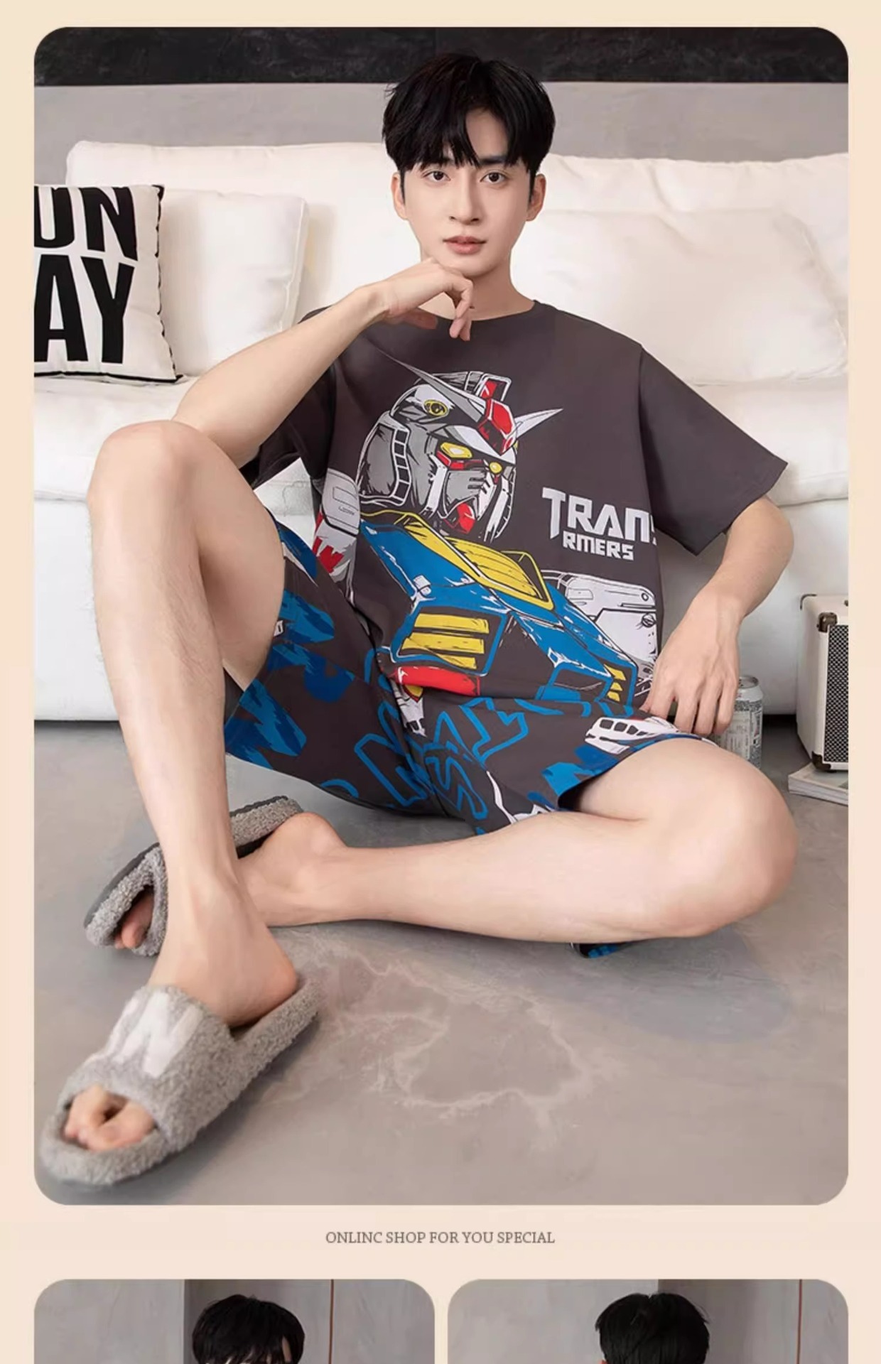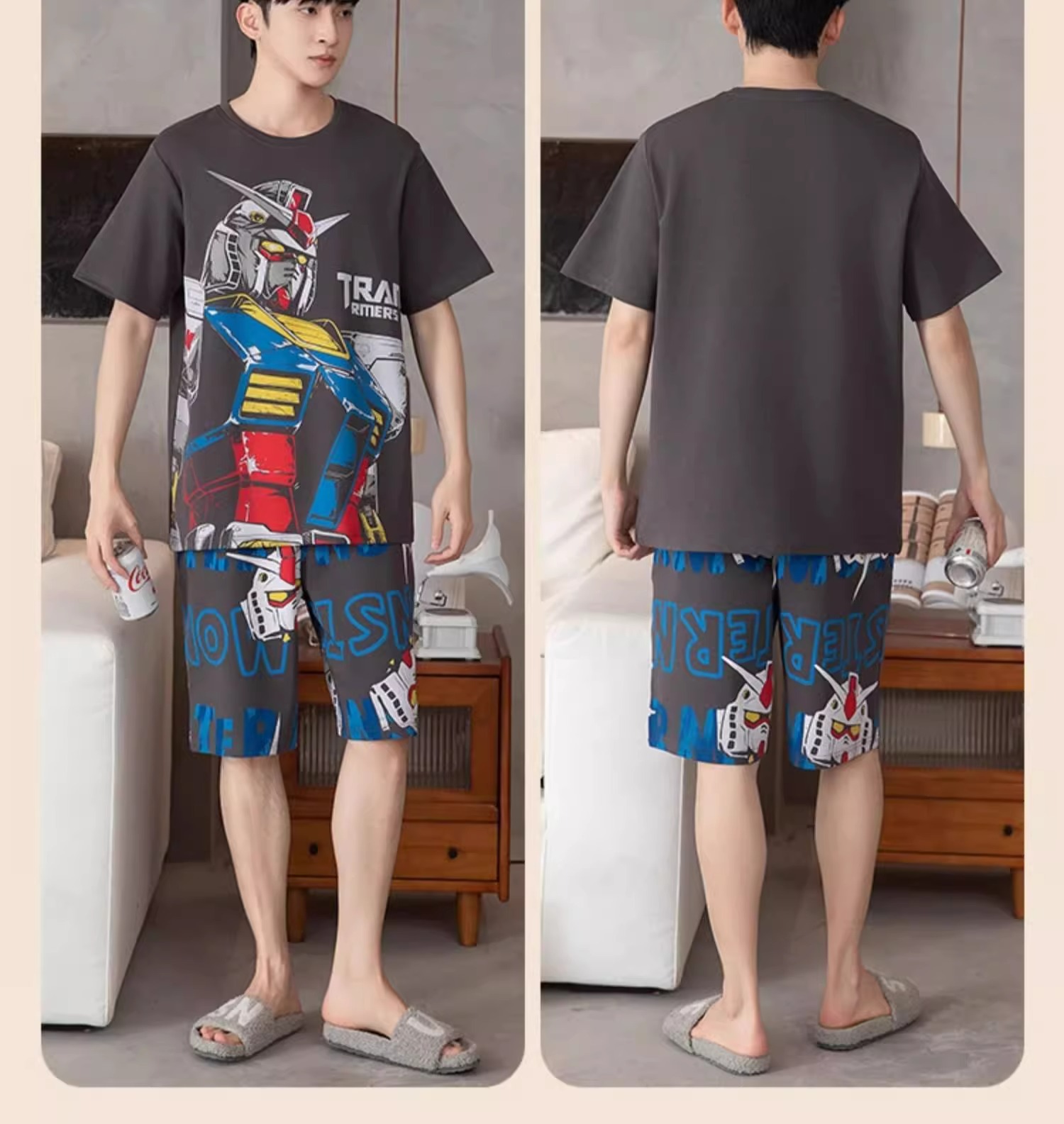 남자 잠옷 여름면 반팔 반바지 십대 만화 플러스 사이즈 260 진 얇은 집 옷