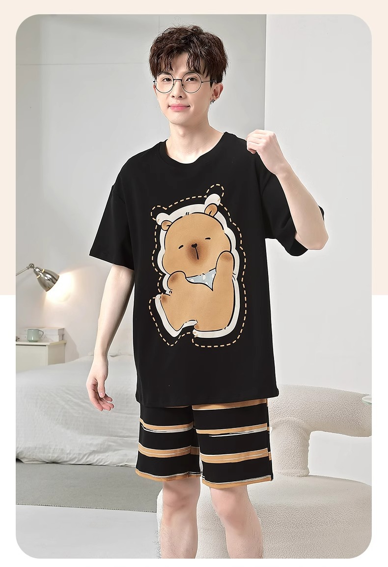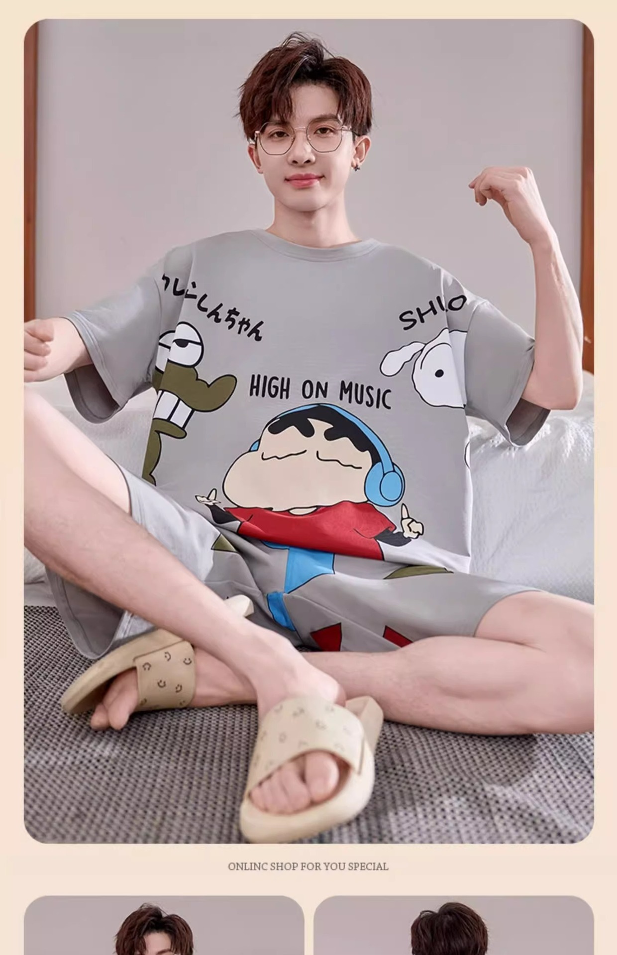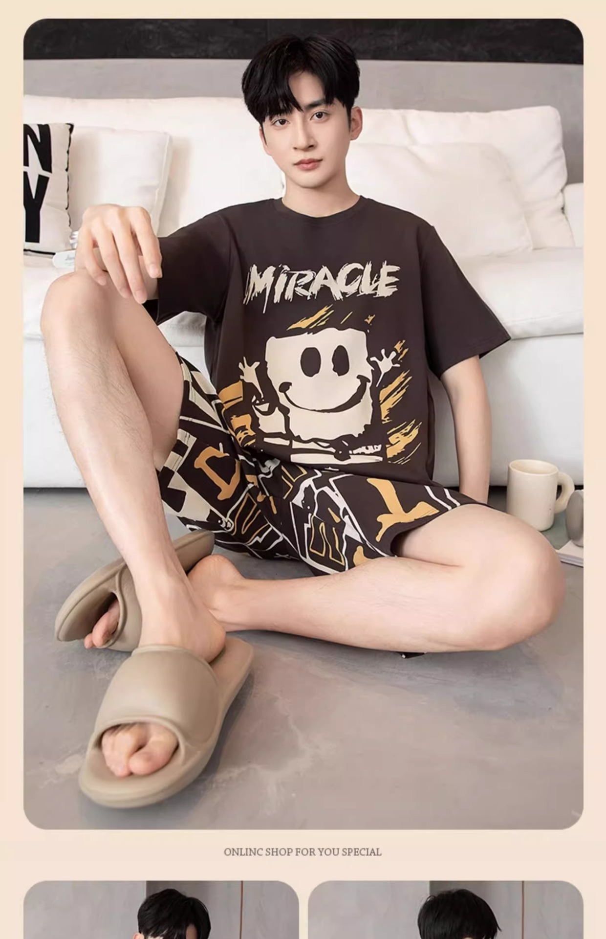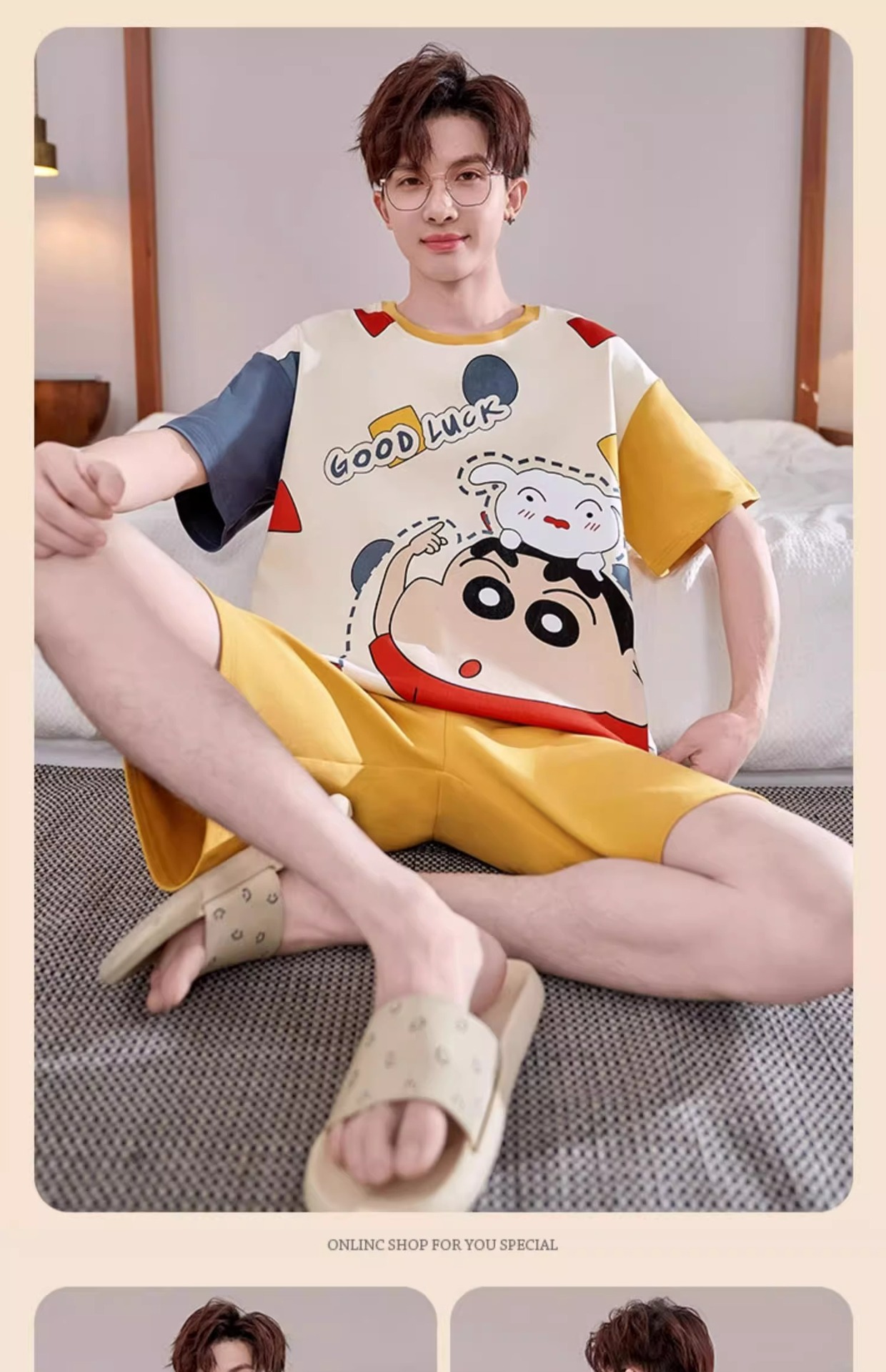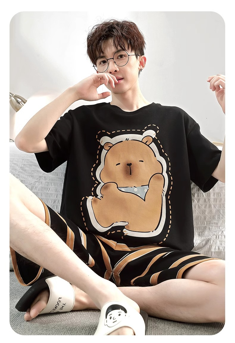 남자 잠옷 여름면 반팔 반바지 십대 만화 플러스 사이즈 260 진 얇은 집 옷