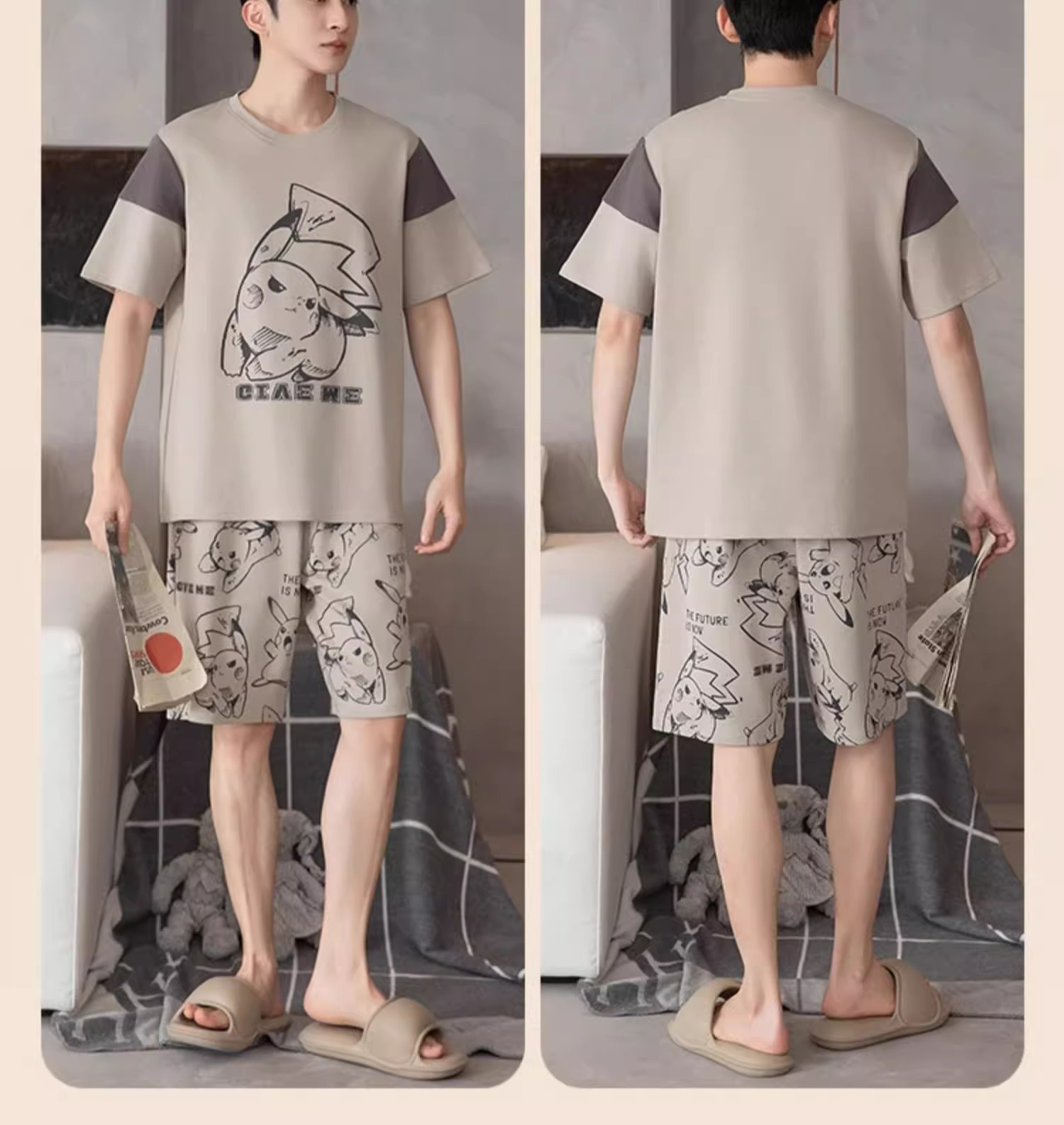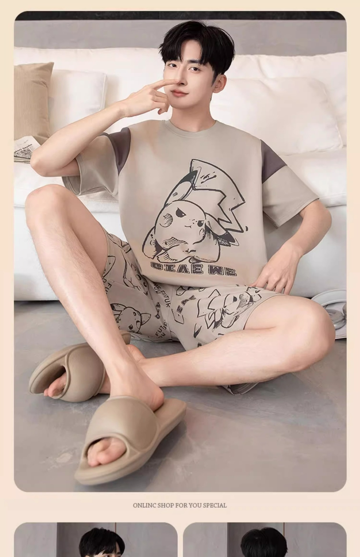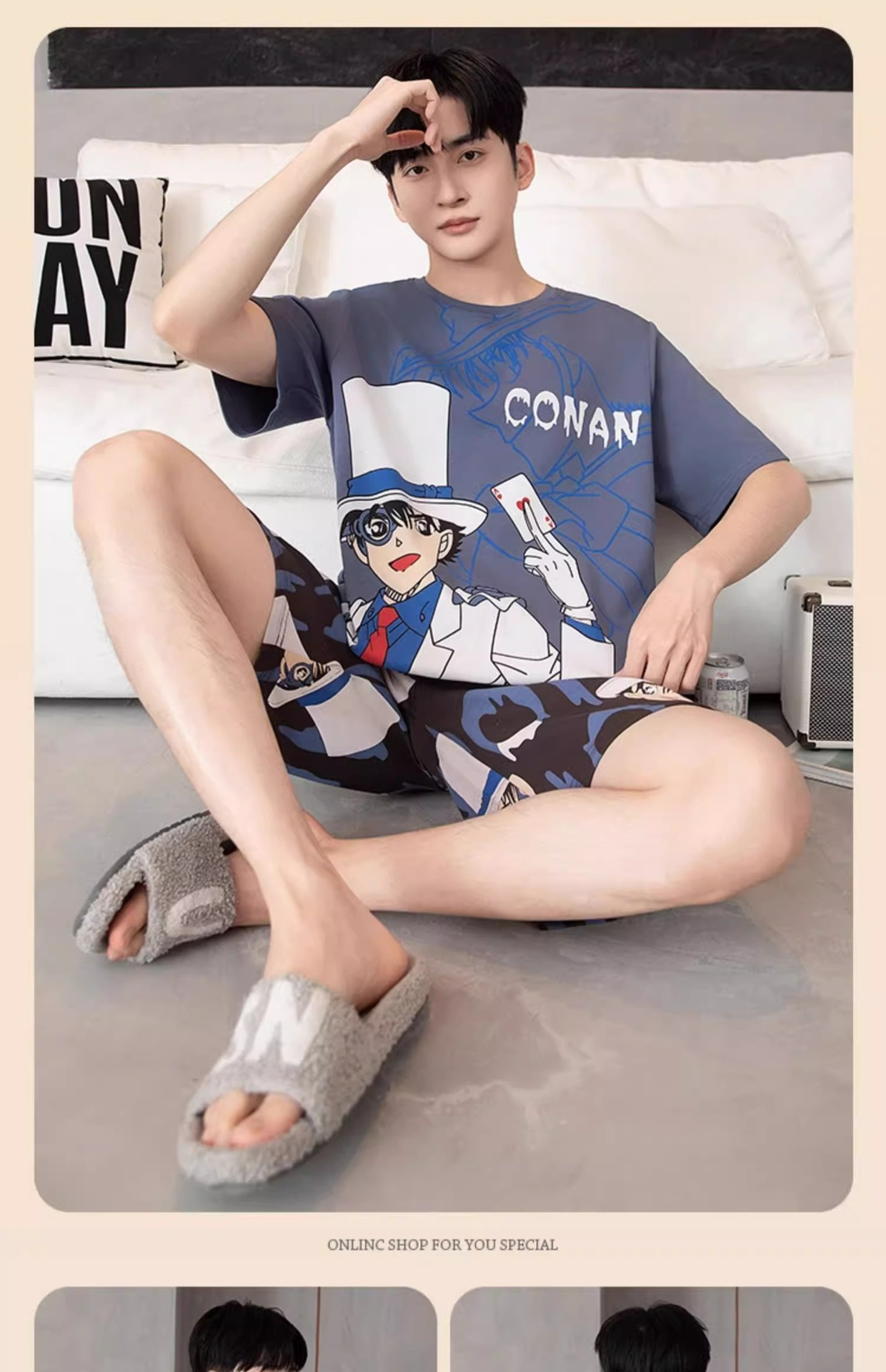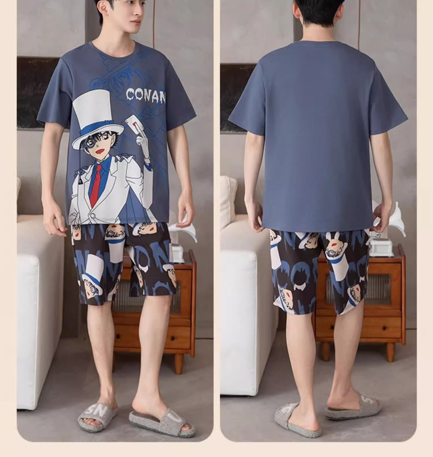 남자 잠옷 여름면 반팔 반바지 십대 만화 플러스 사이즈 260 진 얇은 집 옷