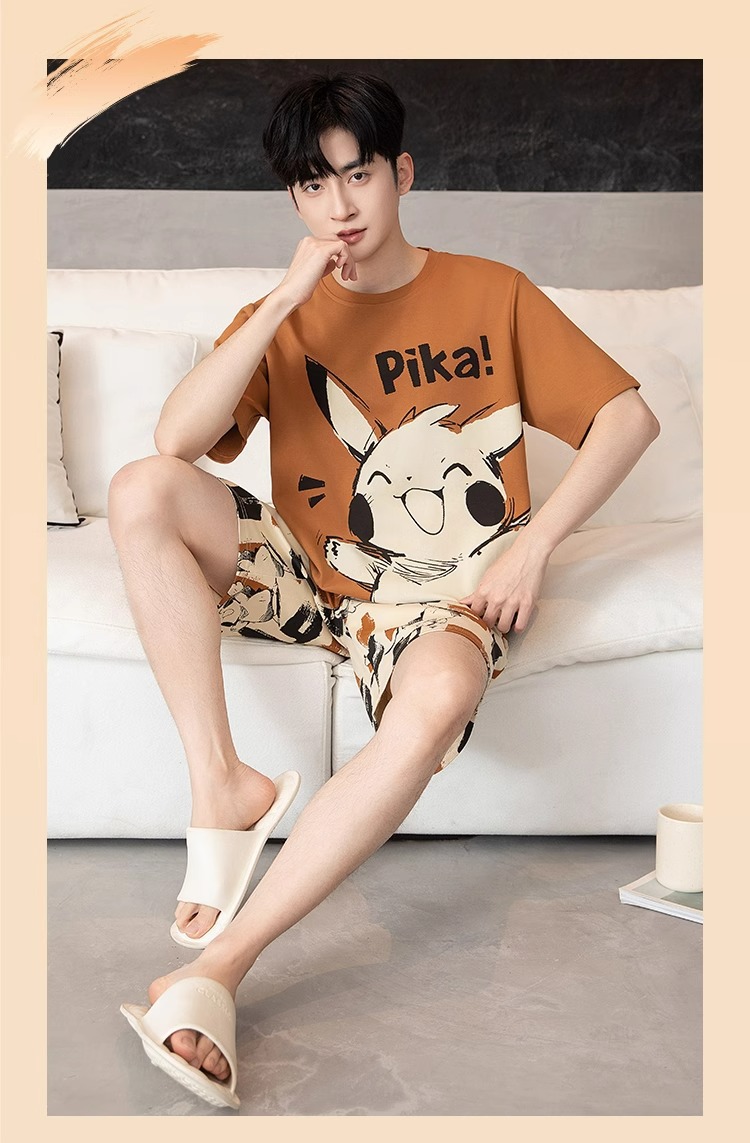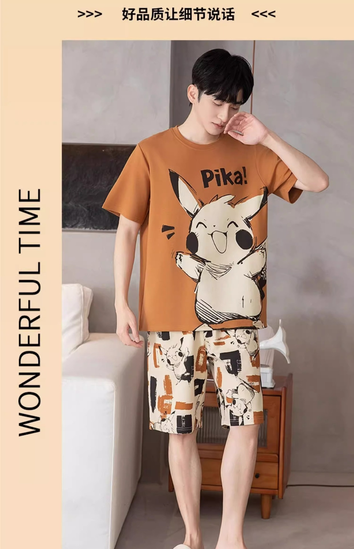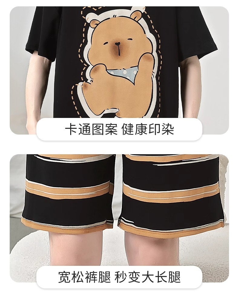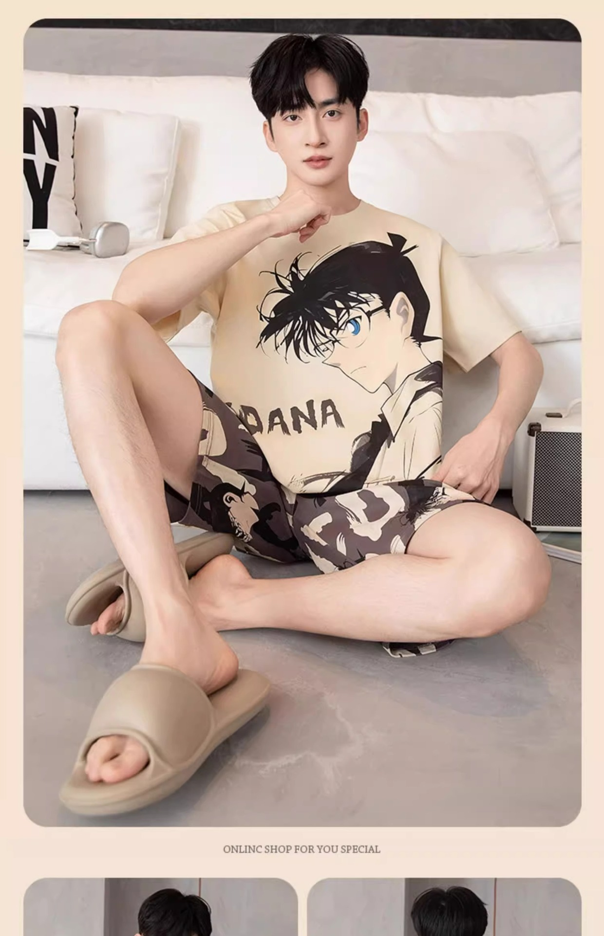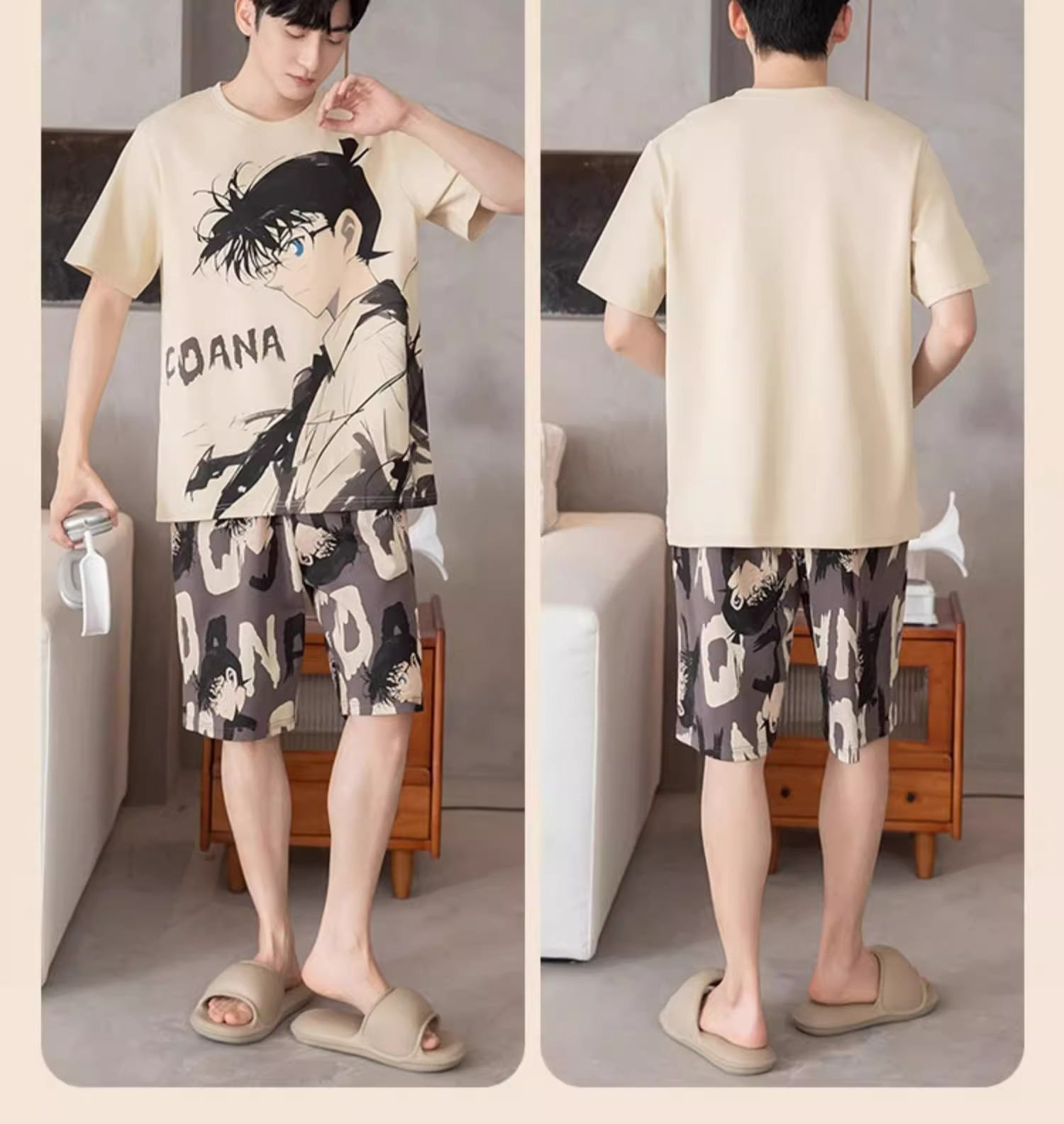 남자 잠옷 여름면 반팔 반바지 십대 만화 플러스 사이즈 260 진 얇은 집 옷