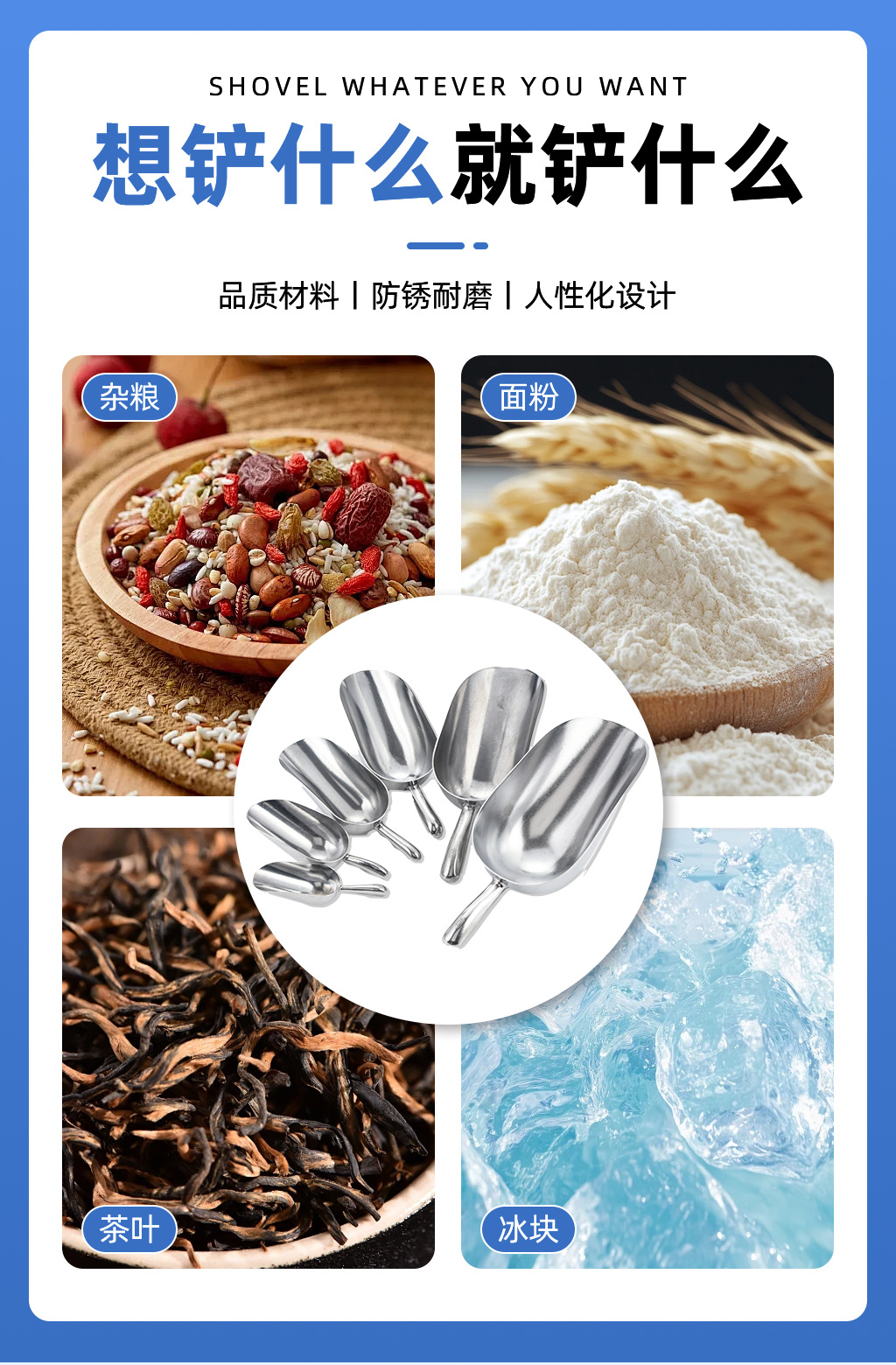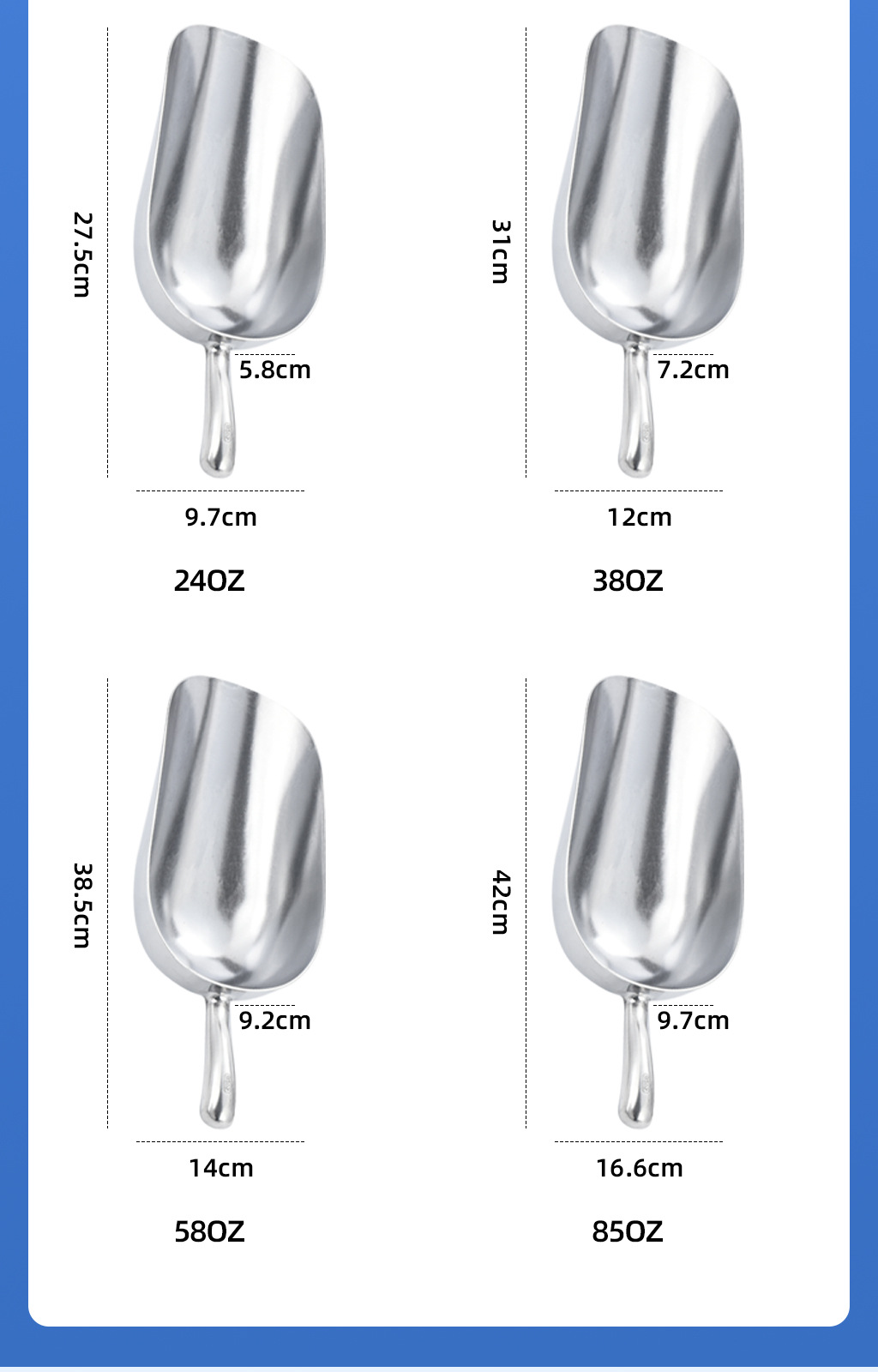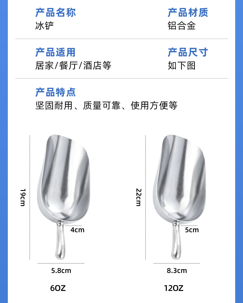 국경 간 알루미늄 합금 얼음삽, 제빙기용 삽, 곡물삽, 바텐더용 얼음삽, 슈퍼마켓 밀가루삽