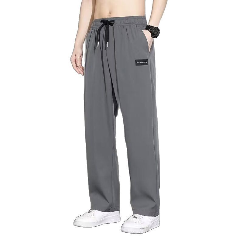 아이스 실크 스트레이트 바지 남자 2025 여름 얇은 빠른 건조 남성 바지 느슨한 드레이피 와이드 레그 스포츠 캐주얼 바지