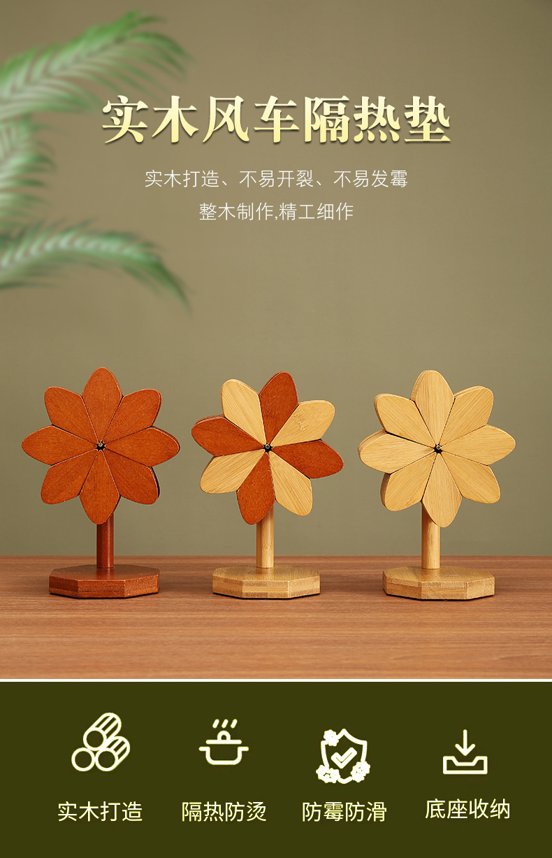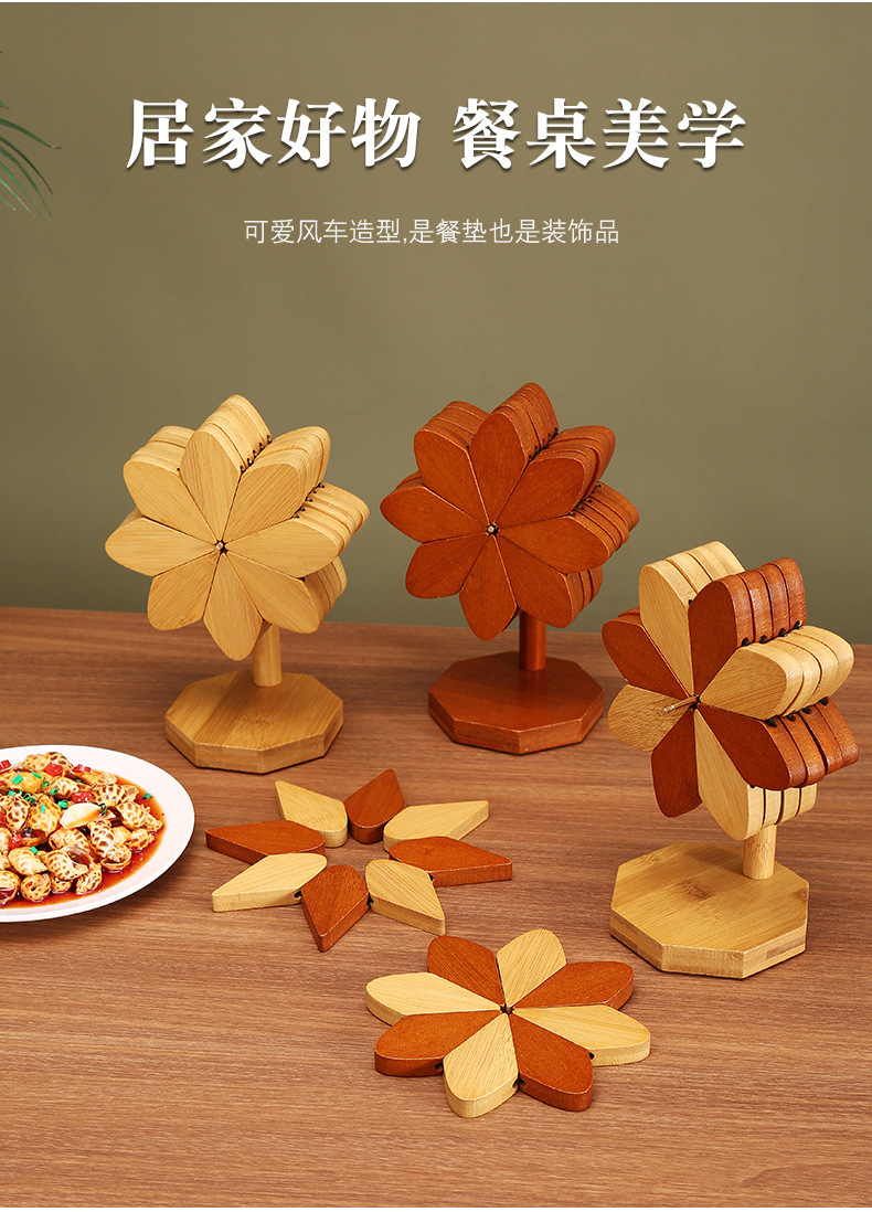 나무 풍차 단열재 매트 대나무 단단한 목재 도매 공장 직접 플레이스 매트 안티 다림질 매트 식탁과 같은 국경