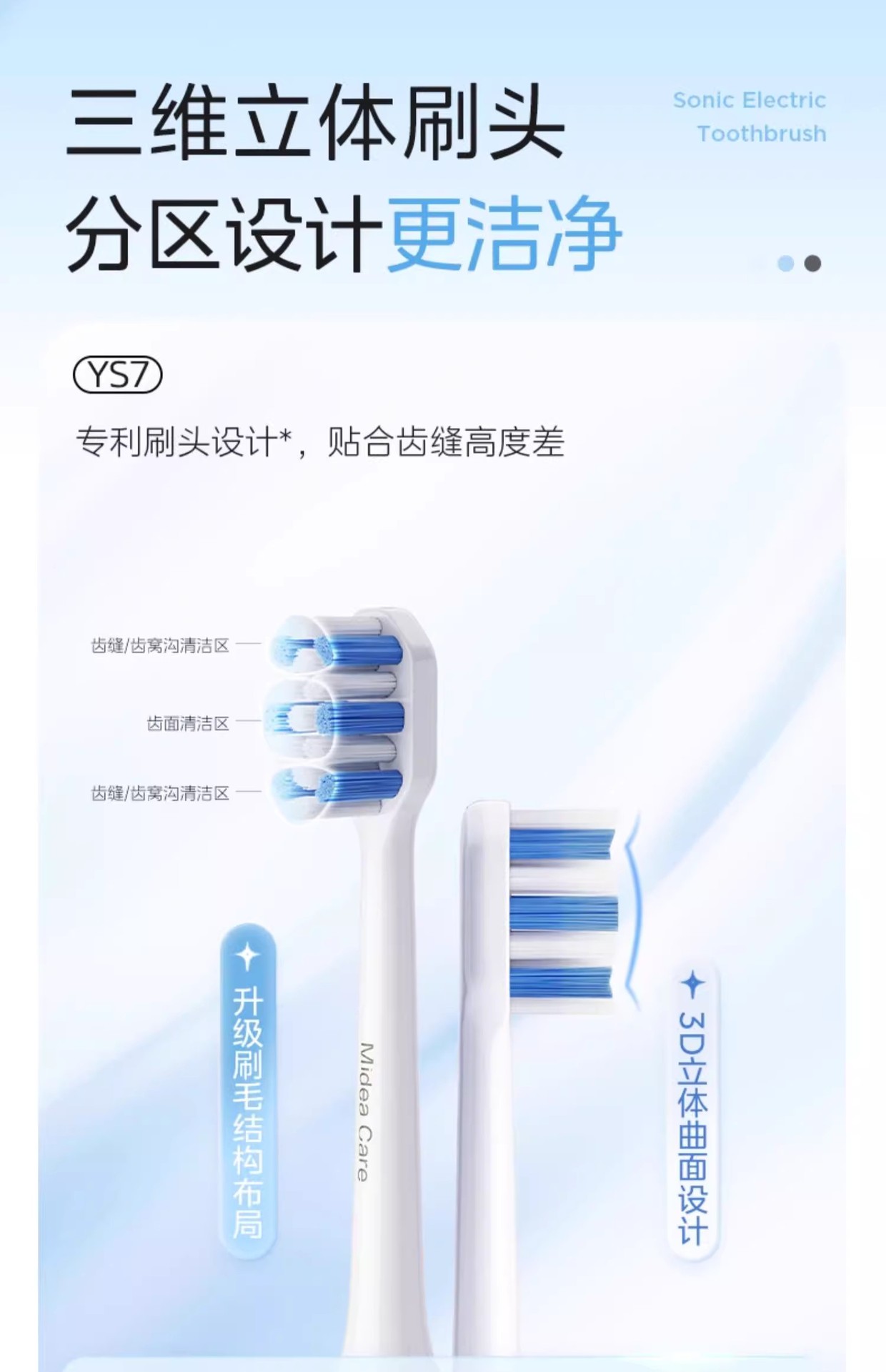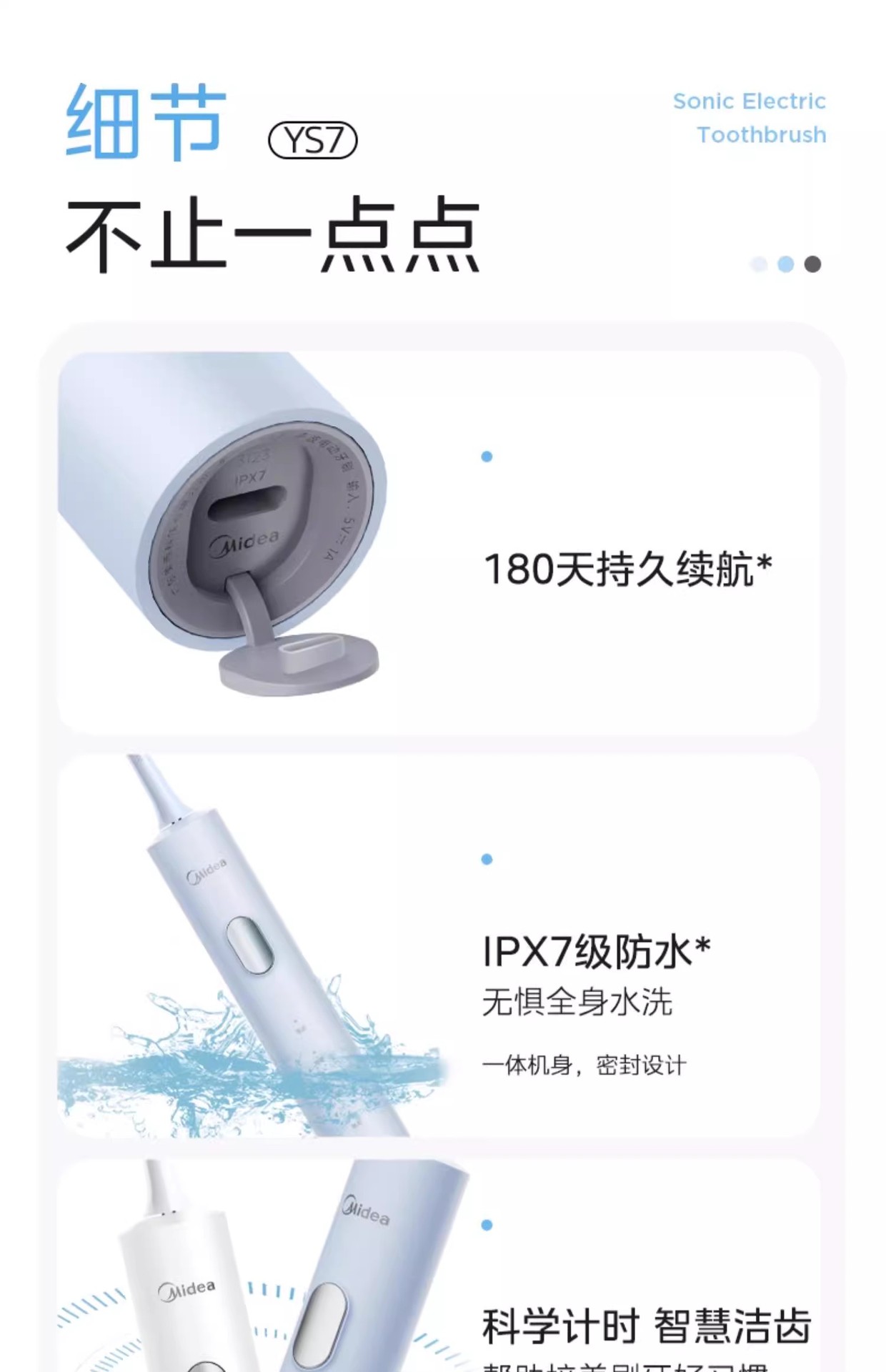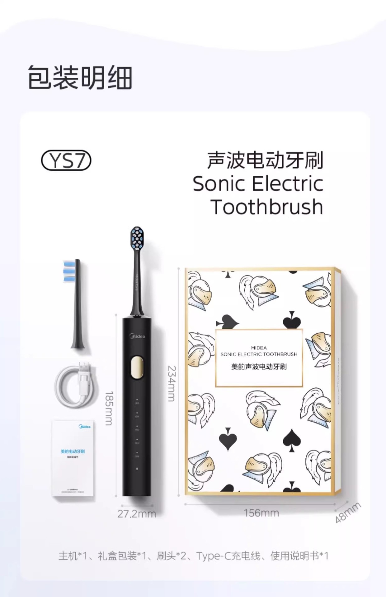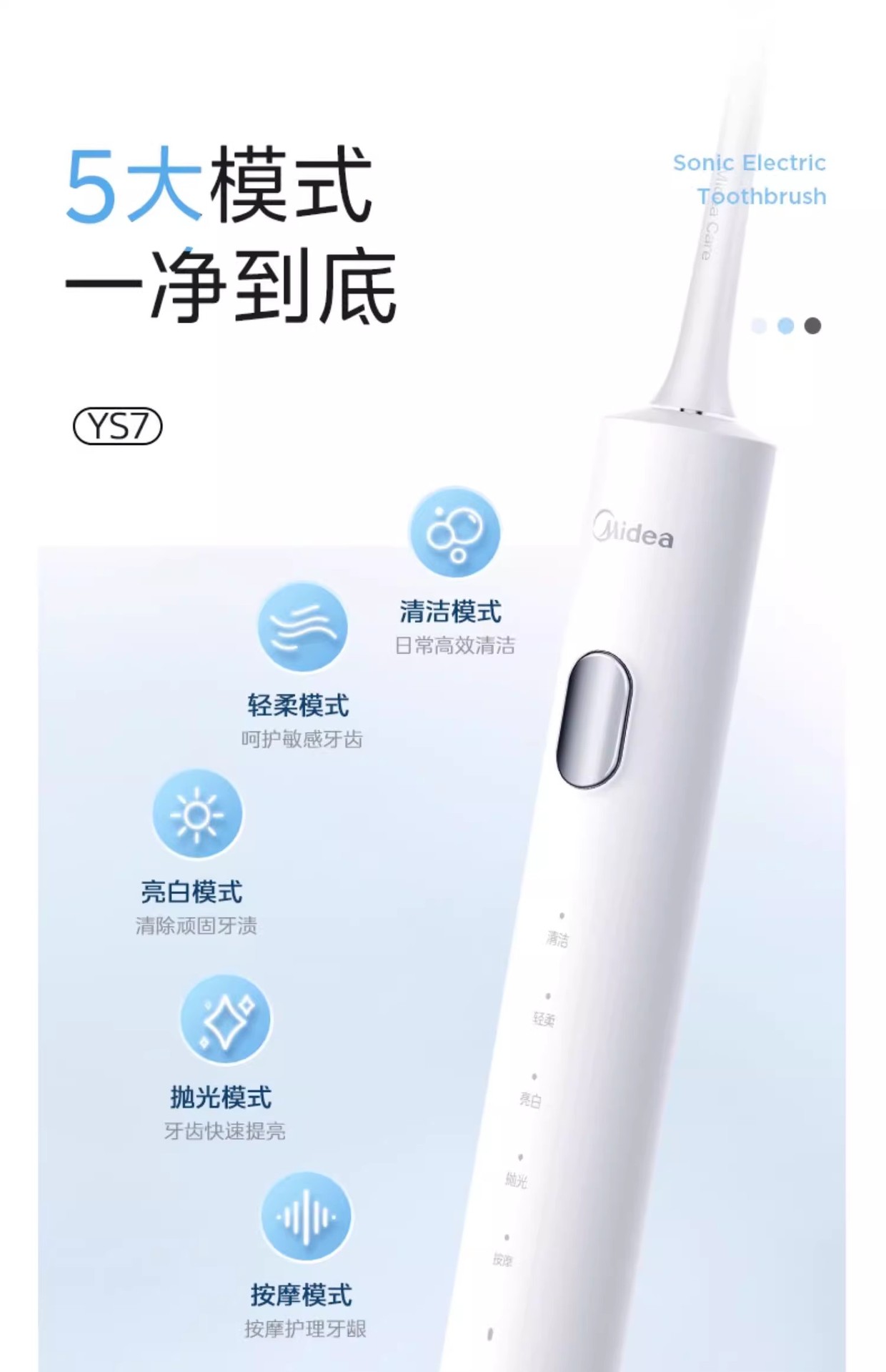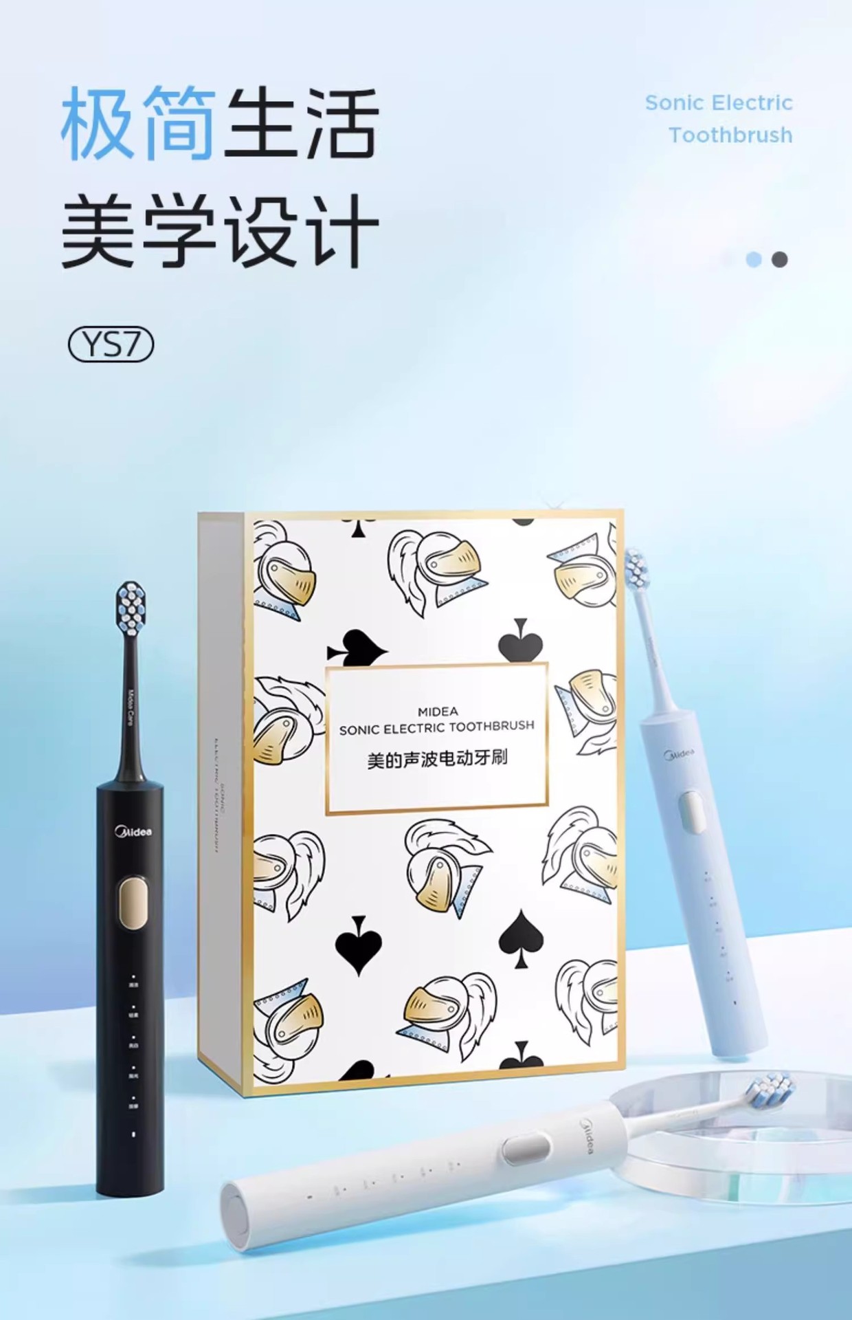 Midea 전기 칫솔 지능형 음향 충전식 성인 남성 및 여성 커플 방수 치약 보호 및 치아 청소 YS7