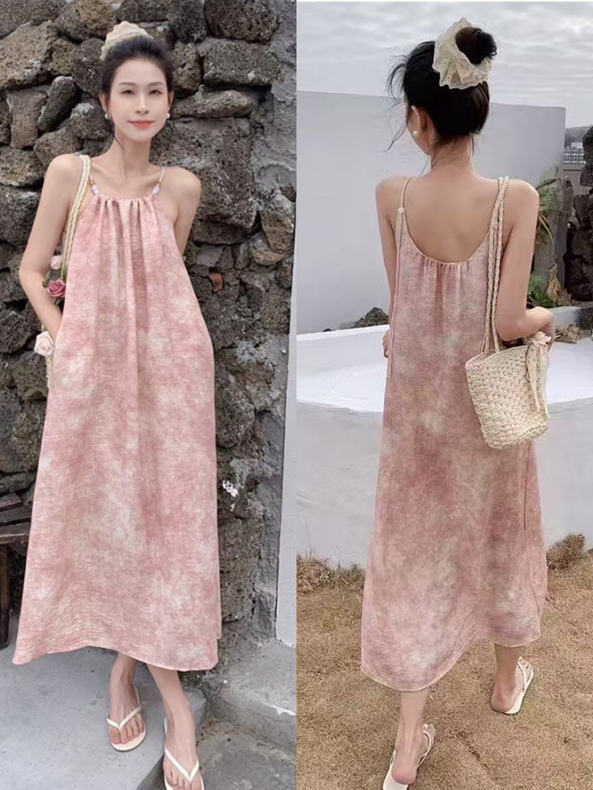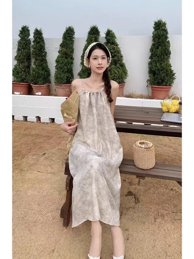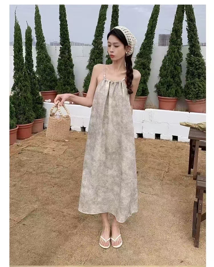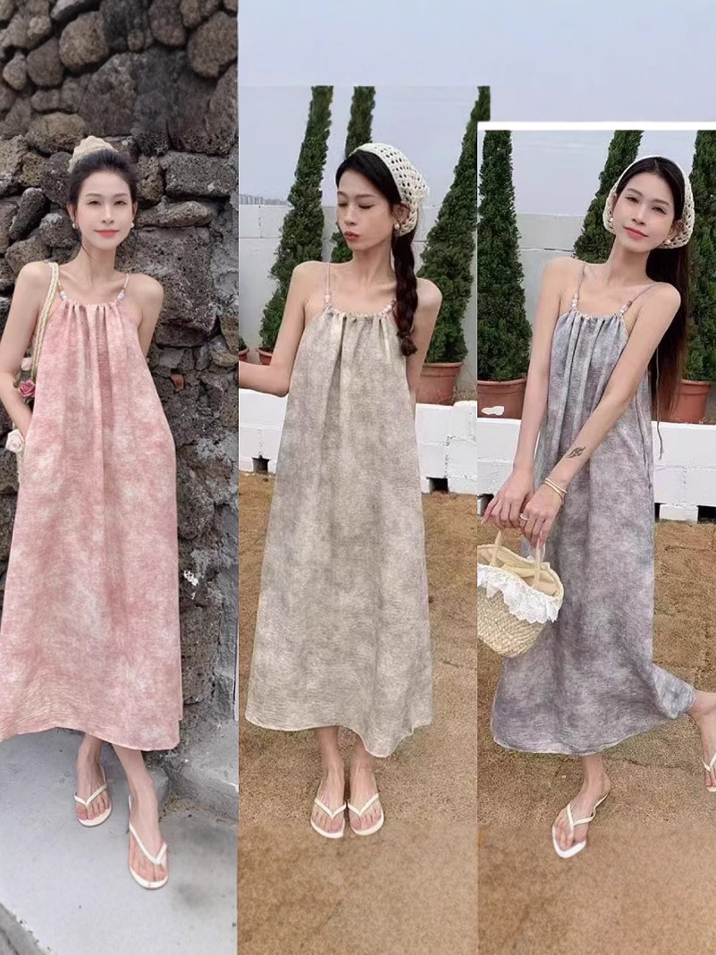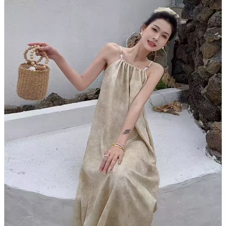 새로운 Sizzy 원피스 여성의 여름 슬림 룩 우아한 캐주얼 원피스 민소매 해변 긴 원피스 간단한 휴가 슬립 원피스