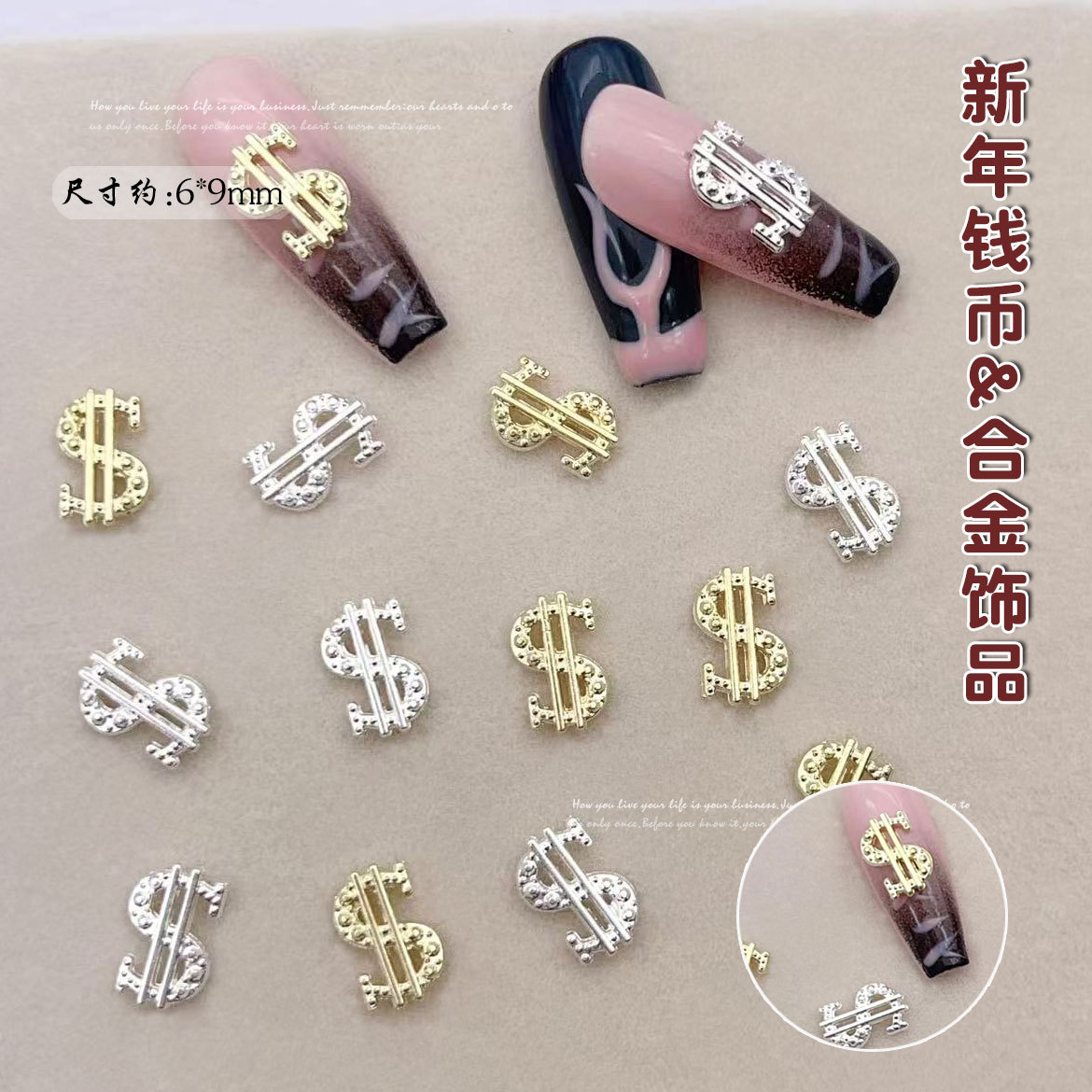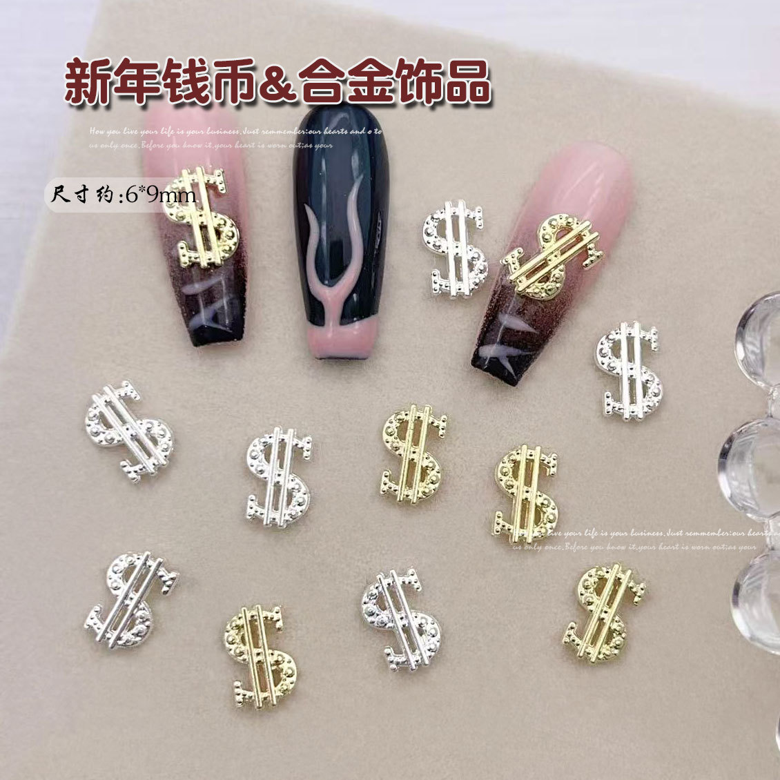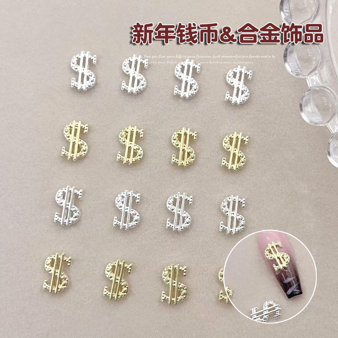 포춘 네일 액세서리 라이트 럭셔리 슈퍼 플래시 합금 달러 다이아몬드 동전 기호 착용 갑옷 액세서리 도매